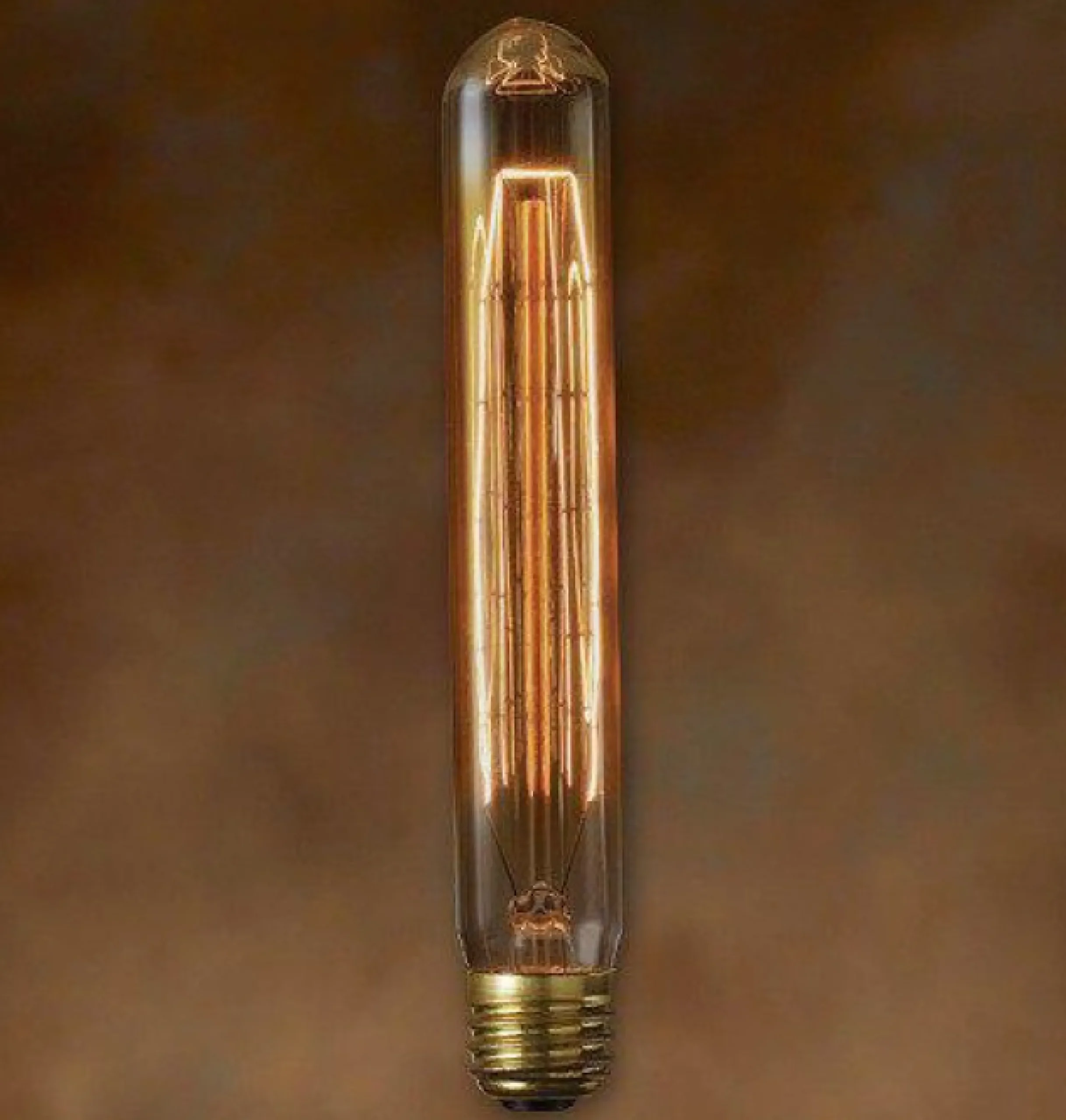 4 Stück Vintage Glühbirne mit traditionellem Kohlefaden. Längliche gerade Form, mehrfach im „Eichhörnchenkäfig“ Style gewickelt. Edison läßt grüssen.