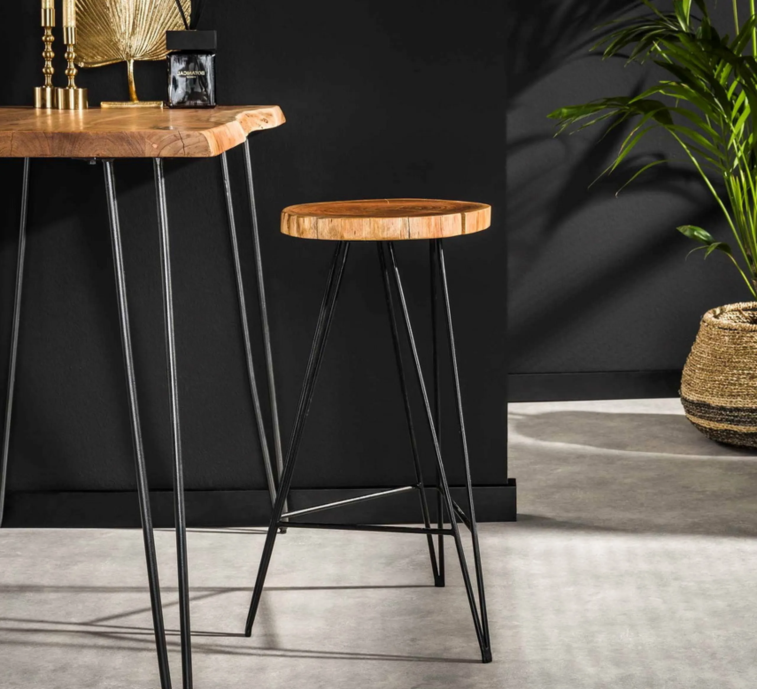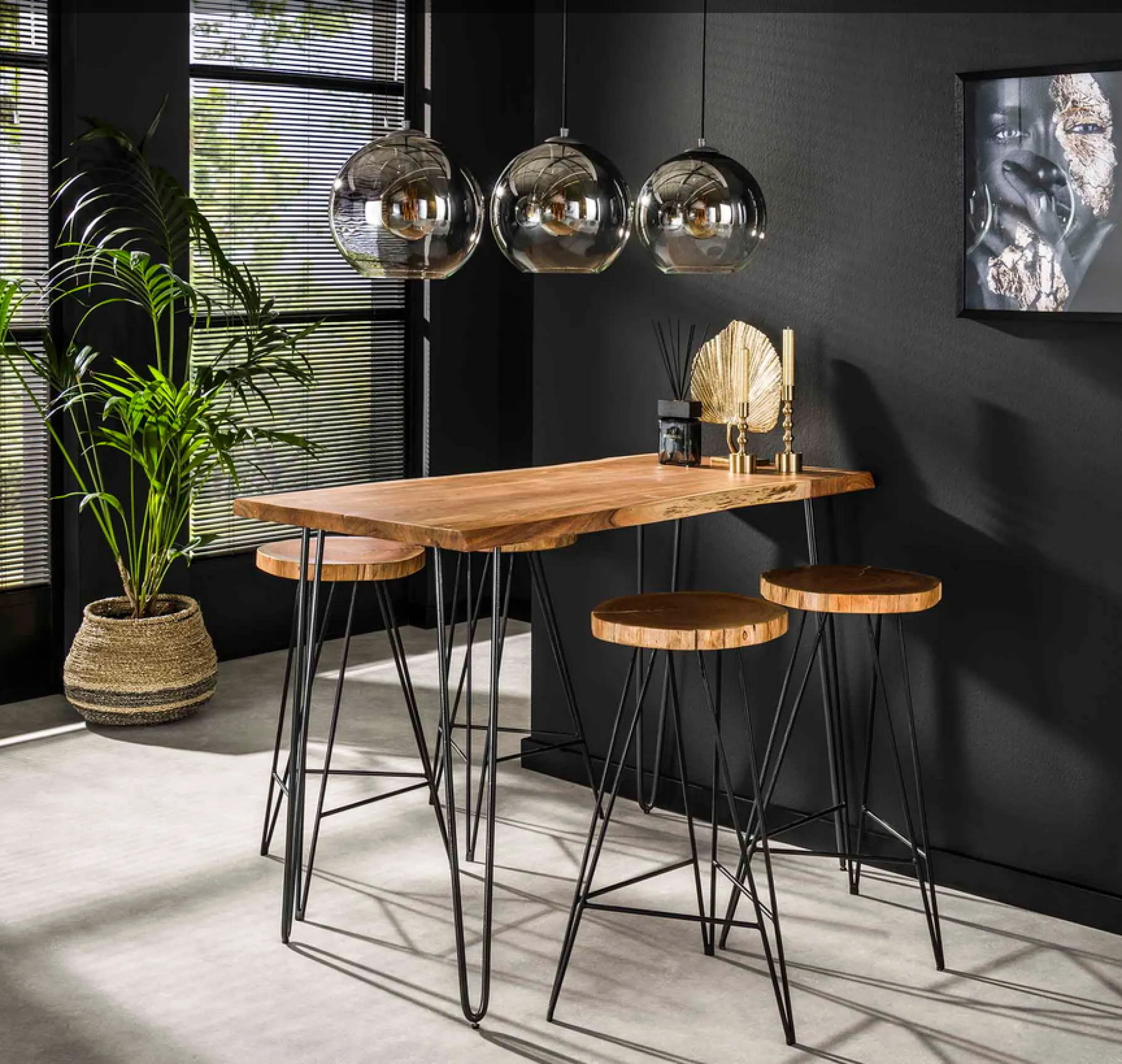 Bartischset Edge Industrial 130 + 4 Barhocker Baumscheibe-Vintagehaus New