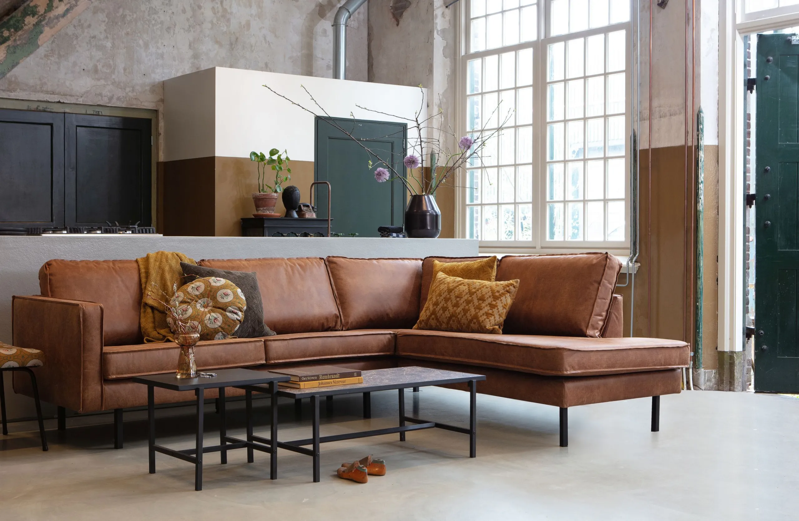 Das Sofa Rodeo von BePureHome ist ein modernes, robustes und zeitgemäßes Möbelstück für Ihr Wohnzimmer. Es ist aus 70% Leder und 30% Polyester gefertigt und bietet Ihnen einen hohen Sitzkomfort und eine lange Lebensdauer. Das Sofa hat eine klassische Eckform mit einer Breite von 266 cm und einer Tiefe der Liegeseite von 213 cm. Die Farbe Cognac verleiht dem Sofa einen warmen und eleganten Charakter. Die Rodeo Serie ist geräumig und bietet einen herrlich festen Sitzkomfort. Das hohe Fußgestell lässt die Möbel schlank und luftig wirken. Die Sofas und Sessel sind mit recyceltem Leder gepolstert. Recycle-Leder verleiht einen einzigartigen Look und ist durch die Verwendung von Lederresten eine nachhaltige Wahl! Das Material besteht aus zwei Teilen: Die untere Schicht besteht aus recyceltem Echtleder, das für den natürlichen Look sorgt. Die obere Schicht besteht aus einer Polyesterschicht, die das Leder schützt und Unebenheiten verhindert. Das macht das Ganze zu einem robusten Kombinationsgewebe mit feiner, weichen Haptik. Je nach Geschmack führen wir die Rodeo-Reihe als Zwei- und Dreisitzer oder als Ecksofa.