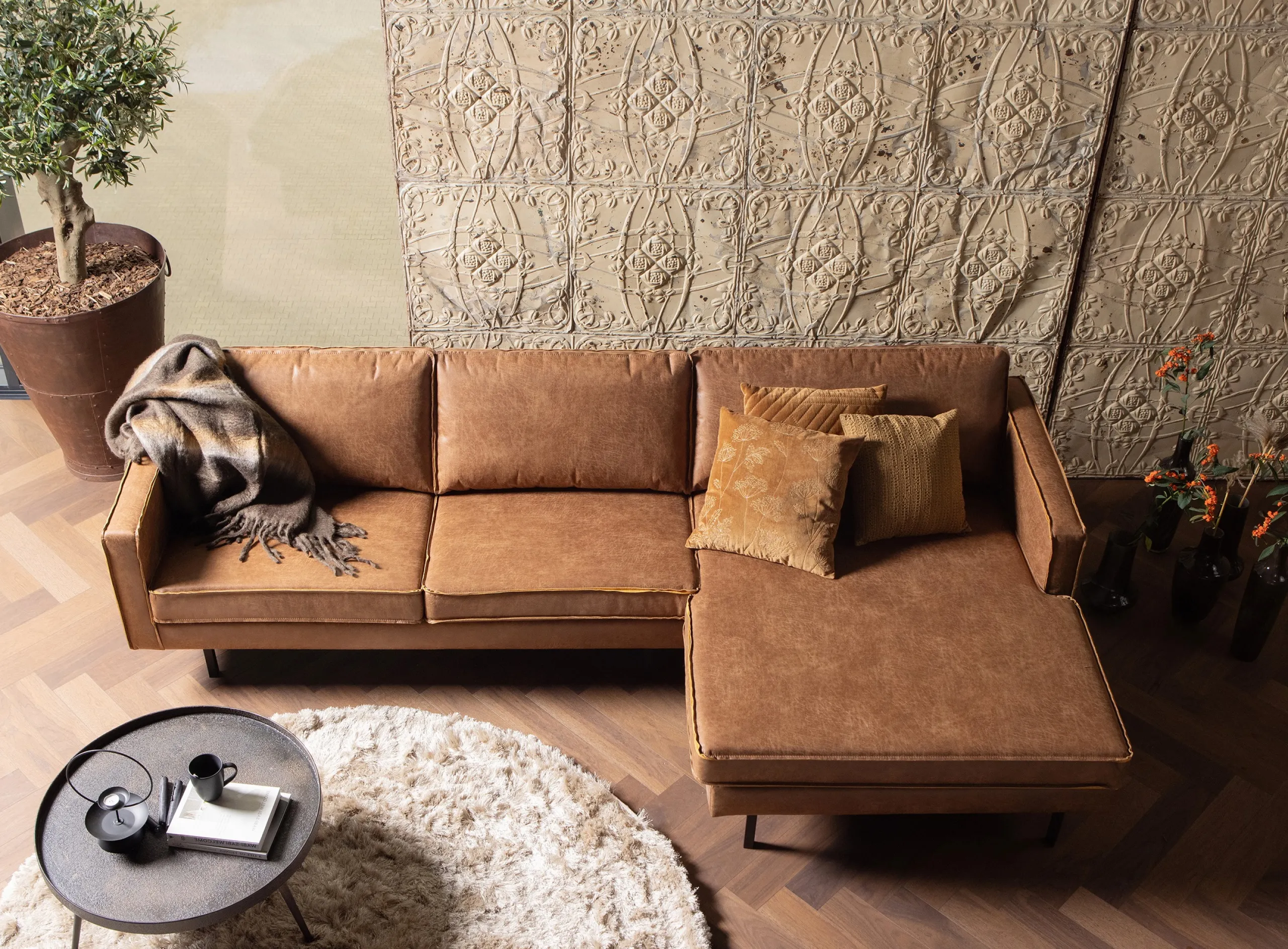 Ecksofa Leder Rodeo 3-Sitzer Cognac Rechts 300/160-BePureHome Best