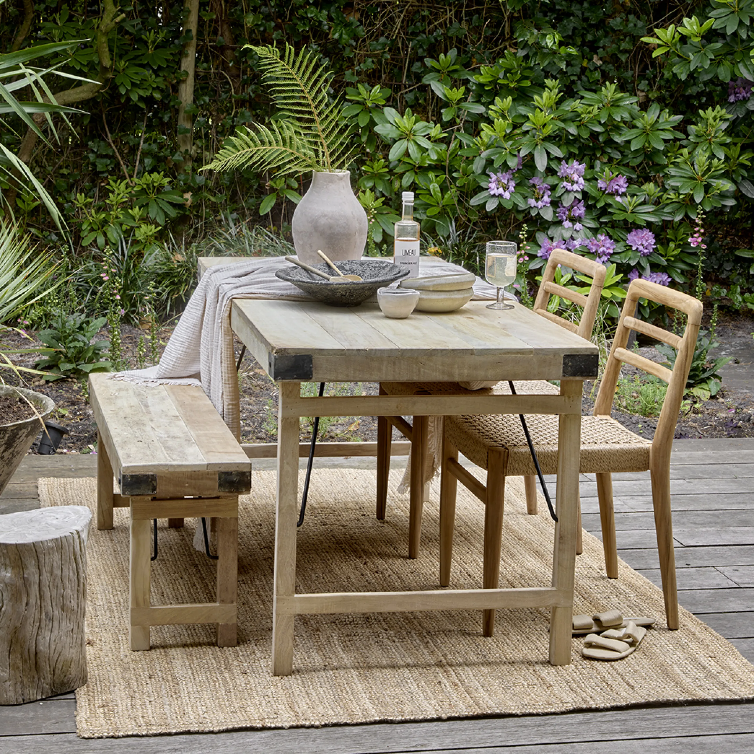 Unsere Kalktünche-Möbel können je nach gewünschter Optik und Schutzart sowohl im Innen- als auch im Außenbereich verwendet werden. Bei der Verwendung im Freien in warmen Klimazonen entwickelt das Holz mit der Zeit auf natürliche Weise eine verwitterte graue Oberfläche. In feuchteren Umgebungen empfehlen wir die Anwendung einer Versiegelung für zusätzliche Wasserbeständigkeit und Haltbarkeit. Das kann ein farbloses Öl sein oder 2x mit Elephantenhaut streichen.