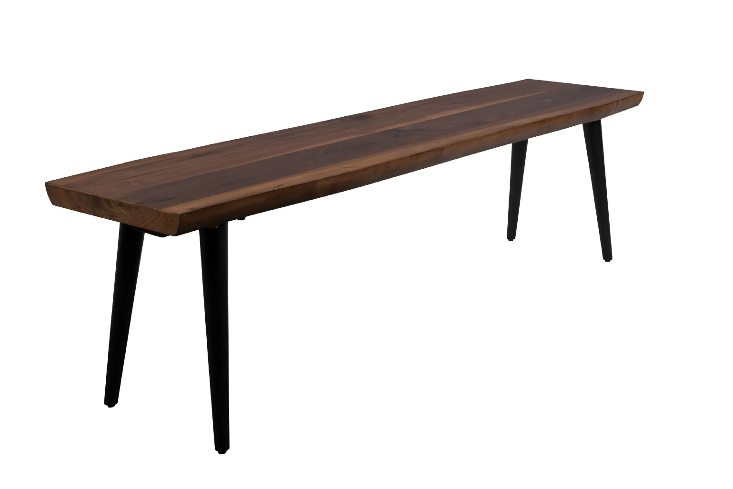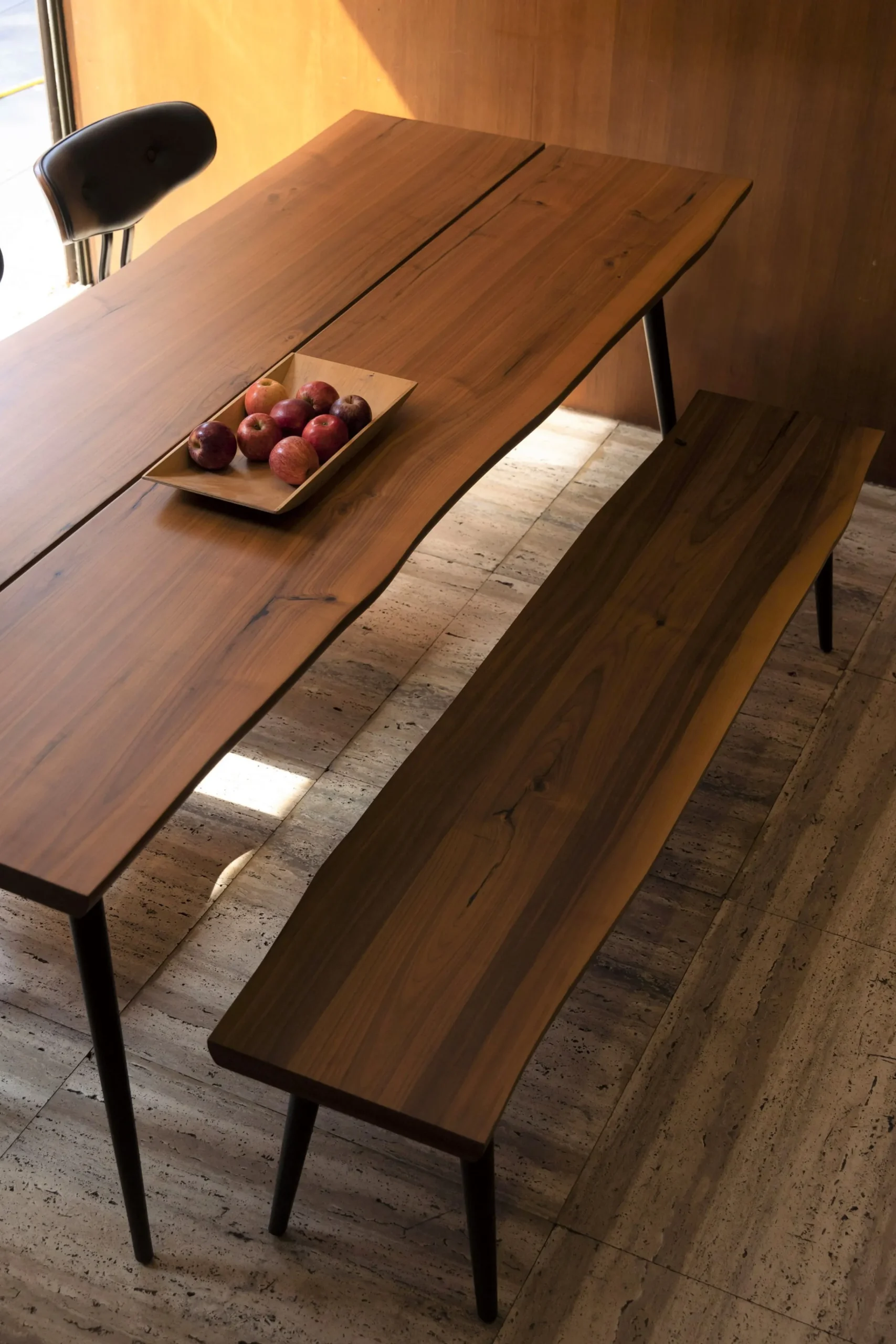 Die Alagon Serie gibt es von groß bis eher klein, egal ob Tísch oder Bank. So passt sich Alagon Ihren Bedürfnissen an. Die Stücke haben den Charme und die unregelmäßigen Kanten eines Walnußbaumstammes. Das Holz ist nicht nur ein Highlight für das Auge, sondern beweist auch, wieviel Liebe und Aufwand wir ins Detail stecken. Ein weiteres Beispiel sind die konischen Beine aus schwarzem Metall.