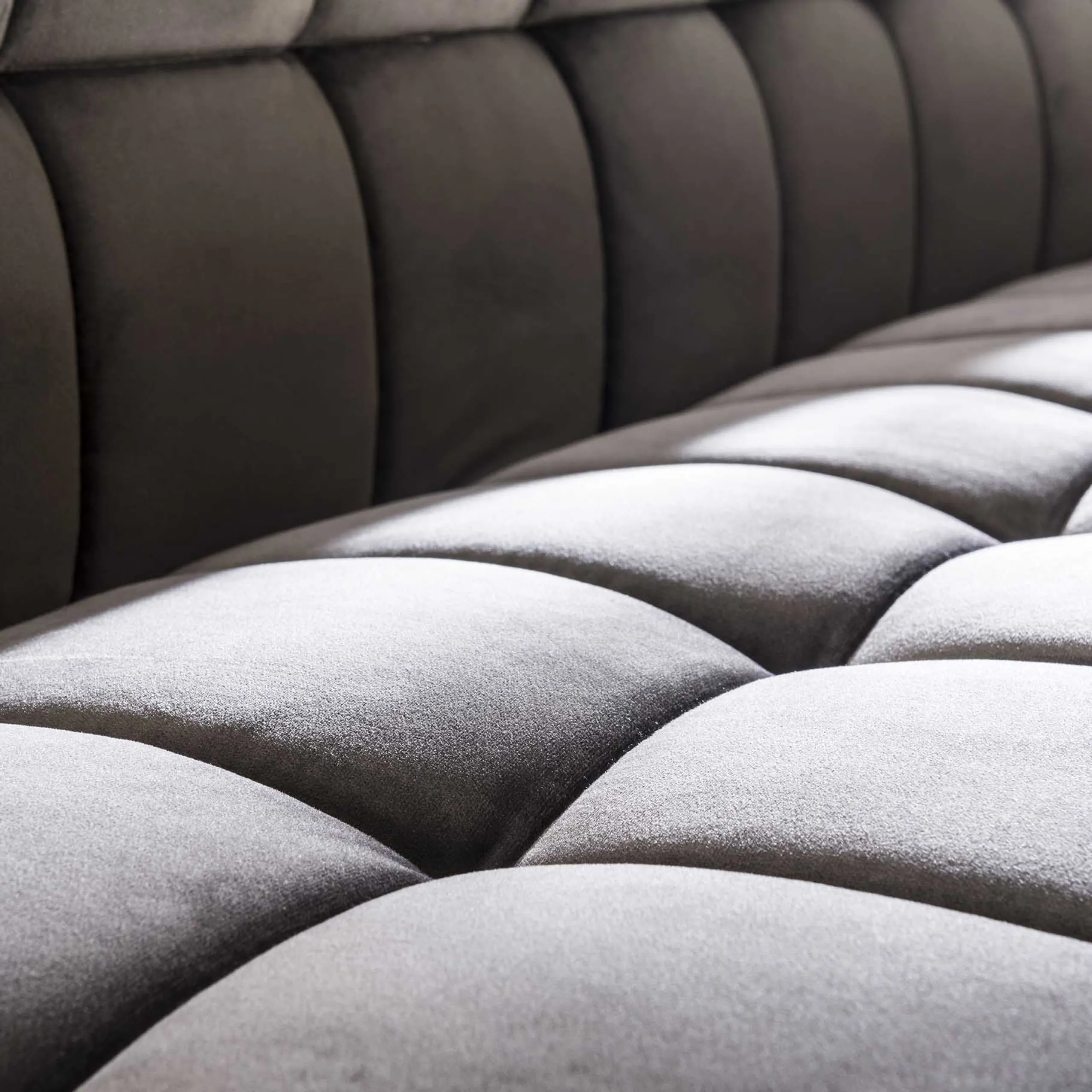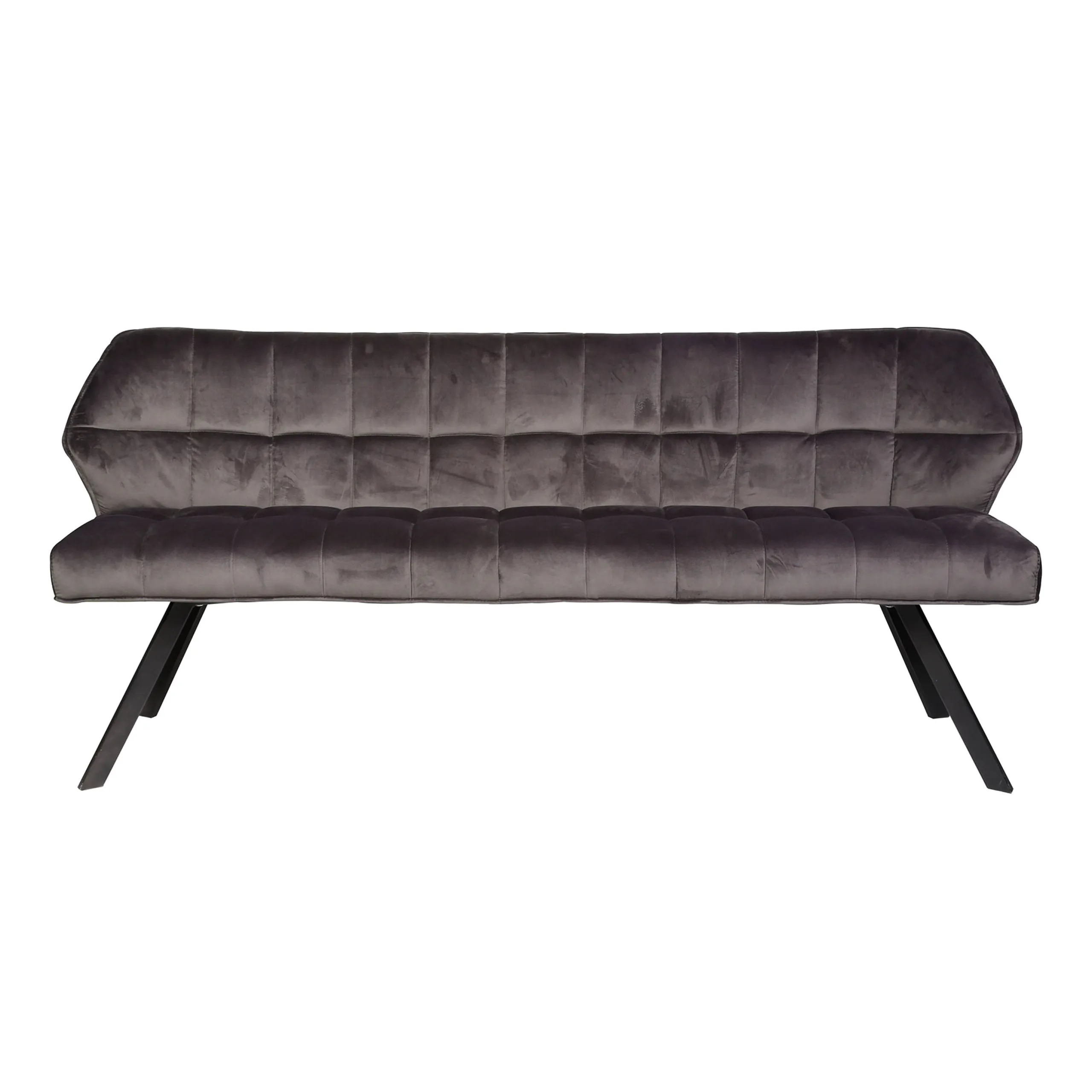 Herrlich elegant und eine Bereicherung für jeden Haushalt. Die Esstischbank Raster aus der Vintagehaus Serie begeistert durch den modernen grauen Samt-Look in Verbindung mit den schwarzen ausgestellten Metallbeinen. Beim entspannten Abend mit Freunden haben vier Leute gut Platz und möchten diesen auch nicht mehr so schnell verlassen. Die gut gepolsterte und komfortable Sitzbank in anthrazit kann aber auch als 3-Sitzer Sofa im Wohnzimmer oder Büro dienen.