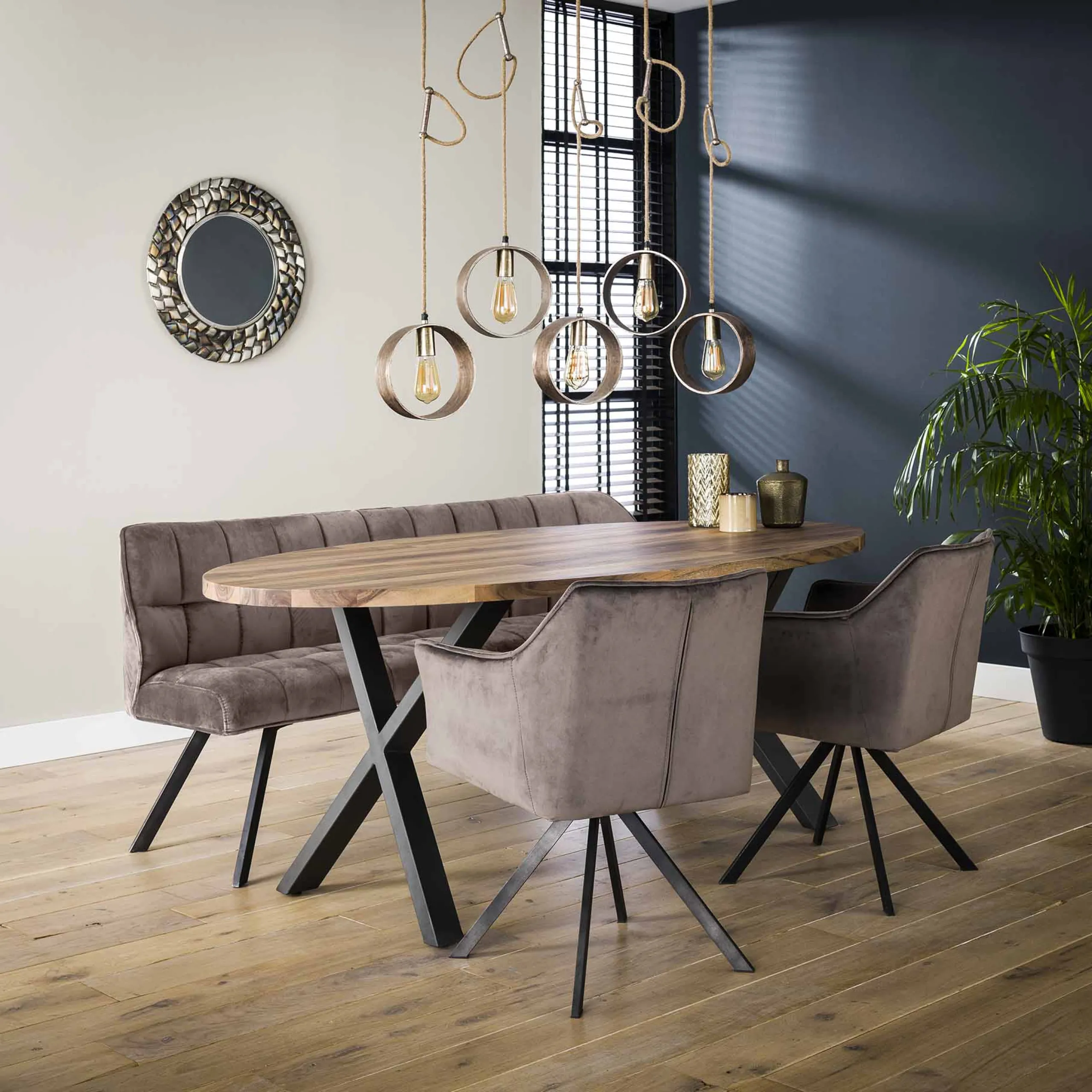 Um den Look zu komplettieren finden Sie den passenden Esstischstuhl und die Bank mit 2 Drehstühlen im Set hier