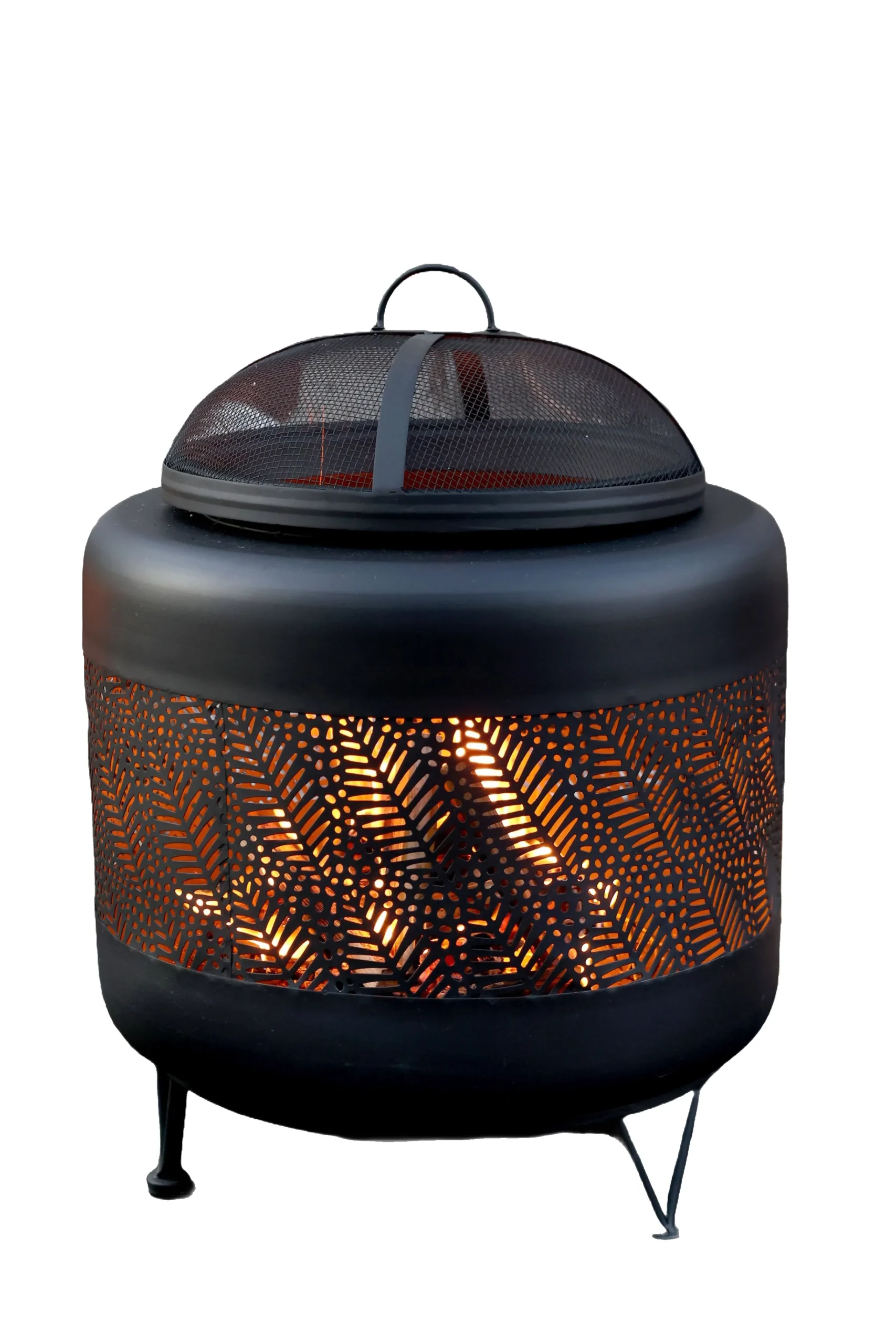 Diese stilvolle und robuste Feuerstelle bringt Wärme und Atmosphäre in Ihren Garten oder auf Ihre Terrasse. Hergestellt aus langlebigem, schwarzem Eisen überzeugt sie durch ihr modernes Lochstahldesign mit stabilen Standfüßen. Das schön gestaltete Gitterkonstruktion sorgt für ein sicheres und beeindruckendes Flammenspiel, während der integrierte Kaminabzug Rauch optimal nach oben ableitet.