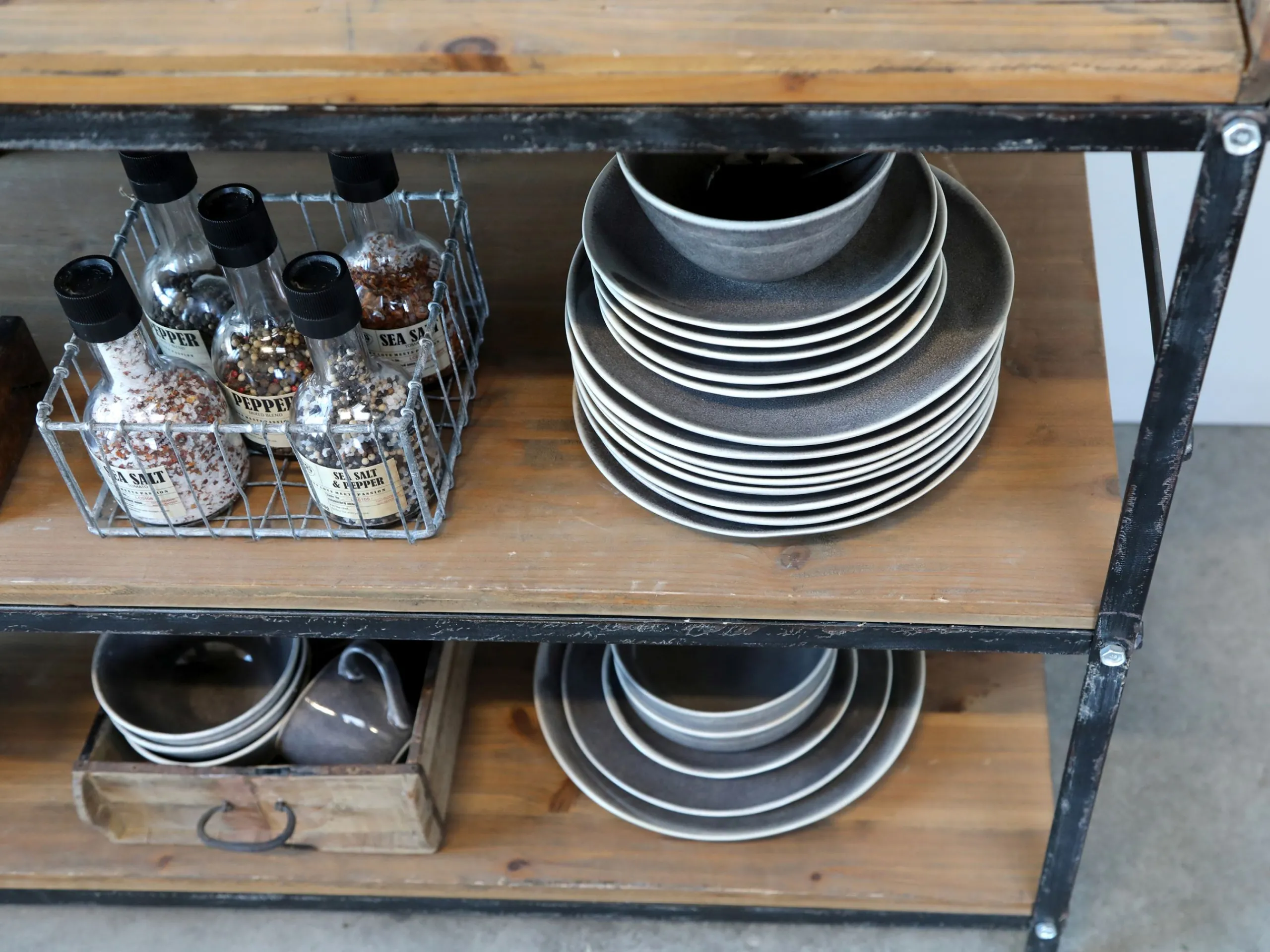 Mit seinen 3 Holzböden ist das offene Regal Raphaël in der Küche ein perfektes Möbelstück, um Geschirr, Gläser oder auch Vorratsgläser zu platzieren. Im Wohnraum können Sie sich dekorativ austoben: Bildbände, Pflanzen, Vasen, Körbe und hübsche Dinge die Ihnen am Herzen liegen, finden ausreichend und luftig ihren Platz. Die warme Farbe des Holzes kontrastiert wunderbar mit dem schwarzen Used-Look Metallrahmen des Regals. Stabil und robust kann es also perfekt in jeden Raum Ihrer Wahl gestellt werden.
