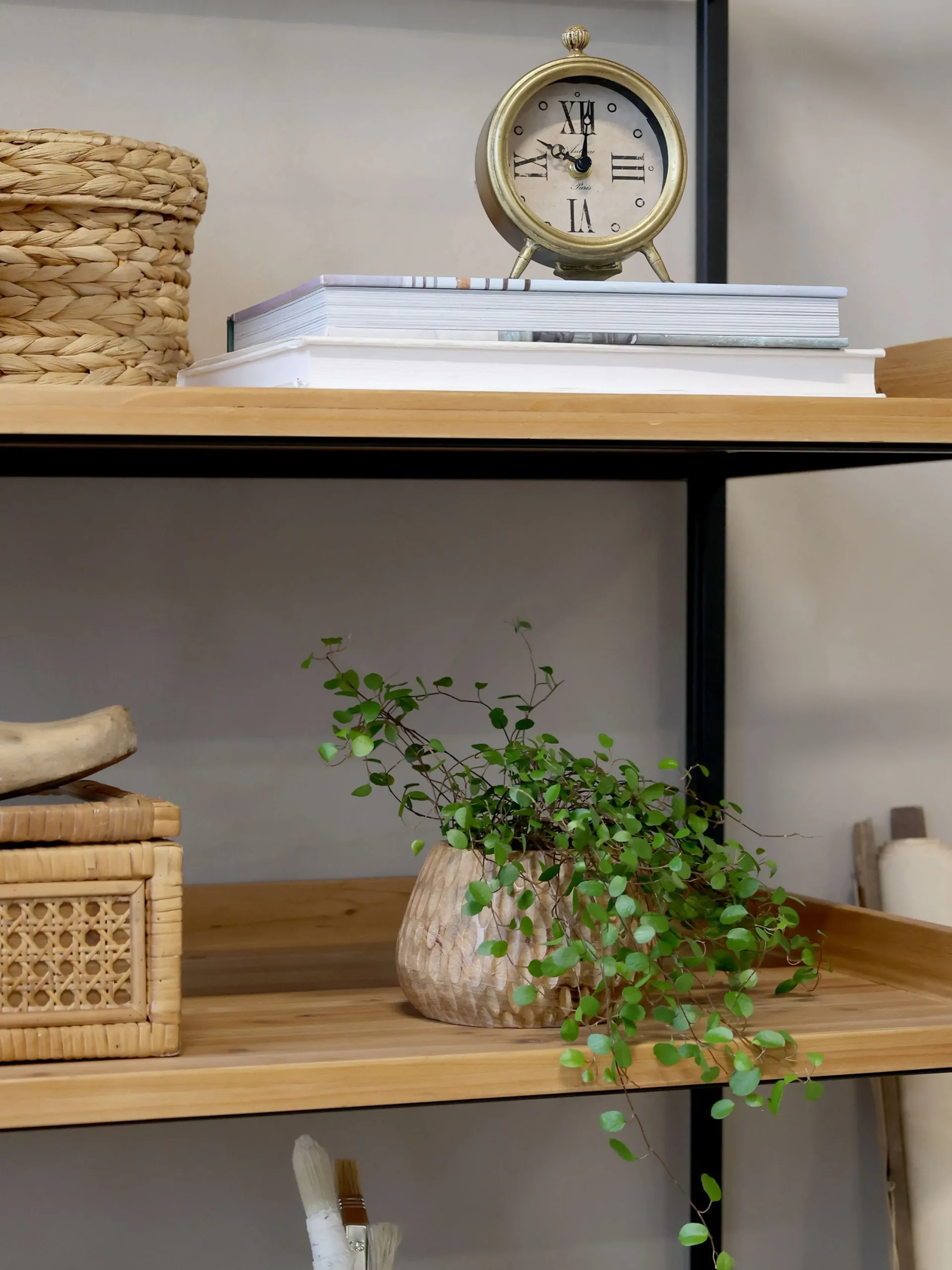 Mit seinen 6 Holzböden ist das offene Regal Raphaël in der Küche ein perfektes Möbelstück, um Geschirr, Gläser oder auch Vorratsgläser zu platzieren. Im Wohnraum können Sie sich dekorativ austoben: Bildbände, Pflanzen, Vasen, Körbe und hübsche Dinge die Ihnen am Herzen liegen, finden ausreichend und luftig ihren Platz. Die warme Farbe des Holzes kontrastiert wunderbar mit dem schwarzen Used-Look Metallrahmen des Regals. Stabil und robust kann es also perfekt in jeden Raum Ihrer Wahl gestellt werden.