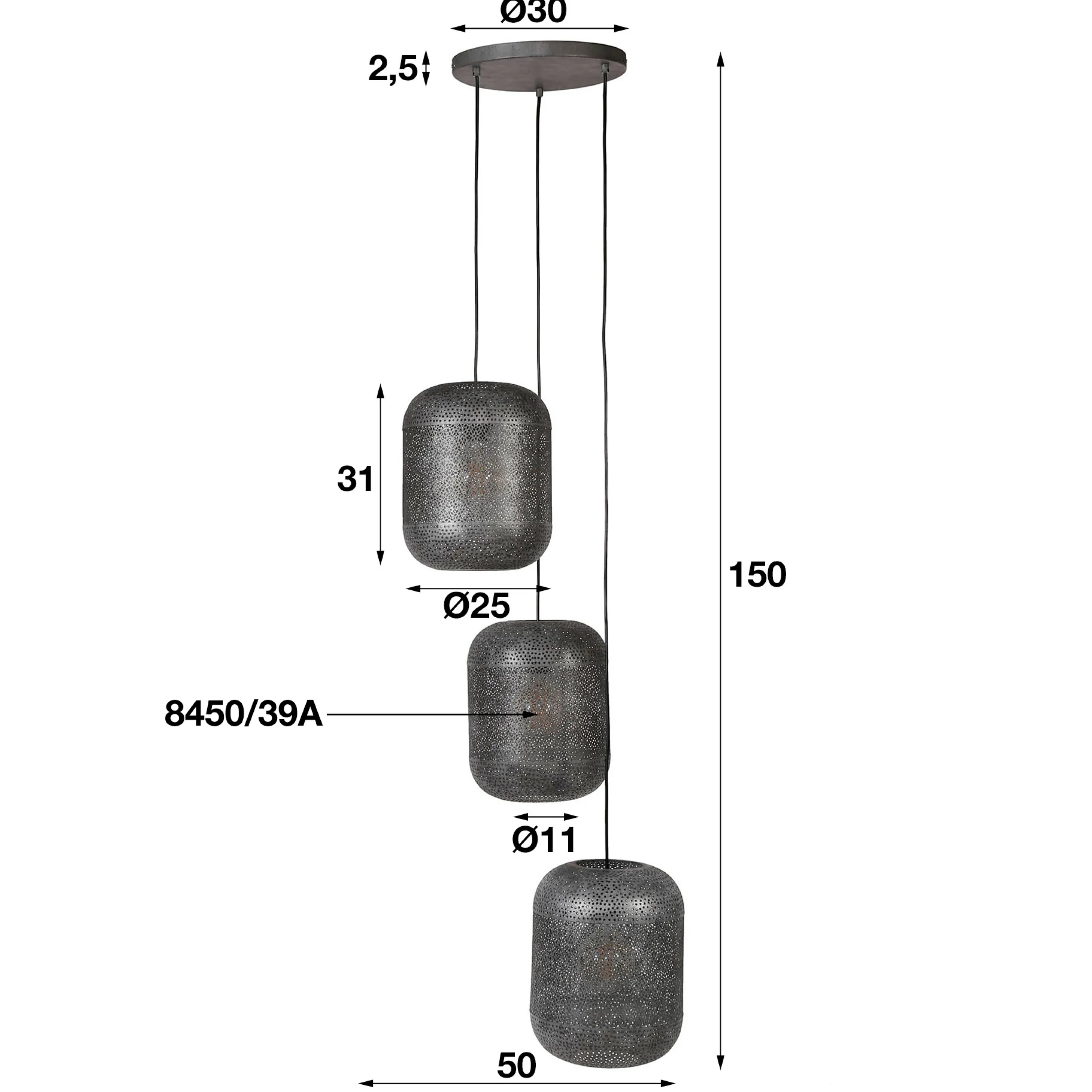 Verzaubern Sie Ihr Zuhause mit orientalischem Flair! Die feine Lochung, die aus jedem Schirm herausgelasert wurde, lässt das Licht durchscheinen und erinnert an die Märchen von Tausendundeine Nacht. Die Oberfläche der Lampenschirme wurde mit einer Metallätzung behandelt. So entsand eine unregelmäßige Oberfläche mit wunderschöner Patina. Inspiriert vom Look marrokanischer Riads und arabischer Paläste sorgt diese Pendelleuchte für prächtige Beleuchtung. Diese gestufte Lampe ist Teil der Etch Serie.