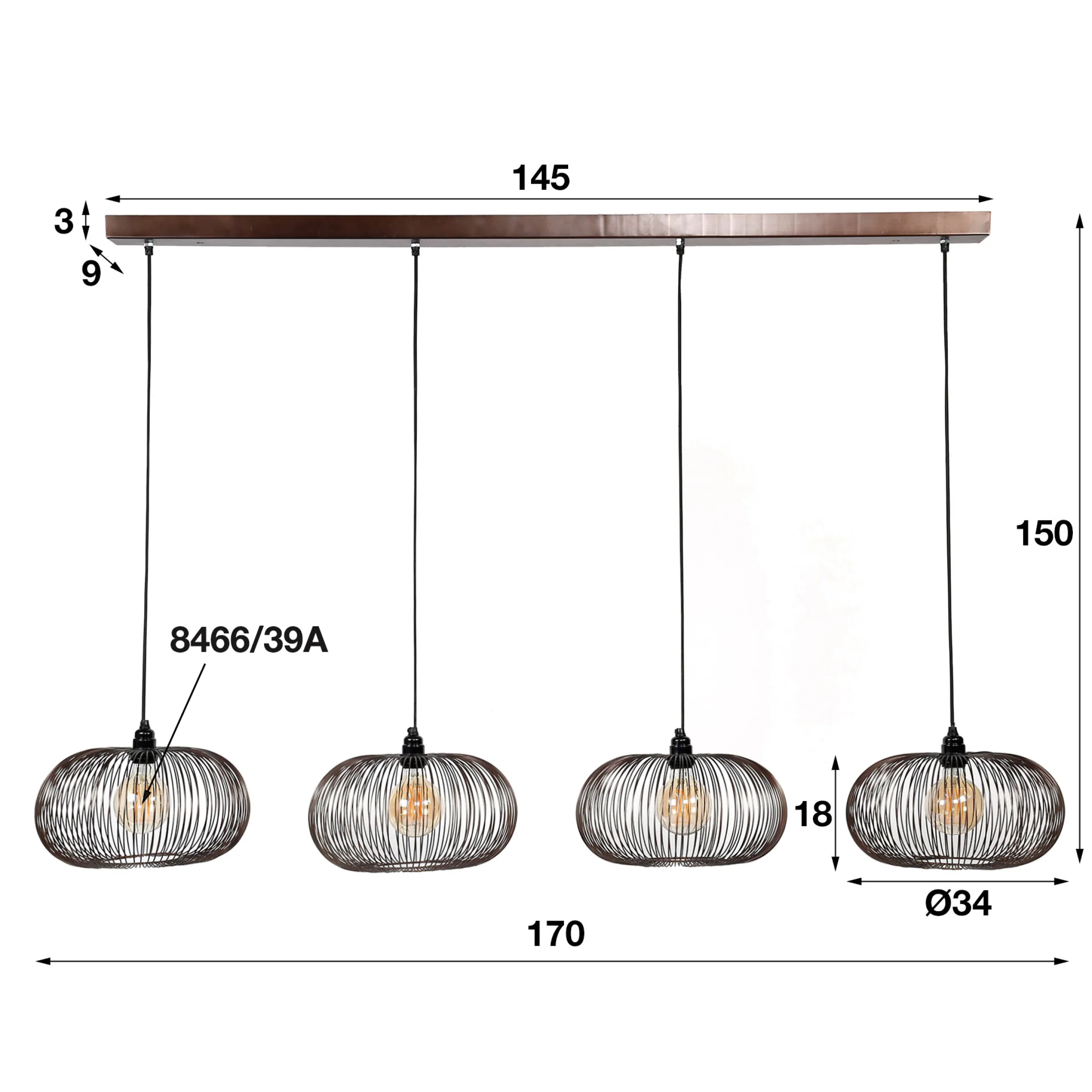Die Hängelampe Twist beindruckt mit ihren Lampenschirmen aus kupferfarbenem Draht. Die Drähte der Schirme sind mit messingfarbenen Lötstellen verziert. Diese goldenen Lötstellen wirken wie eine umgekehrte Schattierung und geben der sonst geradelinigen Lampe eine gewisse Verspieltheit. Unbeleuchtet ist die Farbe der Drähte ehrer anthrazit mit leichtem rötlich/braunem Einschlag. Beleuchtet kommt die kupferne Ausstrahlung zu Geltung, besonders mit unseren Edison Glühfadenlampen. Sie machen ein spezielles warmes Licht und blenden nicht.