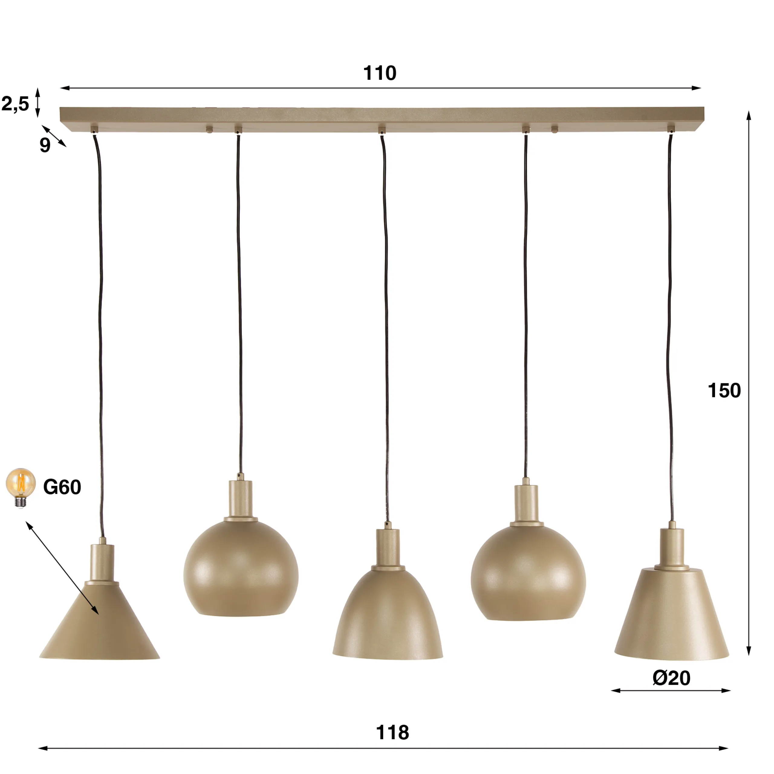 Industrial Hängelampe Metallo Beige mit unterschiedlichen Schirmen-Vintagehaus Lampen New