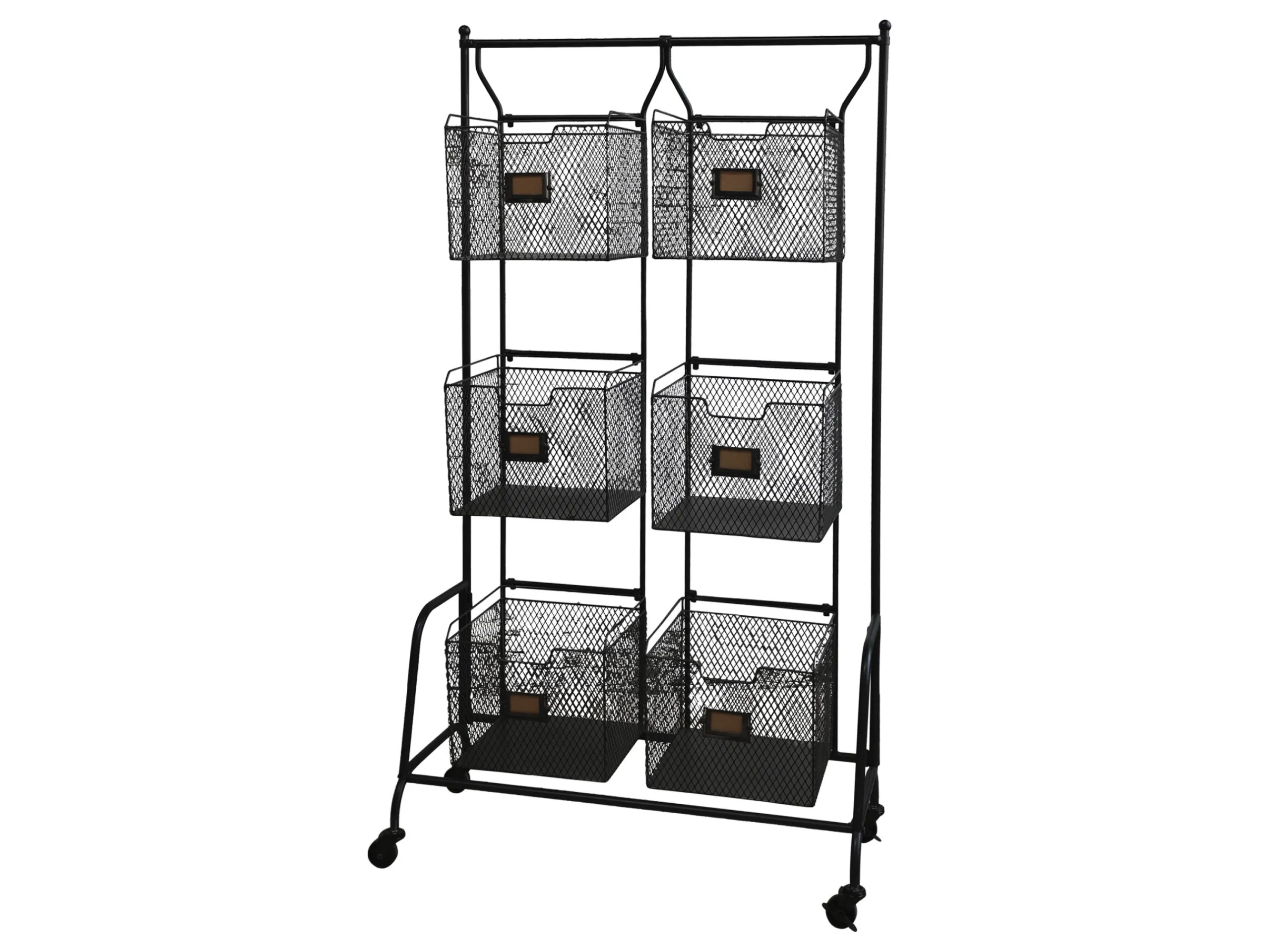 Das Regal ist für so viele Möglichkeiten offen: In den 6 Körben hat der Hobbykoch in der Küche die Möglichkeit seine Utensilien und Vorräte sortiert aufzubewahren. Auch für den Kleinkram zum Basteln, in der Werkstatt oder Gartenutensilien können Sie in den Gitterboxen verstaut werden. In die Etikettenhalter können Sie Beschriftungsschilder schieben. Durch die feststellbaren Rollen ist das Regal schnell mal an einen anderen Standort geschoben.