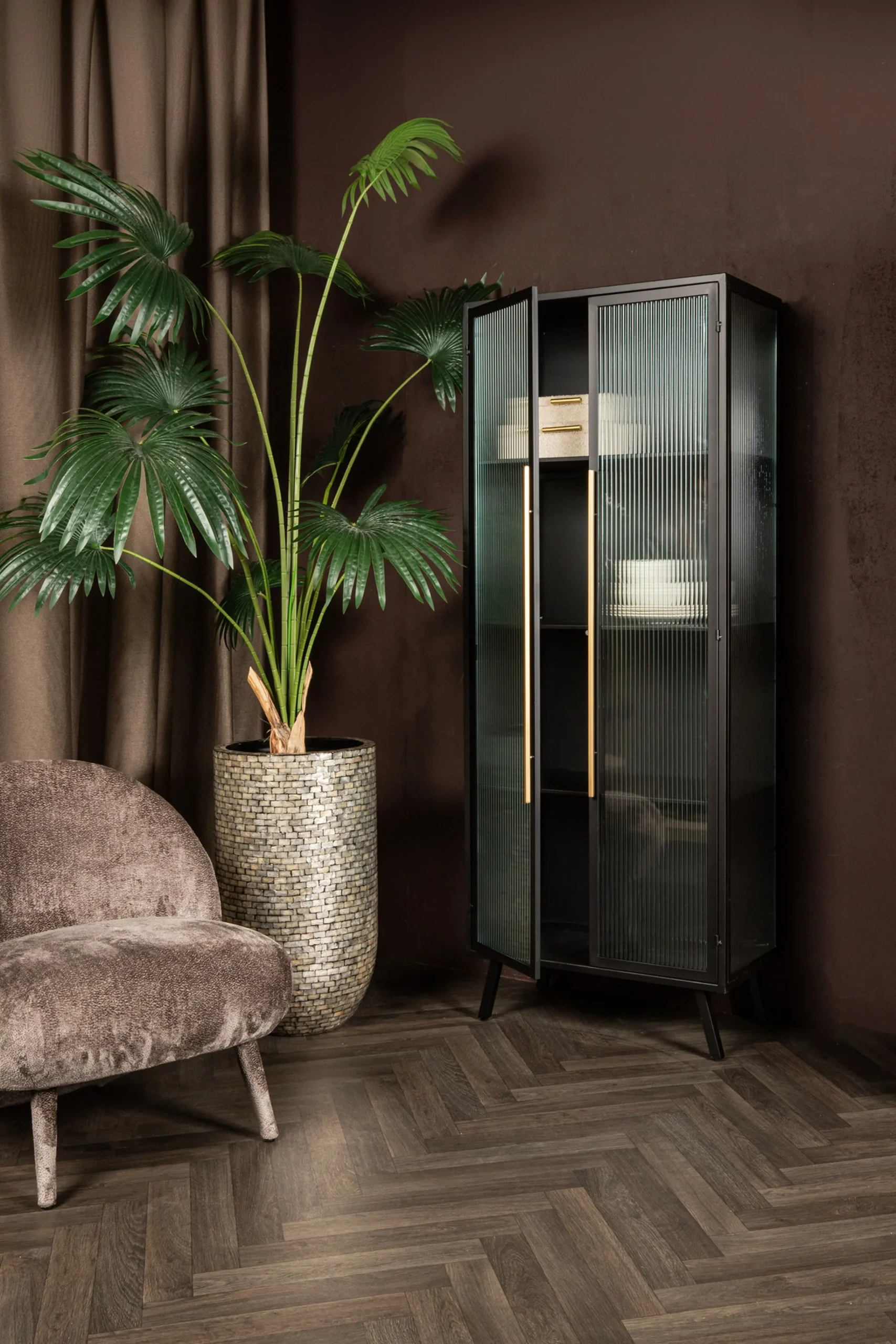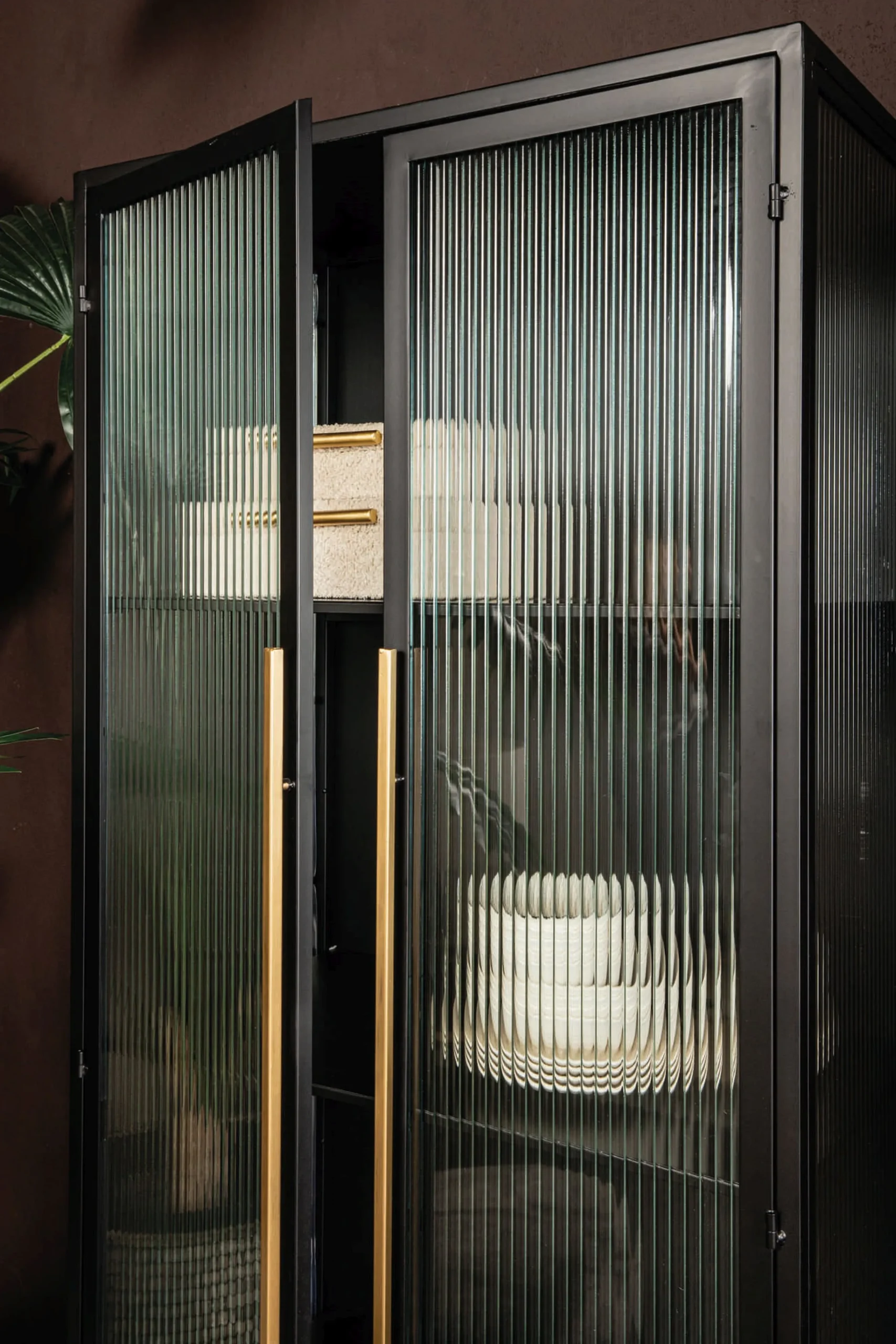 Industrial Vitrine Caeleen Metall mit geriffeltem Glas-PTMD Discount