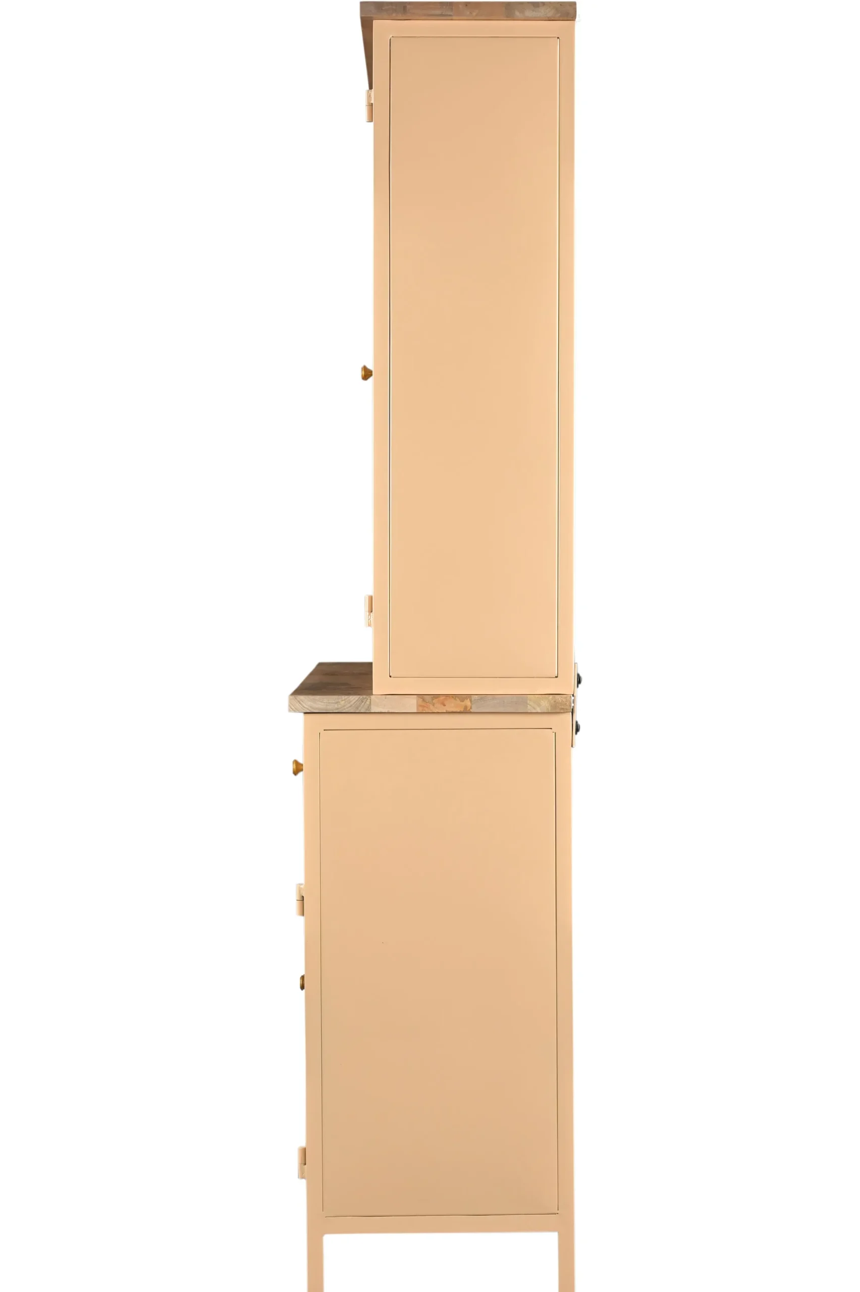 Die Vitrine Provence ist ein wahr gewordener Retro-Traum aus Metall, Holz und Glas! Sie entfaltet ihre besondere Raumwirkung durch das gekonnte Zusammenspiel von Farben und Materialien. Der Korpus ist komplett aus Metall, das Innenleben aus wunderschön gemasertem Mangoholz. Die zahlreichen Glaselemente verleihen eine außergewöhnliche Transparenz. Der Schrank bringt im Wohnzimmer wertvolle Bücher und Kunstobjekte, kostbare Sammler- und geliebte Erinnerungsstücke stilvoll zur Geltung, im Speisezimmer oder der Küche präsentiert er edles Porzellan und Kristallglas. Zusätzlichen Stauraum bieten die beiden Schubladen. Abgerundet wird das Ganze mit goldenen Griffen. Und der ganz große Auftritt ist dank der Farbgebung garantiert sicher! Die Vitrine wird für den leichteren Transport zweiteilig geliefert.