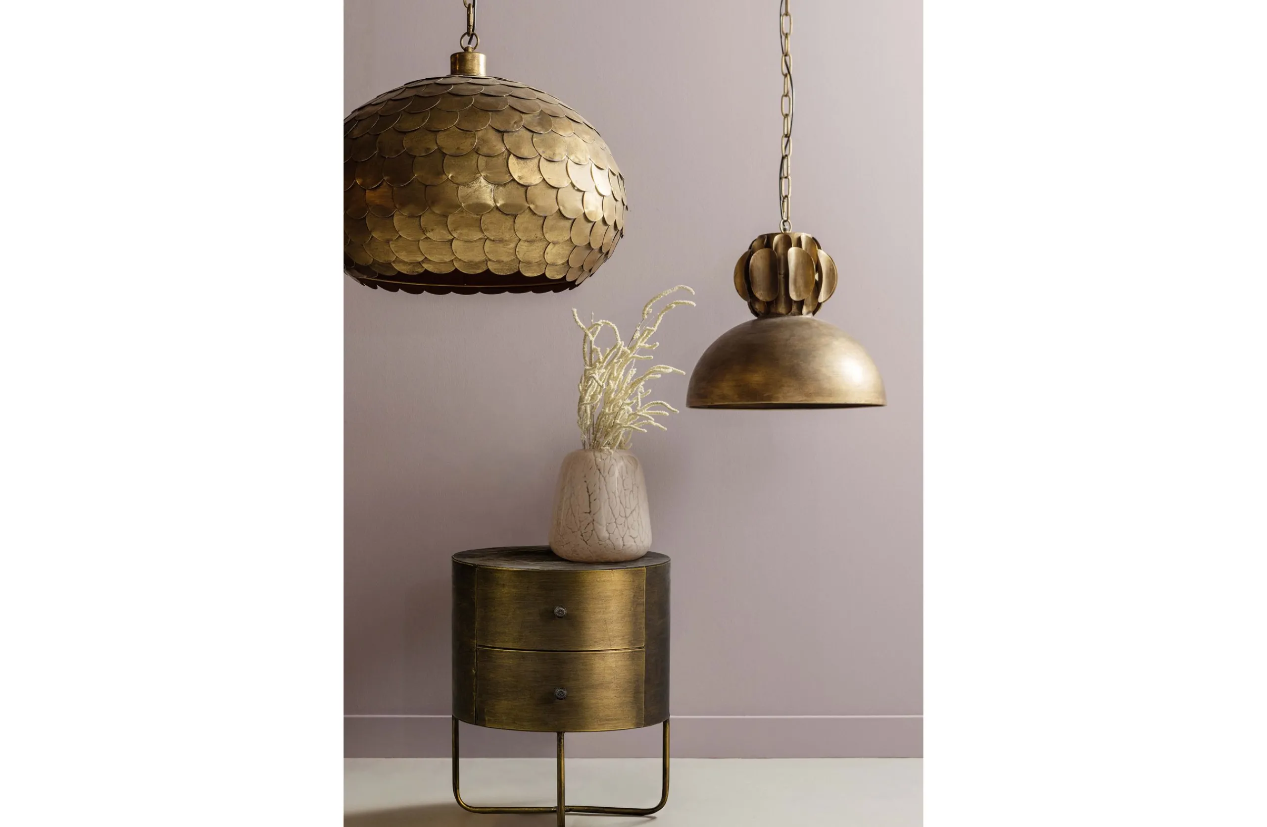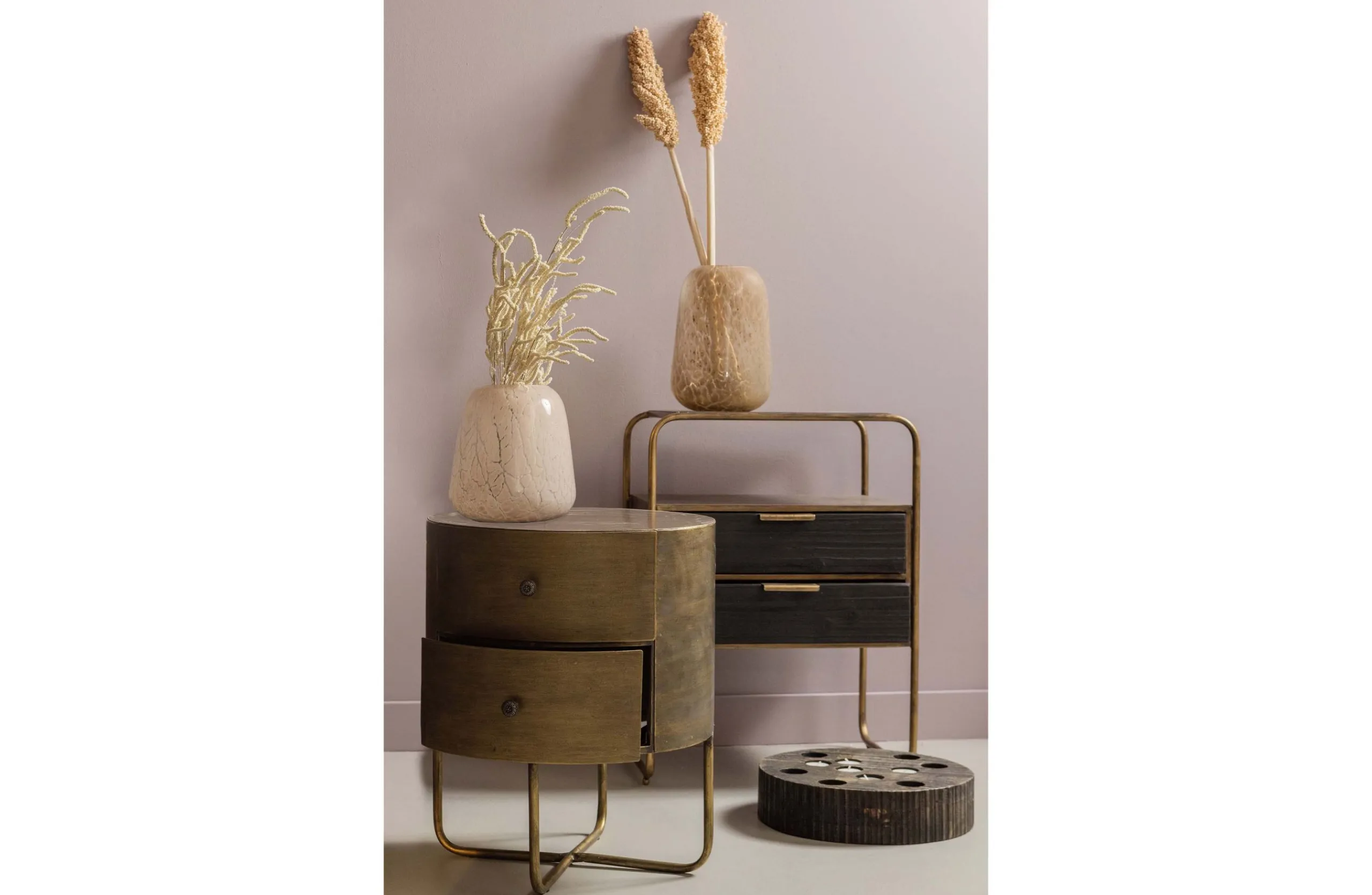 Nachttisch Beistelltisch Glossy Rund Metall Antik Messing-BePureHome