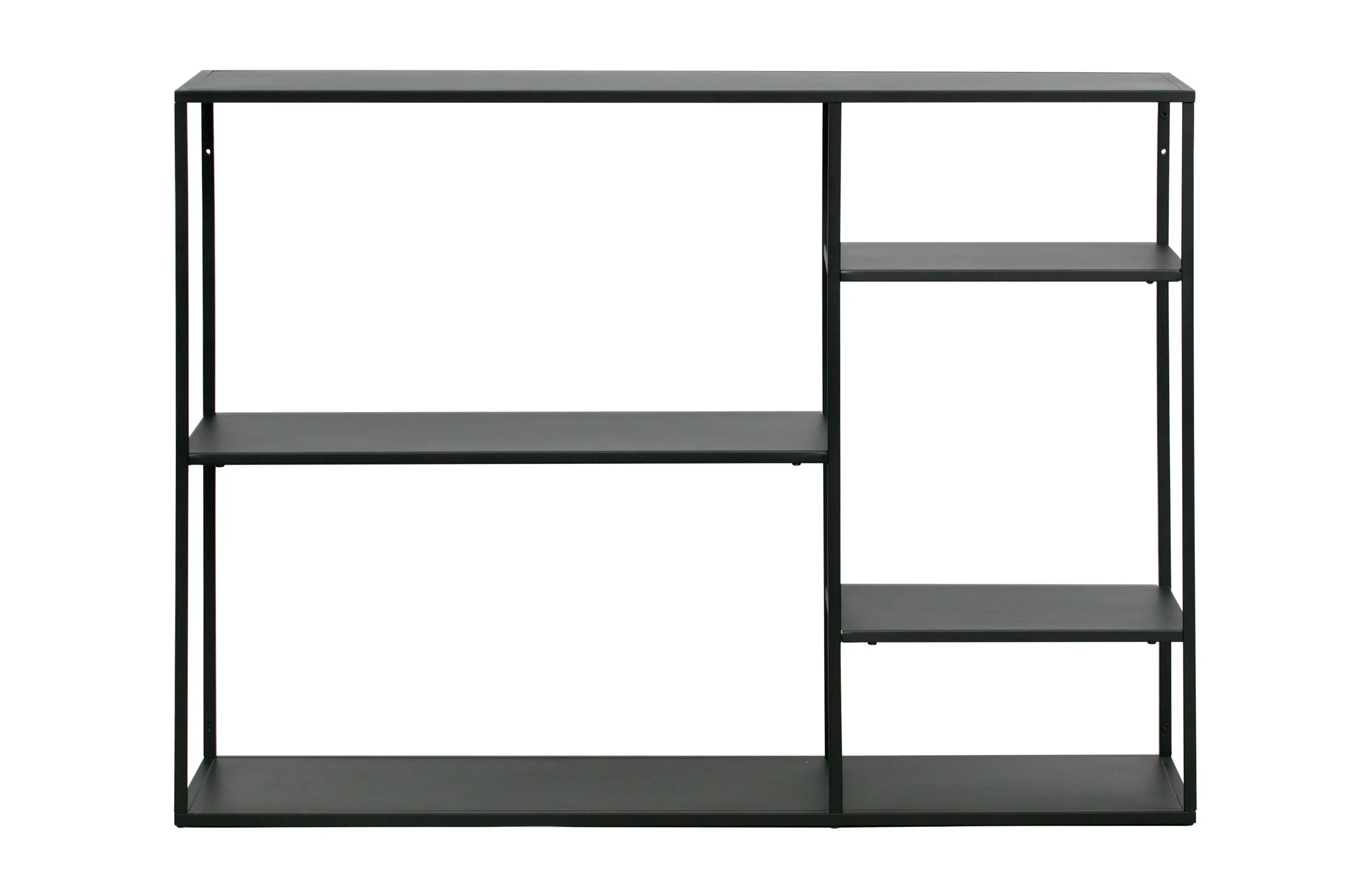 Das Regal Soho June besteht aus einem edlen schwarzen Metallrahmen und fünf Regalböden. Aufgrund der aufgelockerten Einteilung wird das Metallregal zum Blickfang. Durch den beidseitig offenen Aufbau lässt es sich ebenso hervorragend als Raumteiler verwenden. Optisch und funtkionell überzeugt die Soho June Regalreihe auf ganzer Linie.