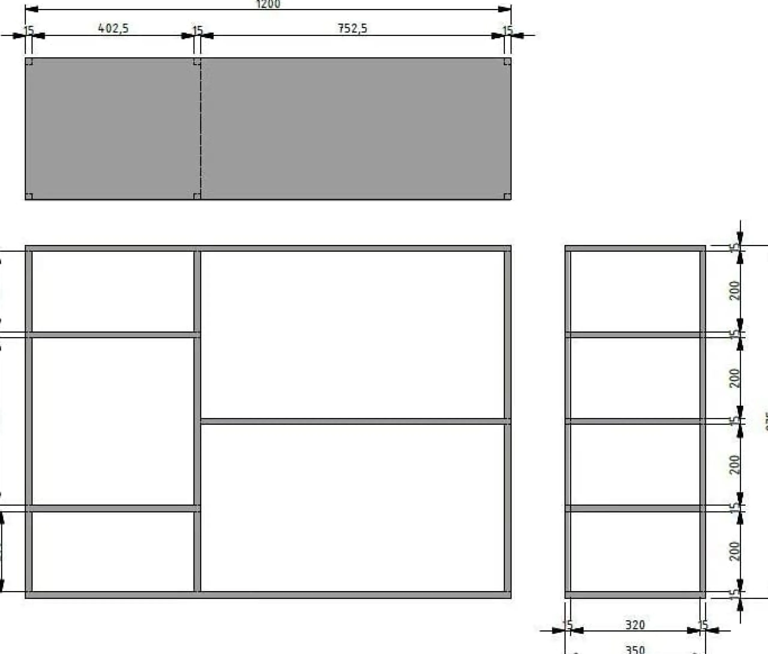 - Maße: 87,5 x 120 x 35 cm (H/B/T), Montage erforderlich (zerlegt geliefert), die Höhe zwischen den großen Fächern beträgt 41,5 cm und zwischen den kleineren Fächer 19,5 cm. Die Breite der großen Fächer beträgt 75 cm und die Breite der schmalen Fächer 40 cm.