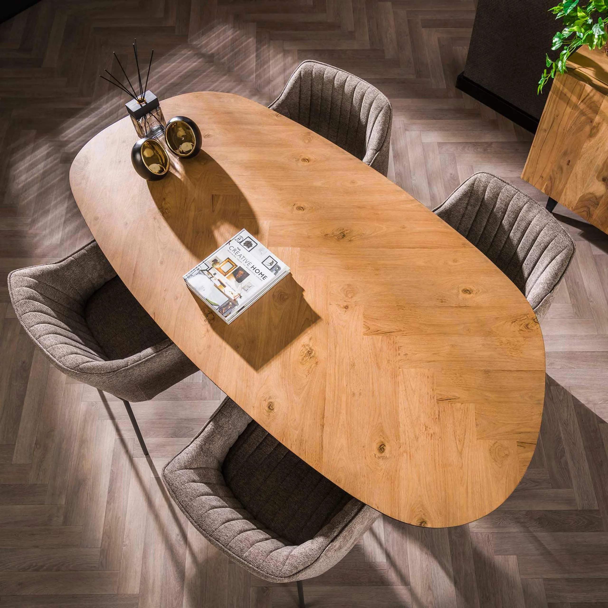 Retro Esstisch Organic Shape Teakholzfurnier Fischgrätmuster 180-Vintagehaus Hot
