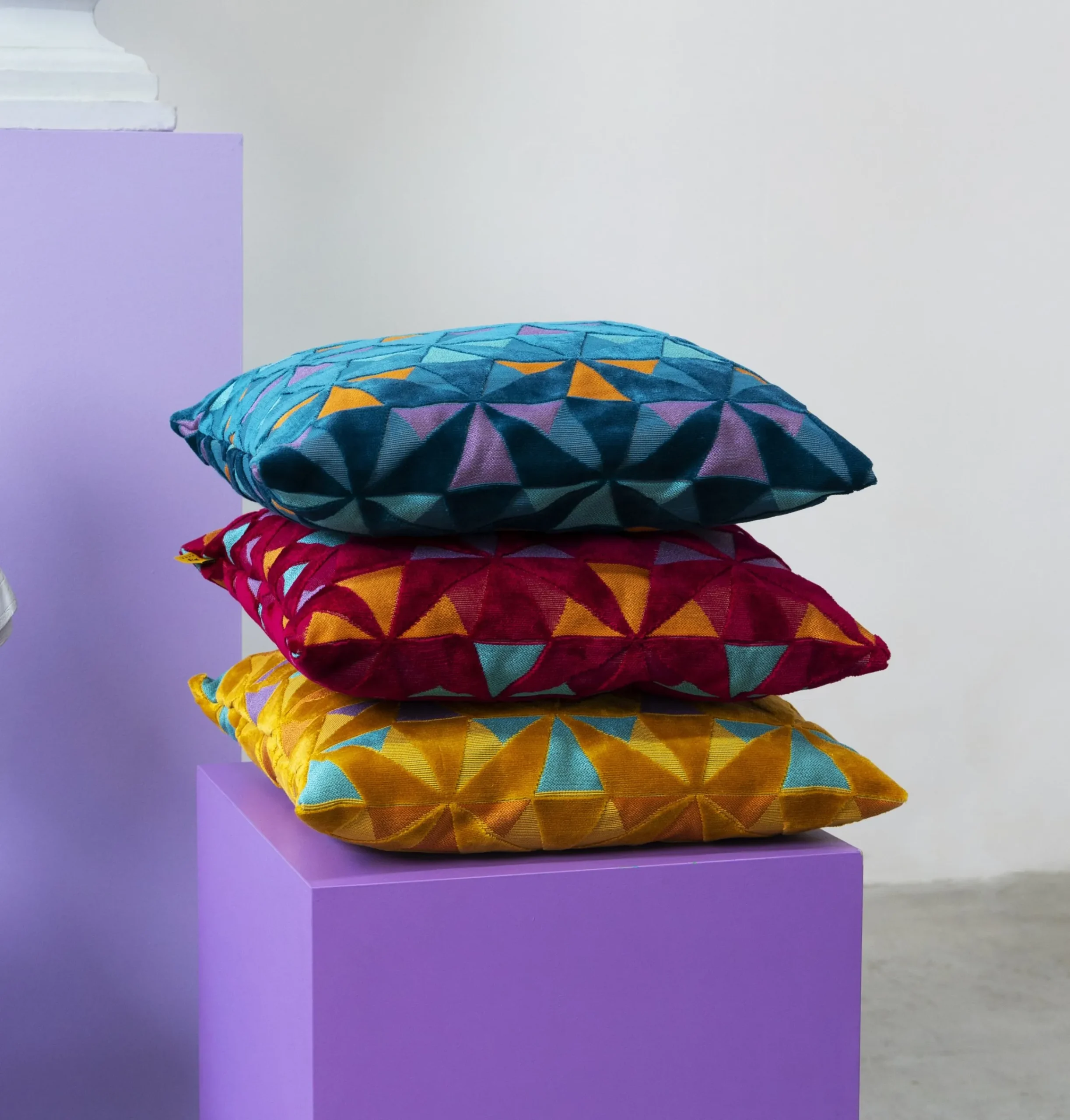 Unsere Start The Fireworks-Kissen sind ein sicherer Weg, um eine Farbexplosion auf Ihr Sofa zu bringen! Erhältlich in satten Gelb-, Fuschia- und Blautönen, sorgen die grafischen, juwelenähnlichen Muster für einen zusätzlichen Knalleffekt. Sie sind aus einer Polyester-Viskose-Mischung gefertigt und haben einen strukturierten, aber dennoch weichen Griff. Zögern Sie nicht Drucke und Farben in einem hellen Interieur miteinander zu kombinieren, oder setzen Sie ein paar dieser Kissen ein, um einem neutralen Raum einen Hauch von Helligkeit zu verleihen.