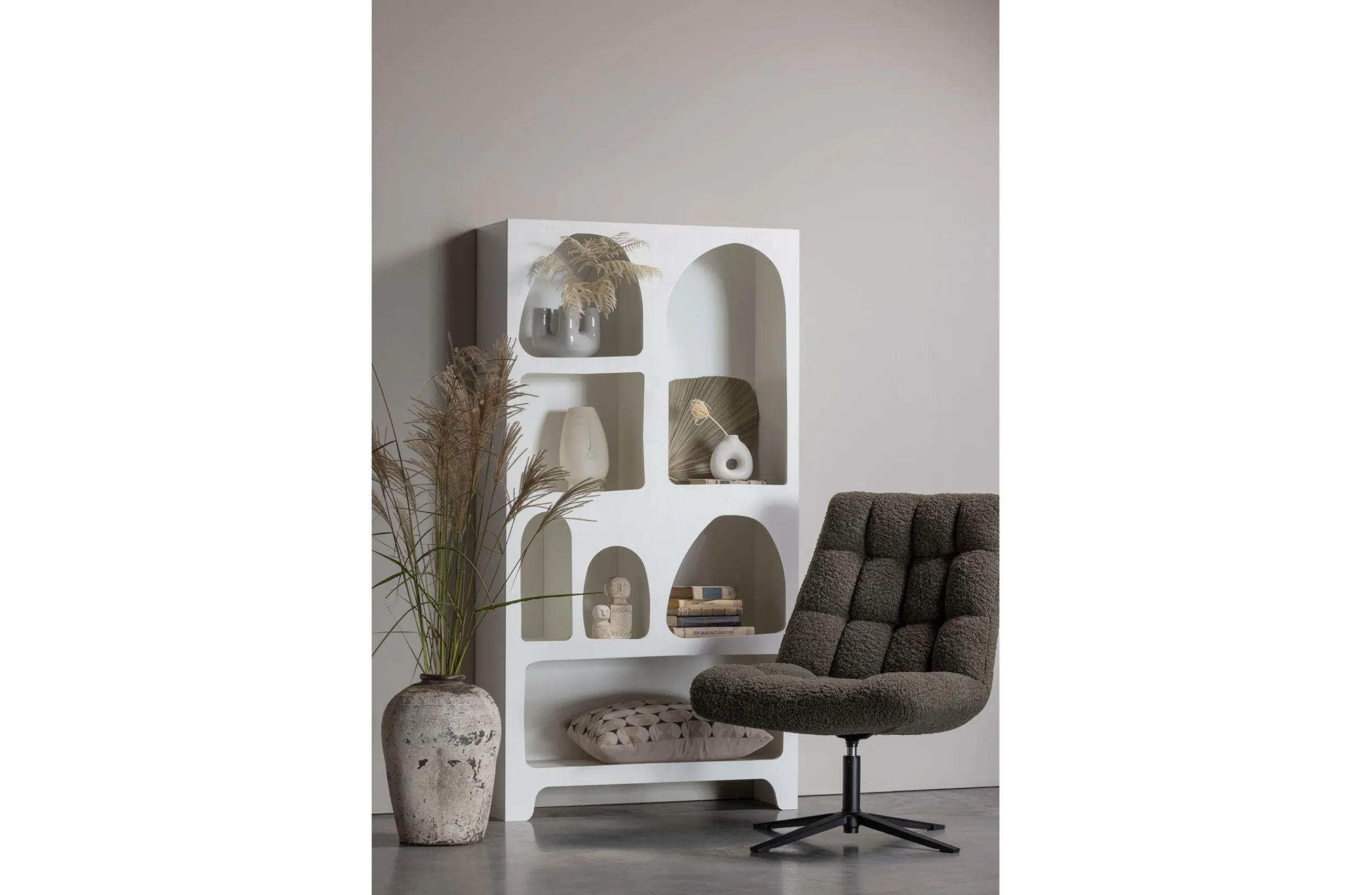 Mit seiner organischen, sanften Form sorgt das Regal Organic Caz für Natürlichkeit und setzt mit seinem einzigartigen Design ein Statement. Die weichen und runden Formen erinnern an eine Steinwand, die von Wind, Wasser und Sand ausgehöhlt wurde. Mit diesem weißen Regal aus der niederländischen WOOOD-Kollektion holen Sie sich ein trendiges und modernes Möbelstück in Ihr Zuhause. Der Schrank Caz ist aus Sperrholz mit weißer Lackierung gefertigt und hat entweder 5 oder 7 Fächer. Durch die großzügigen Abmessungen ist der Schrank ein echter Blickfang, ob einzeln oder im Set. Zum Schutz Ihres Bodens und zum kleinen Höhenausgleich wird empfohlen Filzgleiter unter den Beinen zu befestigen.