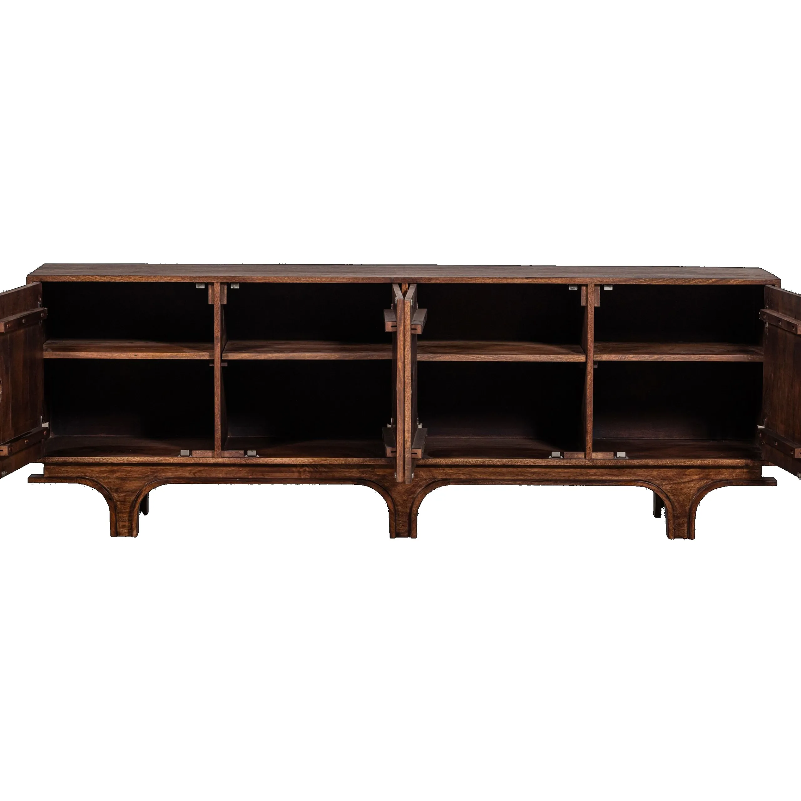 Die verspielten Linien im Sockel und das Mangoholz mit walnussfarbener Oberfläche machen das Staes Sidebaord zu einer klassischen, attraktiven Ergänzung des Interieurs. Aus edlem Mangoholz gefertigt, ist diese Kommode nicht nur funktional, sondern auch ein echtes Statement-Stück für Ihr Zuhause. Die Maserung, Farbnuancen und Unregelmäßigkeiten des Holzes machen den Schrank zu einem authentischen Element in Ihrer Inneneinrichtung.