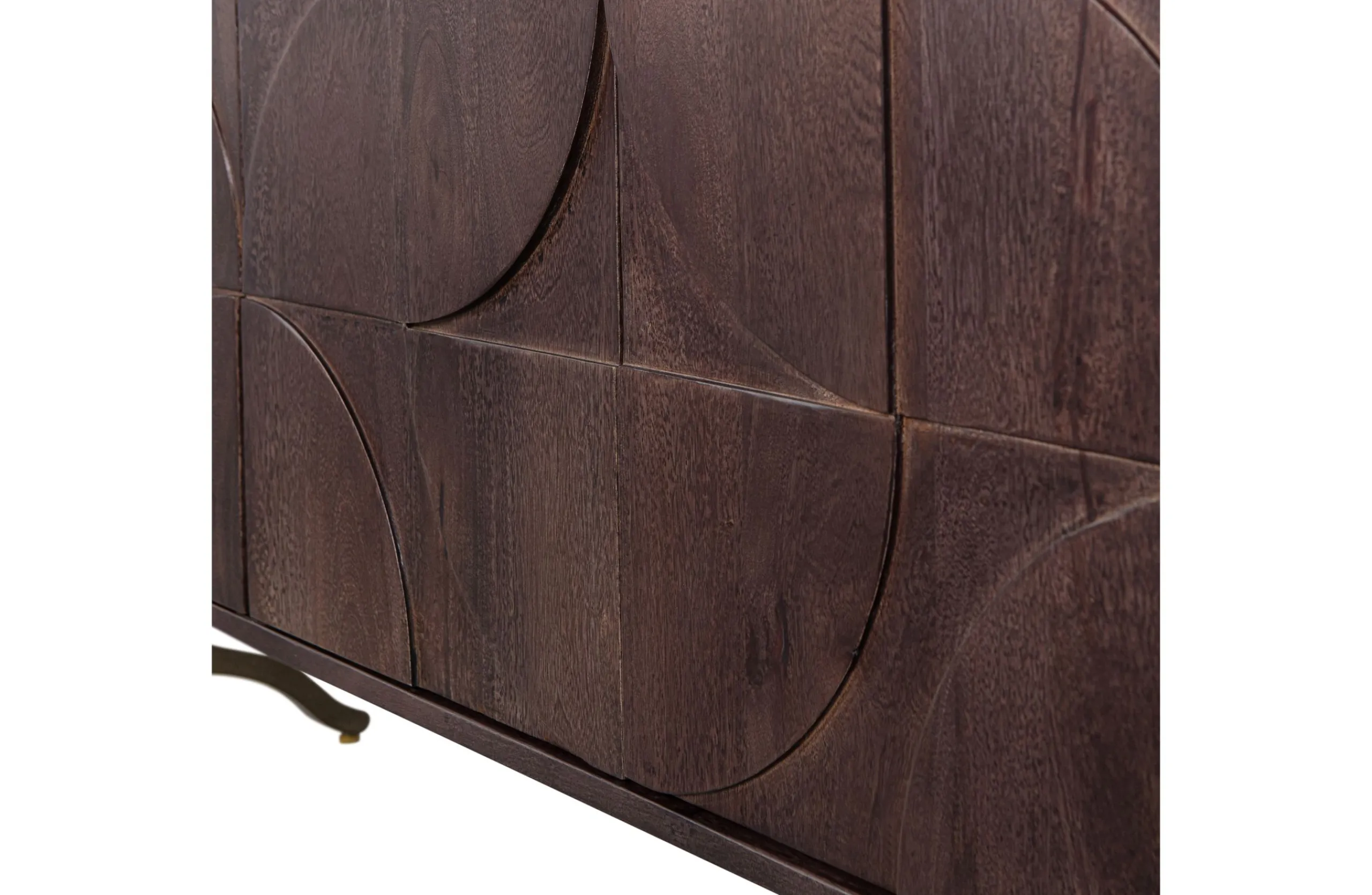 Ausgestattet mit vier Türen bietet dieses Massivholzsideboard Stauraum und Ablagefläche. Das dekorative Möbelstück im schicken Retro-Stil ist ideal im Wohn- und Schlafzimmer einsetzbar. Machen Sie sich sein einzigartiges Design zu Nutzen und werten Sie Ihr Zuhause damit auf! Das warme Walnuss-Finish des Mangoholzes verleiht dem Draw Sideboard sein attraktives Aussehen. Das verspielte Fußgestell sorgt für Leichtigkeit und für große Stabilität. Das 3D-Muster auf den Türen erzeugt eine einzigartige Atmosphäre. Das Zusammenspiel von Materialien und die grafischen Formen sind ein echter Hingucker. Elegant, modern und gleichzeitig funktional. Auf der Rückseite befinden sich zusätzlich zwei praktische Kabellöcher.