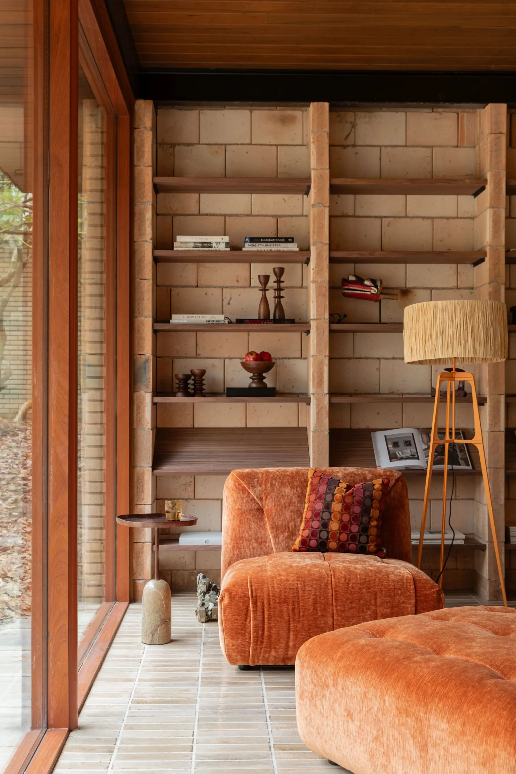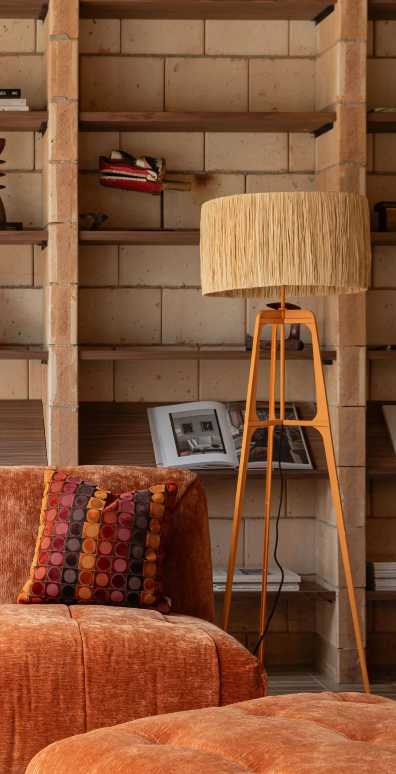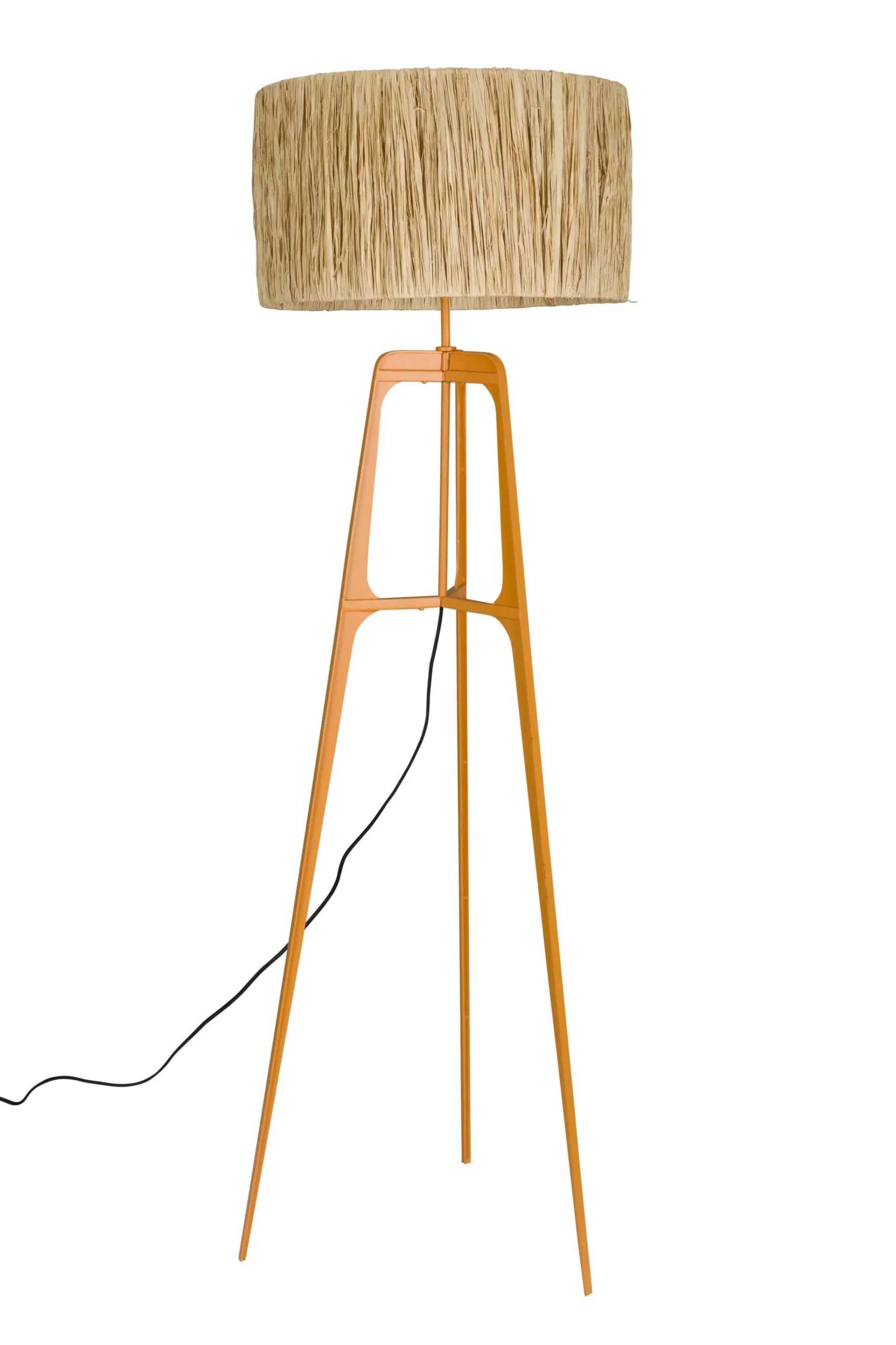 Retro Stehlampe Afra Metallgestell mit Bastschirm in orange-DutchBone
