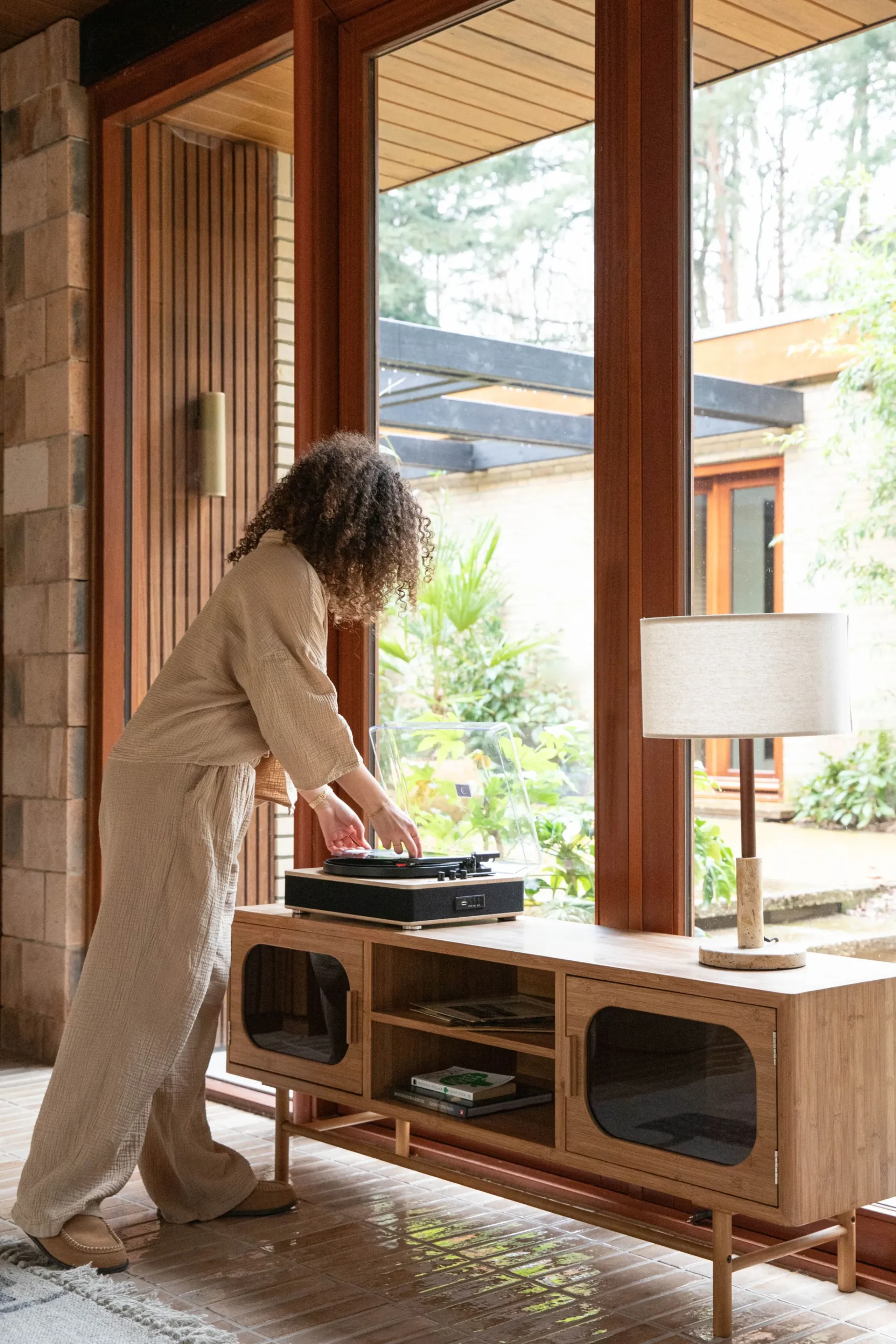 Retro TV-Board Sideboard Caroun Bambus Rauchglas-DutchBone Clearance