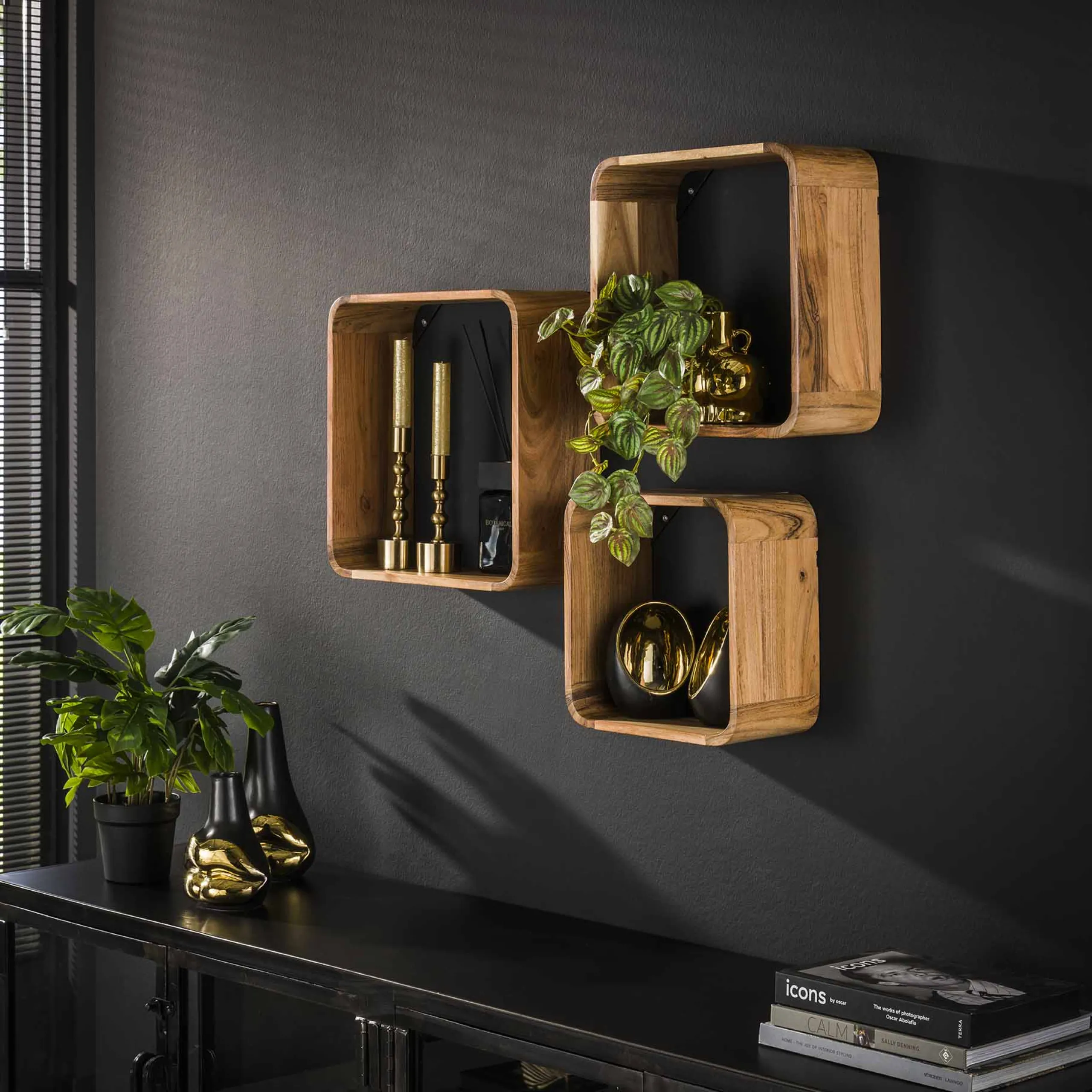 Retro Wandregal 3er Set Curvy Cubes Akazienholz-Vintagehaus Clearance