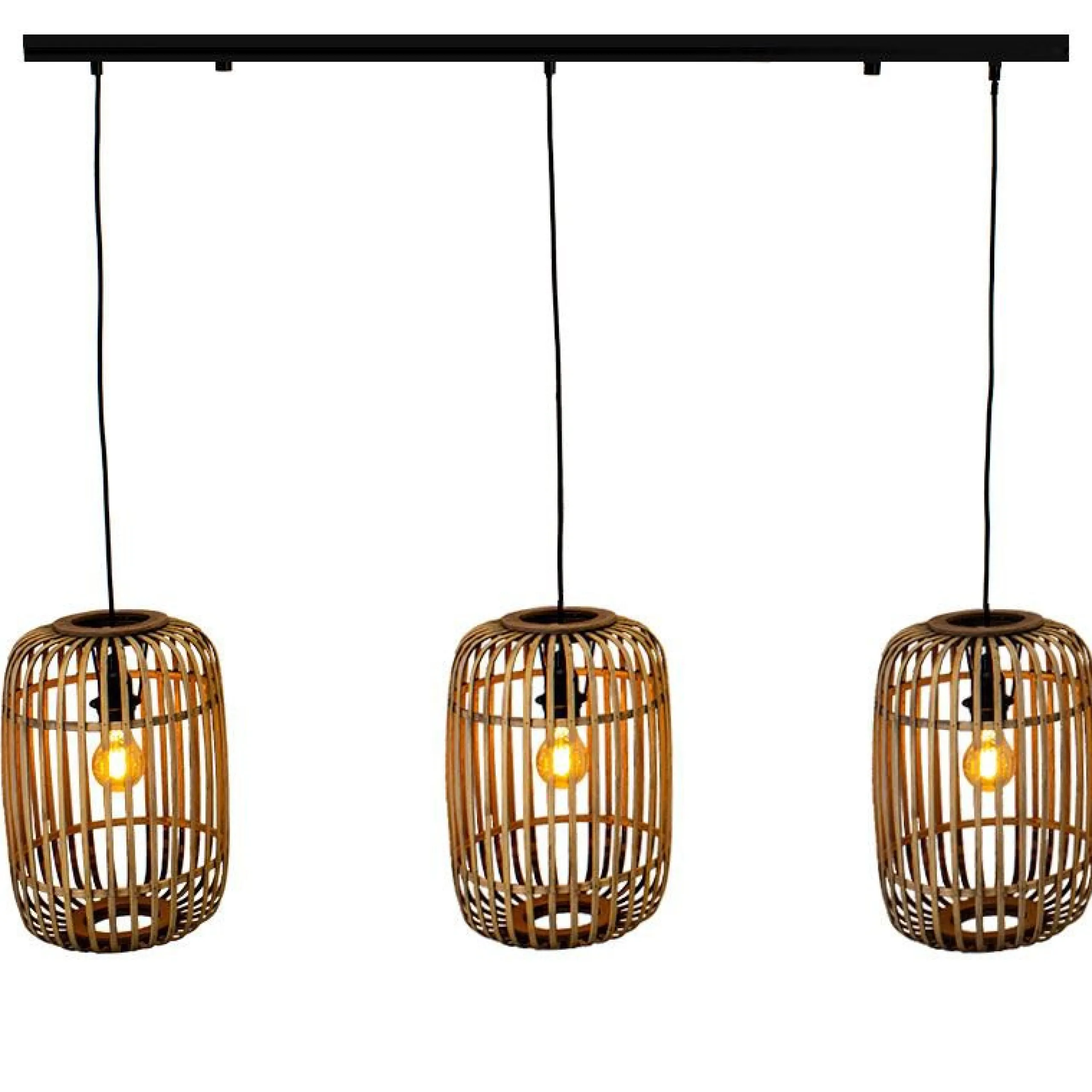 Ibiza ist eine Hängelampe, die eine angenehme Atmosphäre im Raum schafft. Sie ist aus Rattan gefertigt und vereint natürliche Materialien und ein einzigartiges Design zu einem fesselnden Ganzen. Die drei kunstfertig gearbeiteten Lampenschirme aus Holz geben durch das offene Design den Blick auf die Glühlampen frei. So verteilt sich das Licht gleichmäßig im Raum. Auch im ausgeschaltenen Zustand zieht die Lampe durch die schönen Holzschirme die Blicke auf sich. Die Rattanschirme in Kombination mit den Glühfadenbirnen und den Stoffkabeln lässt die Lampe zum wortwörtlichen Highlight Ihres Zuhauses werden.