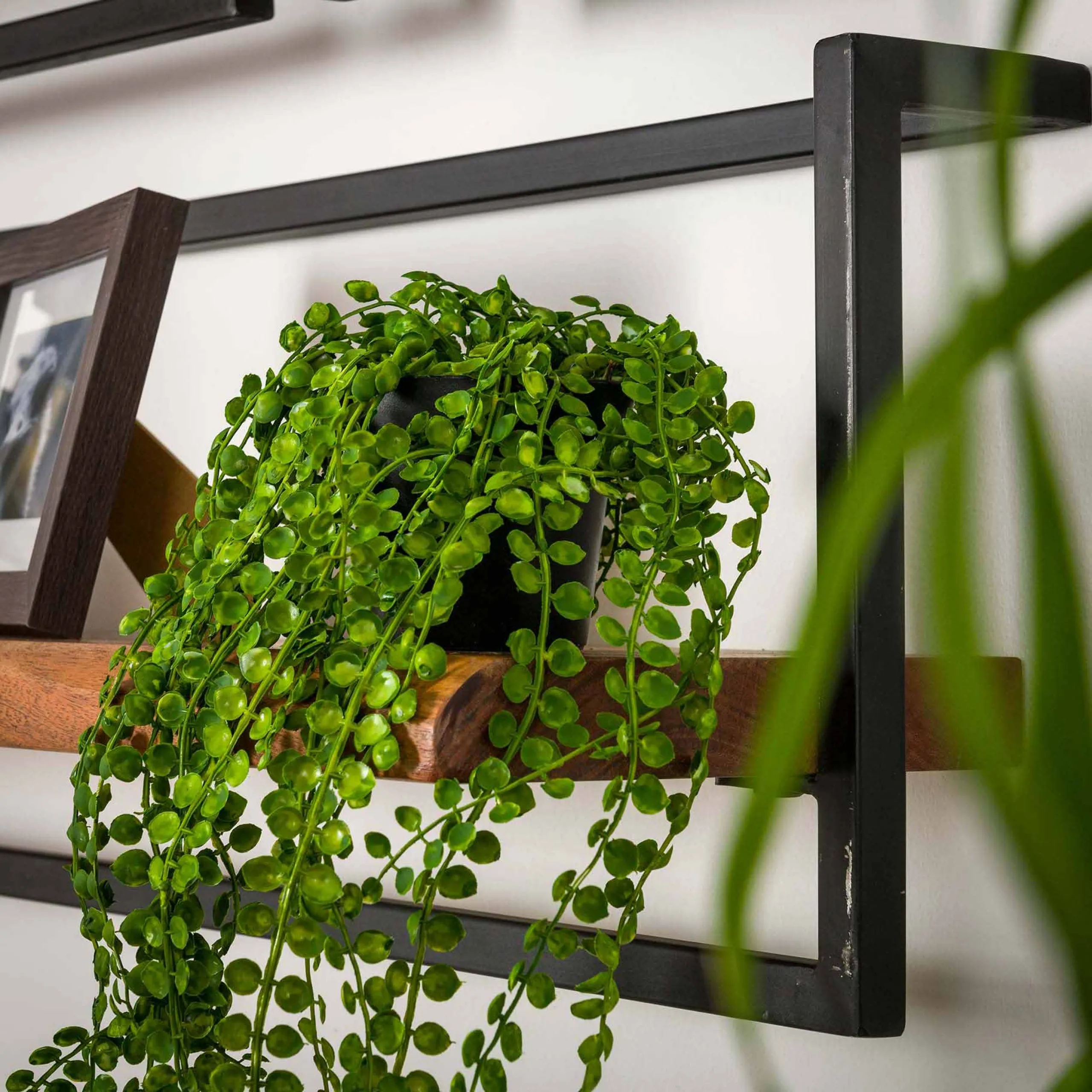 - Material: Akazienholz, schwarz pulverbeschichtetes Metall