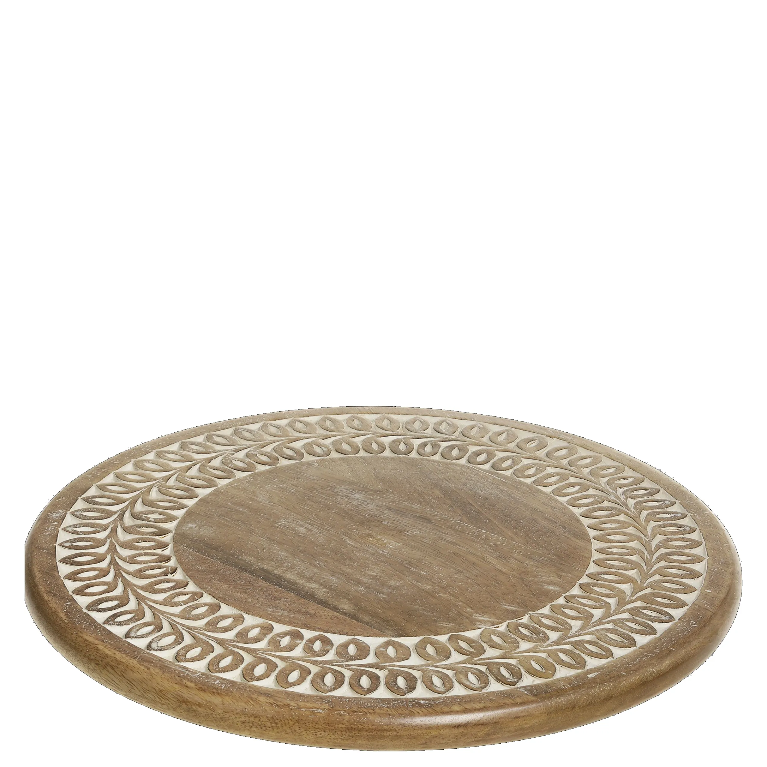 Ein Fest für die Sinne: Diese drehbare Tapasplatte aus hochwertigem Mangoholz vereint natürliche Eleganz mit funktionalem Design. Die fein geschnitzten Ornamente verleihen ihr einen Hauch rustikaler Handwerkskunst, während das warme Holz mit seiner lebendigen Maserung für eine gemütliche, mediterrane Atmosphäre sorgt.
