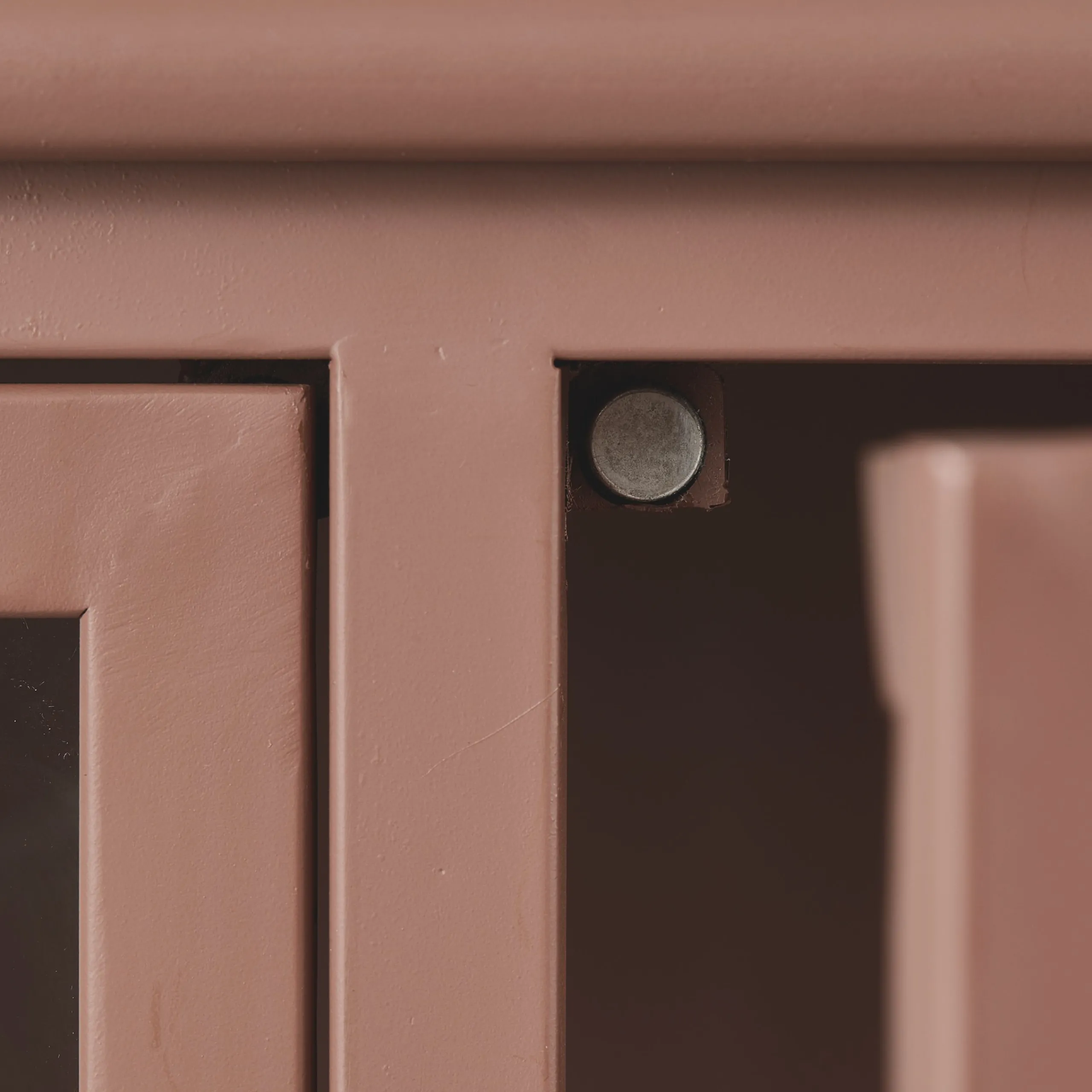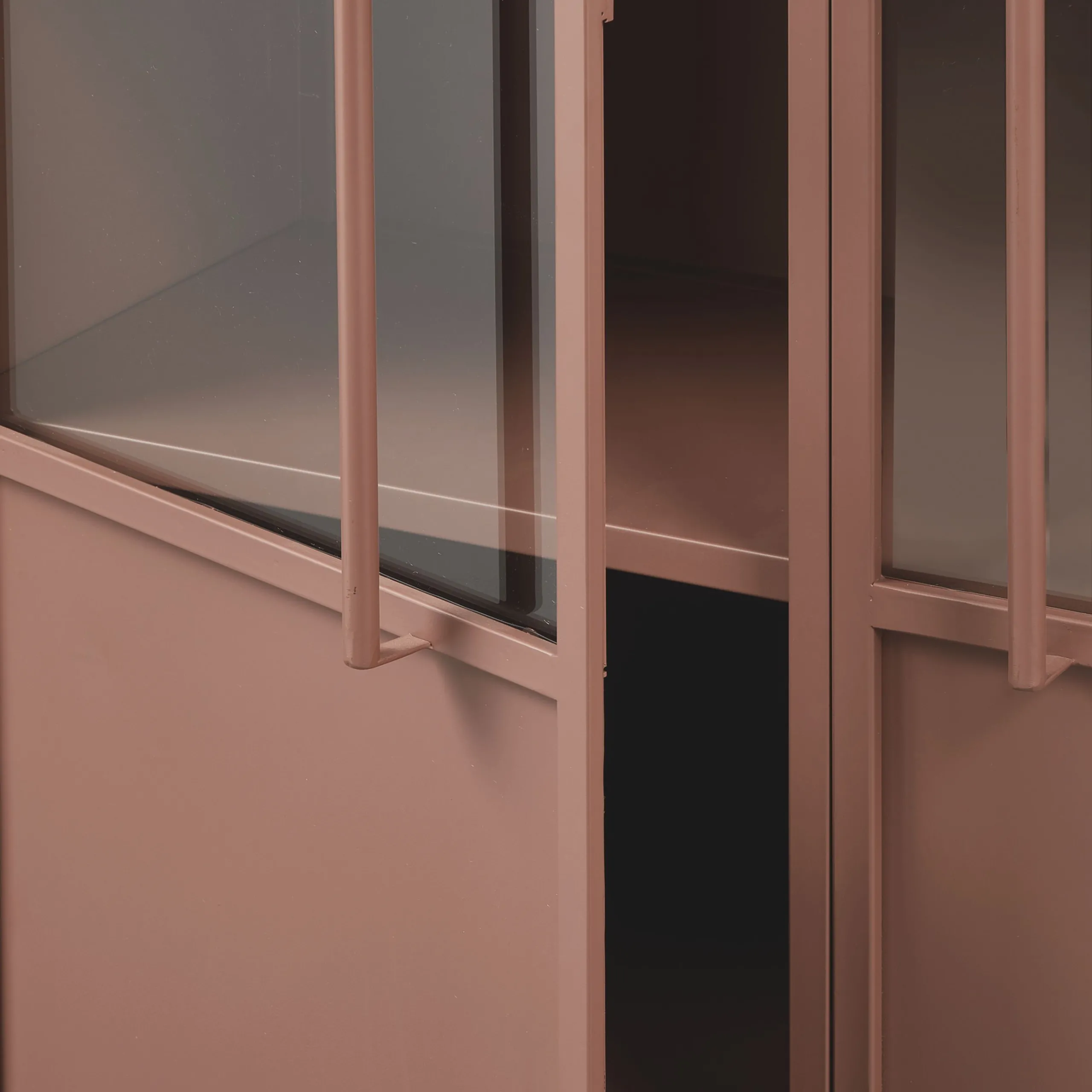 Diese robuste im industrial Style gefertigte Vitrine stammt aus der Kollektion der Firma BePureHome. Sie bietet mit fünf Fächern ausreichend Platz für Gläser, Geschirr oder ähnliches. Der Korpus ist aus rotbraunem Eisen mit mattem Aussehen gefertigt, die Türen aus Metall mit gehärtetem Glas und einem stabilen Metallgriff. Die inneren Regale erstrecken sich über die gesamte Breite. Der Abstand zwischen den Regalen beträgt 29-31 cm, die Tragfähigkeit pro Regal 20 kg. Kleine Dellen und Schweißnähte sind gewollt und gehören zum Vintage-Look dazu.