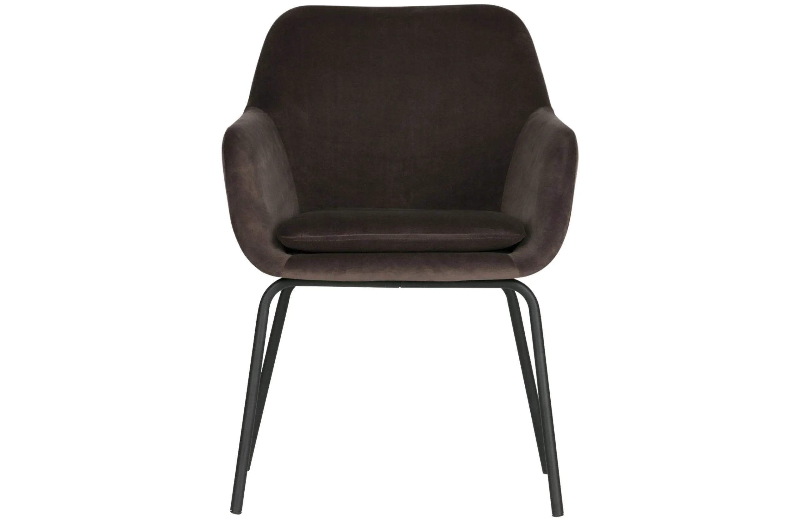 Mit dem Samt-Esszimmerstuhl Mood wird Essen zu einer stilvollen Angelegenheit. Der Sitzschale des Stuhls ist mit einem weichen Samtgewebe in zwei warmen Farben bezogen. Das Sitzkissen und die Armlehnen bieten zusätzlichen Sitzkomfort. Der Samtstuhl Mood steht auf einem mattschwarz lackierten Metallkonstrukt mit vier leicht ausgestellten Beinen. Die Kombination der Materialien verleiht dem Stuhl ein zeitgemäßes Aussehen.