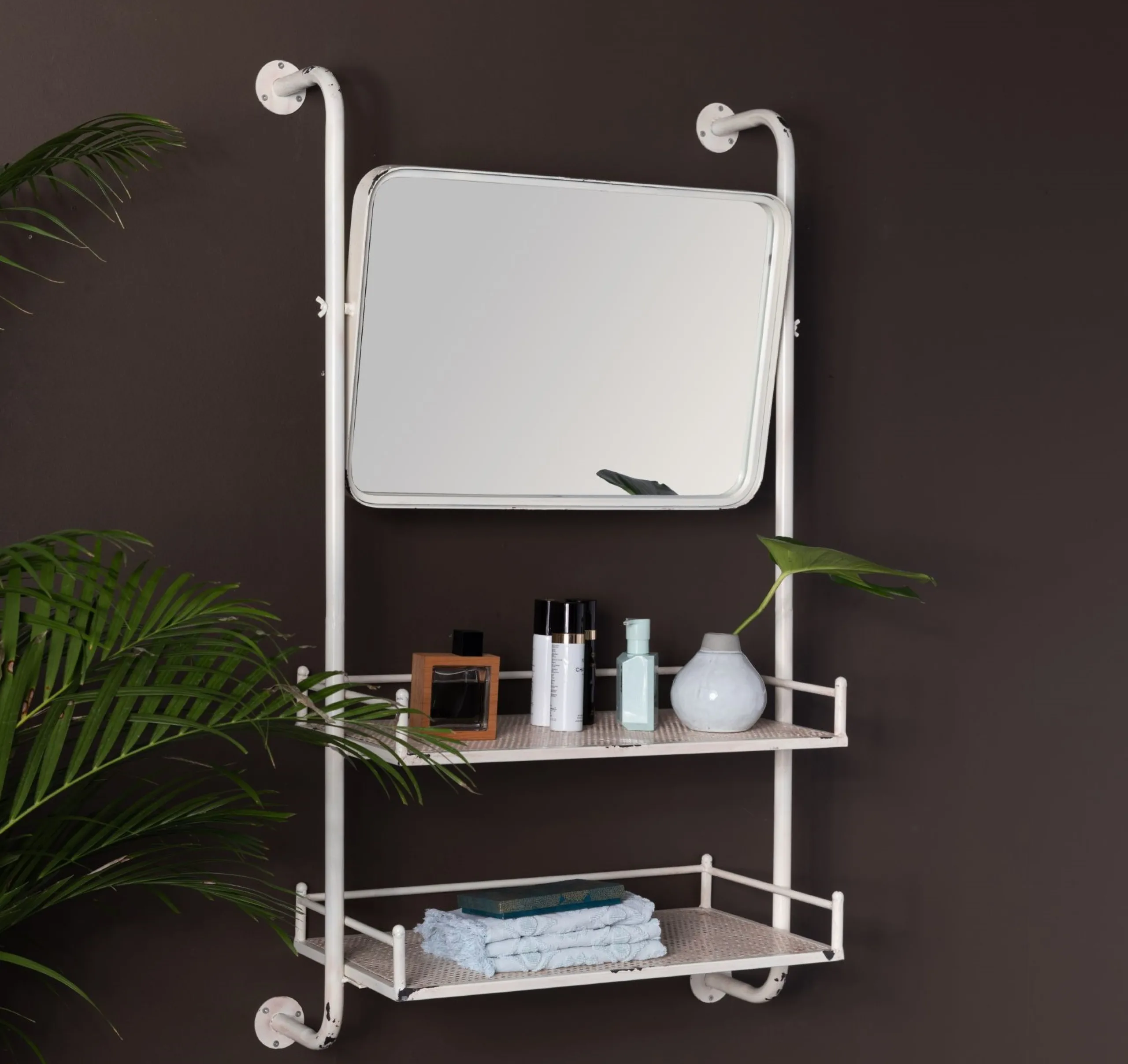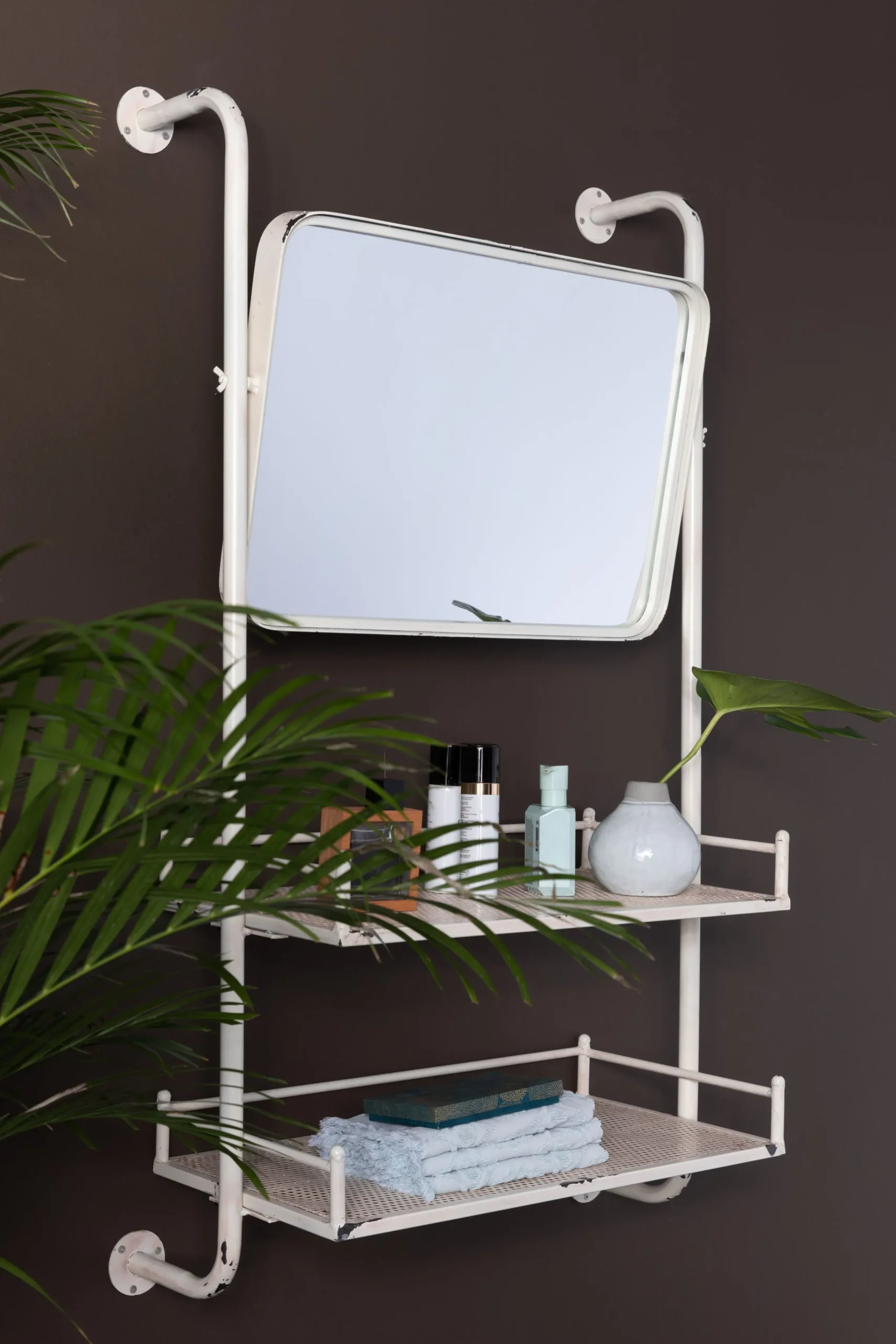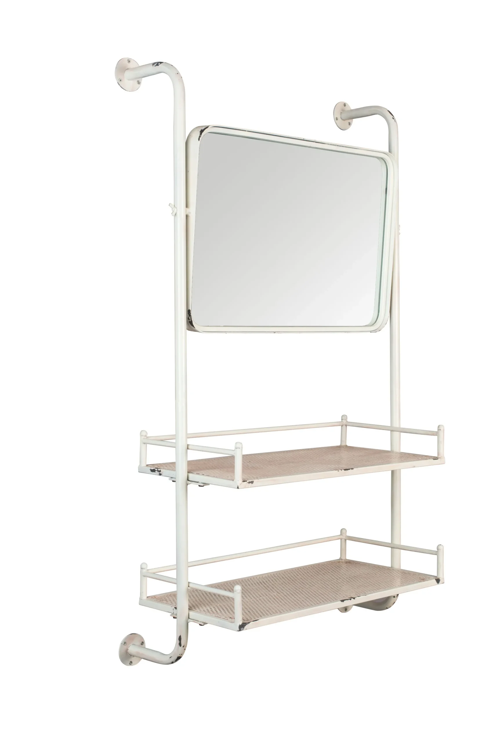 - Material: Weißes pulverbeschichtetes Metall mit Rost Optik und Glasspiegel