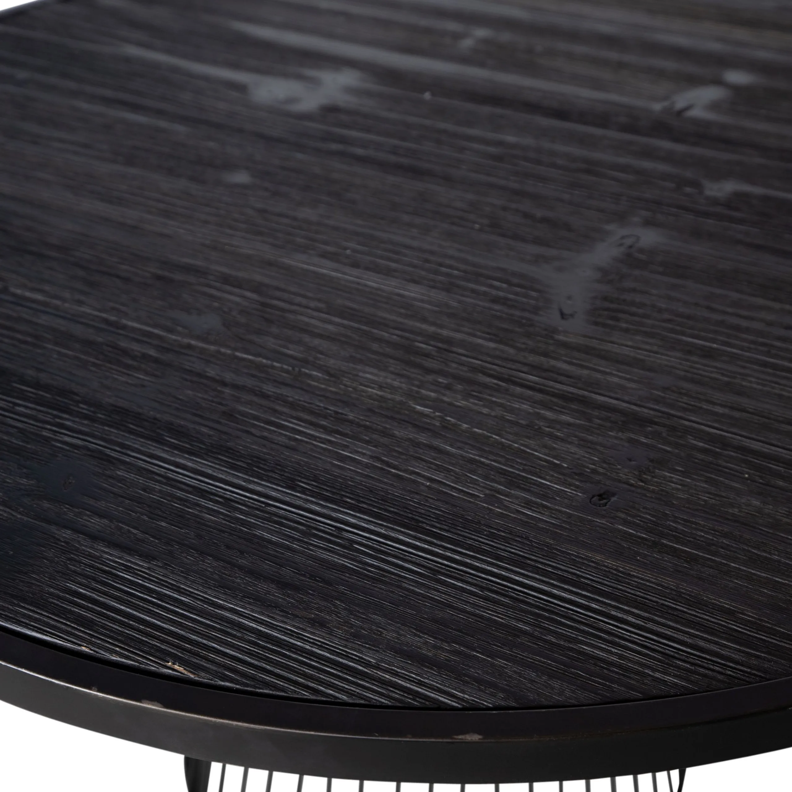 Dieser Beistelltisch wirkt schon fast dezent, aber durch seinem Kegelfuß aus schwarzen feinen Metallstäben und vor allem mit seiner strukturierten schwarzen Holzplatte, zieht er die Blicke auf sich. Der Tisch hat auf jeden Fall ein Wow-Effekt und verleiht dem Raum sofort einen Hauch von Glamour. Er bietet mit einem Durchmesser von 80 cm ausreichend Ablagefläche für Bildbände, Bücher und Dekoration und natürlich auch für Kaffetasse oder Aperitiv.