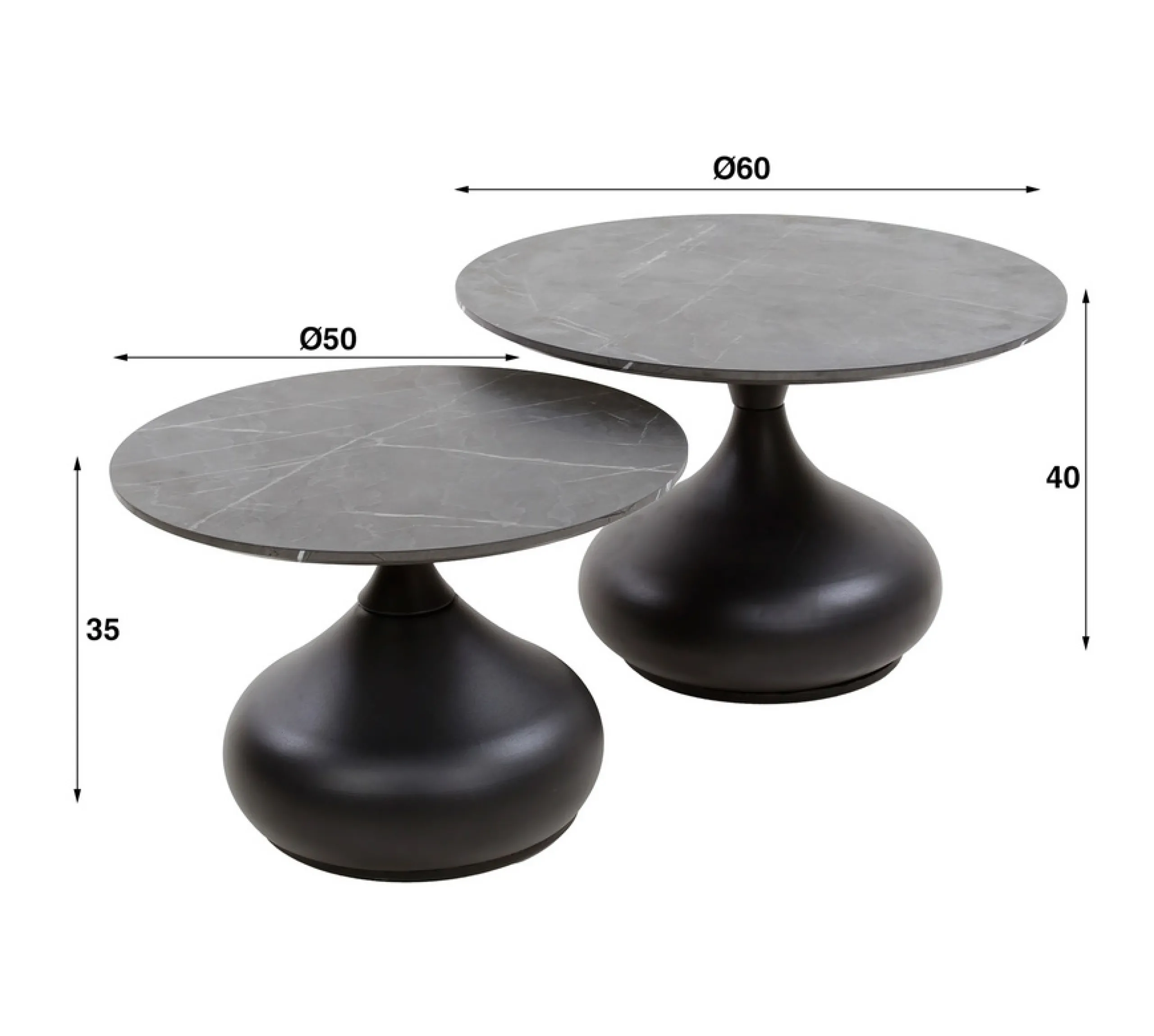 Couchtisch 2er Set Black Drops Melamin in Keramikoptik-Vintagehaus Online