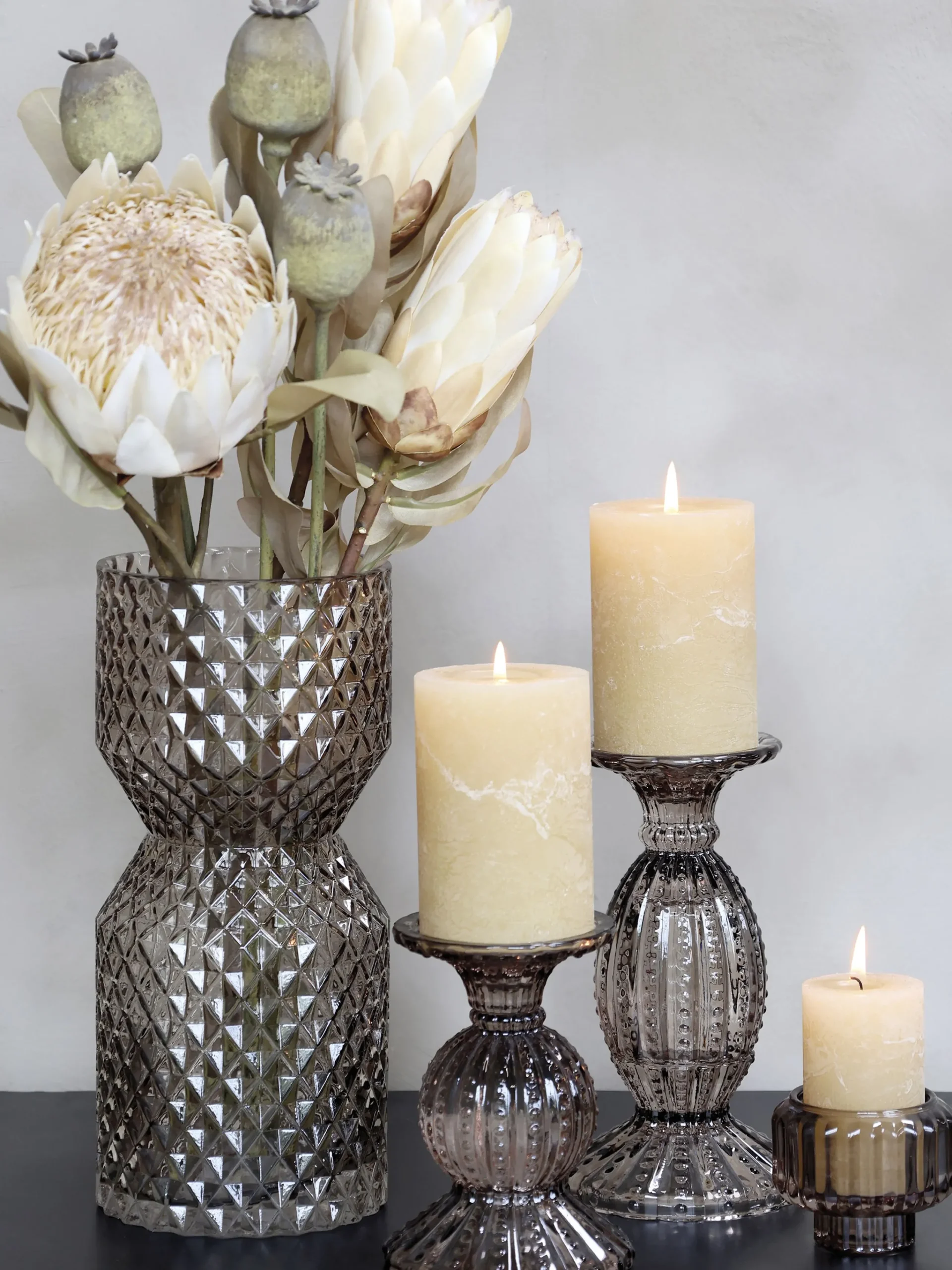 Diese Vase ist mehr als ein Dekorationsobjekt – sie ist ein Statement für Stil und Sinnlichkeit. Der kunstvoll gearbeitete Diamantschliff verleiht dem Glas eine faszinierende Tiefe und lässt Licht in zahllosen Facetten erstrahlen. Ihr klarer, geometrischer Look verbindet moderne Ästhetik mit zeitloser Eleganz und setzt jedes Blumenarrangement perfekt in Szene.