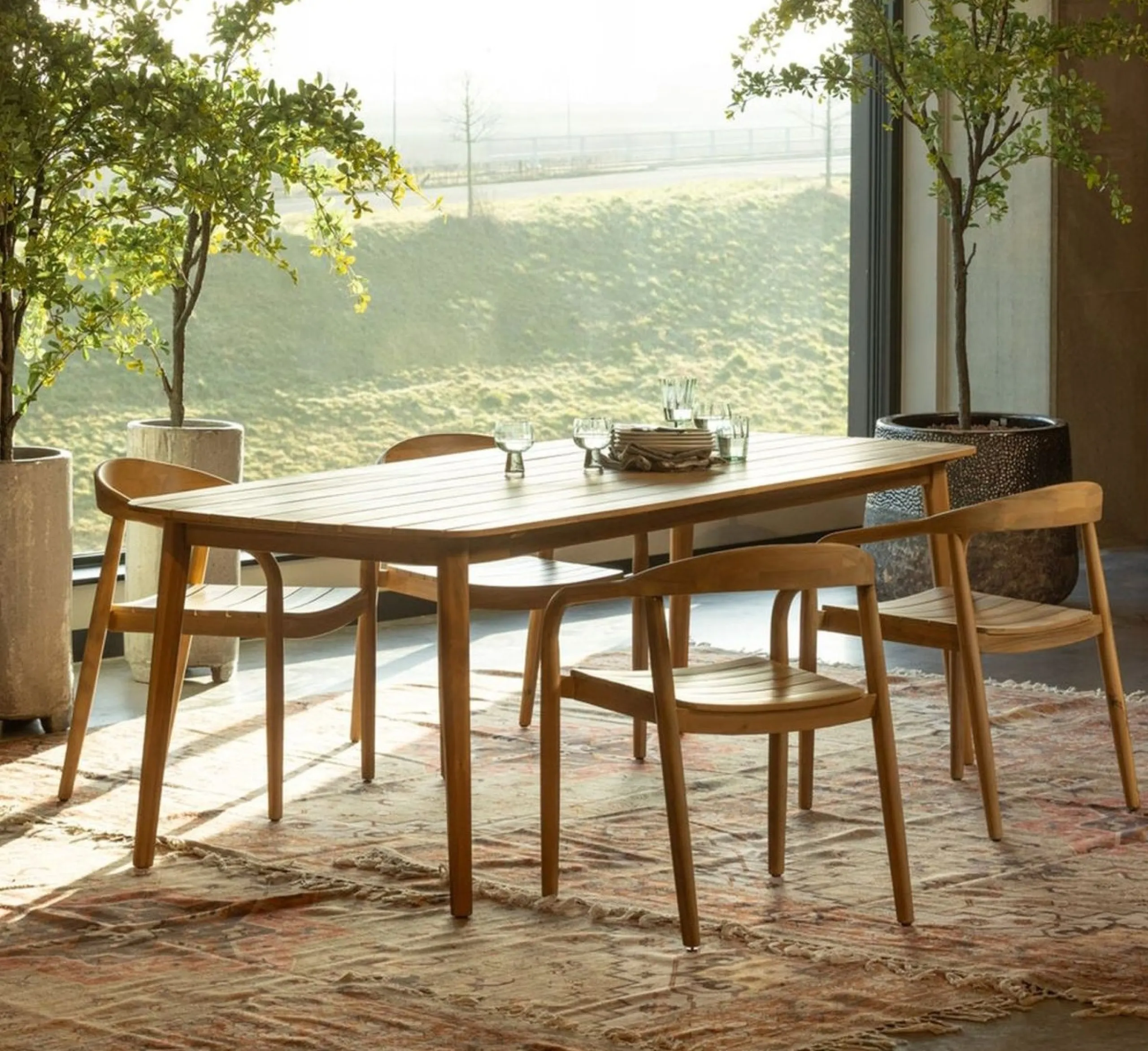 Essgruppe Gartentisch Outdoortisch Kris Akazienholz 215 cm + 4 Stühle Boru-WOOOD New