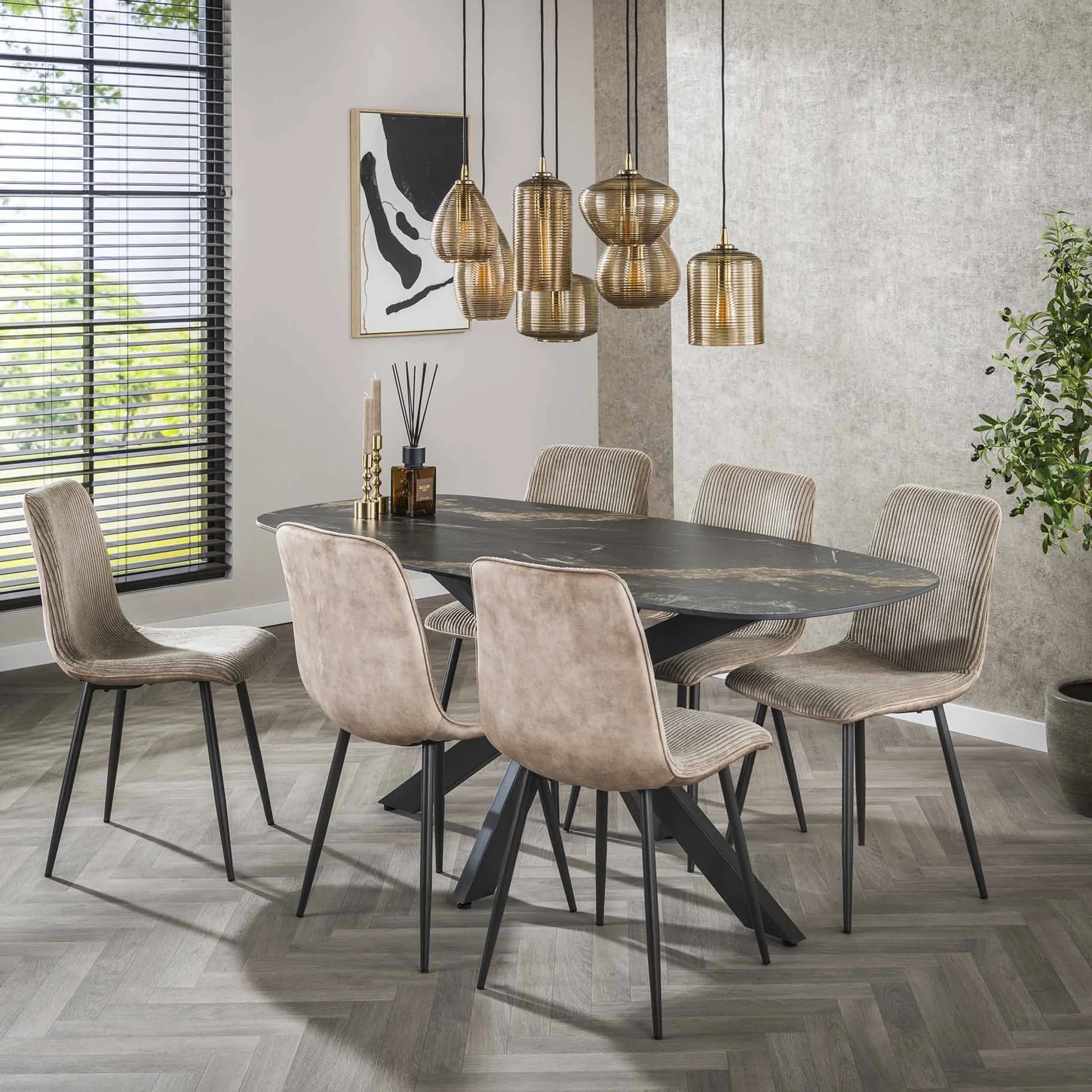 Esstisch Stone Oval Keramik Marmor Schwarz/Braun 180-Vintagehaus Discount
