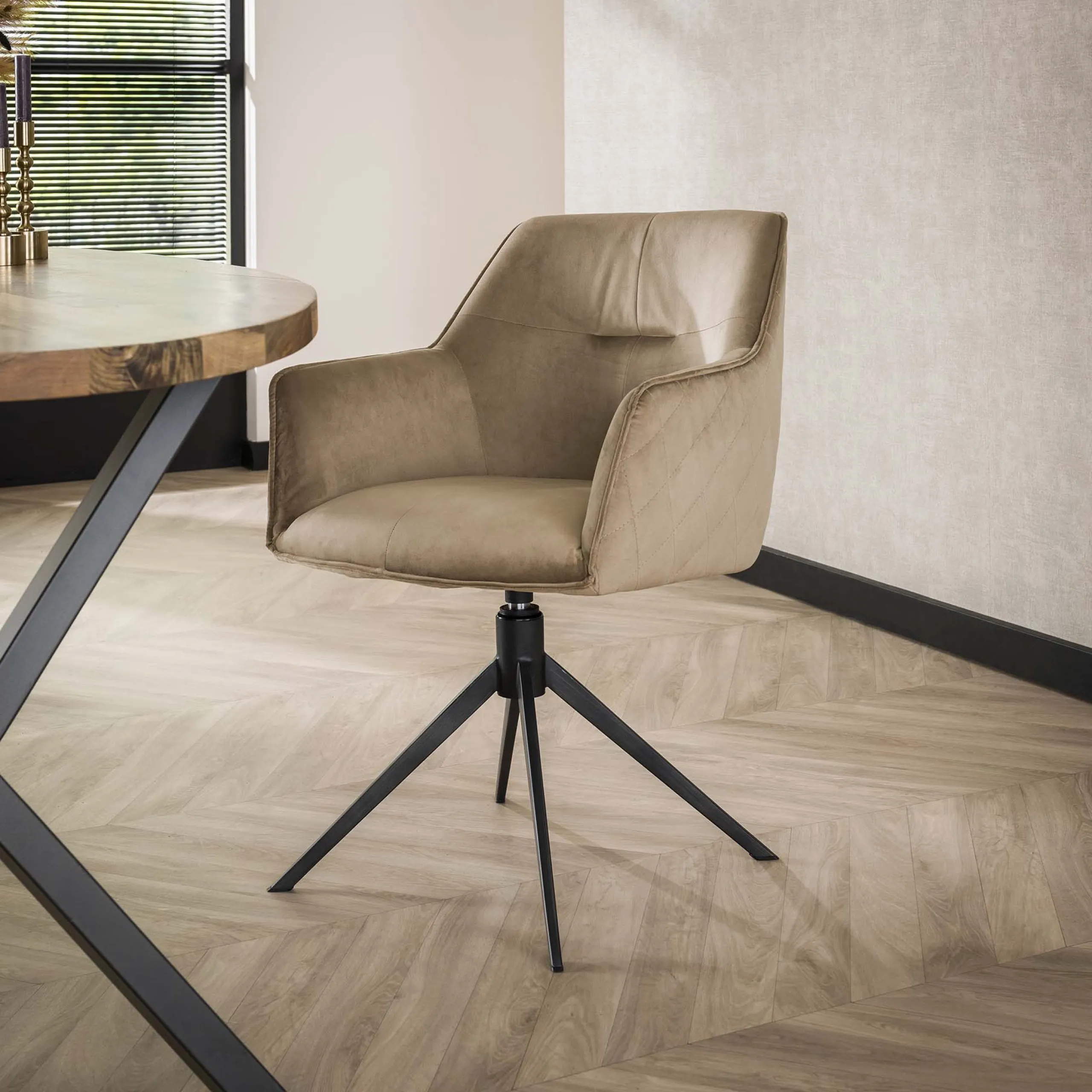 Herrlich elegant und eine Bereicherung für jeden Haushalt ist der Stuhl Pull aus der Vintagehaus Serie. Mit seinem modernen Design, den hochwertigen Materialien und der rautenförmigen Diamantsteppung an der Rückenlehne vereint er Komfort und Ästhetik. Der Drehstuhl verfügt über eine bequeme Sitzfläche und Rückenlehne. Die Armlehnen bieten zusätzlichen Komfort und Unterstützung beim Sitzen. Ein besonderes Merkmal dieses Esszimmerstuhls ist seine Drehfunktion, die es Ihnen ermöglicht, sich leicht um 360 Grad zu drehen, ohne den Stuhl zu bewegen. Dies ist besonders praktisch, wenn Sie sich während einer Mahlzeit unterhalten möchten. Das Design funktioniert aber auch als Schreibtischstuhl im Büro. Ob in einem modernen Esszimmer oder einem klassischen Ambiente, Pull fügt sich harmonisch in jede Umgebung ein.