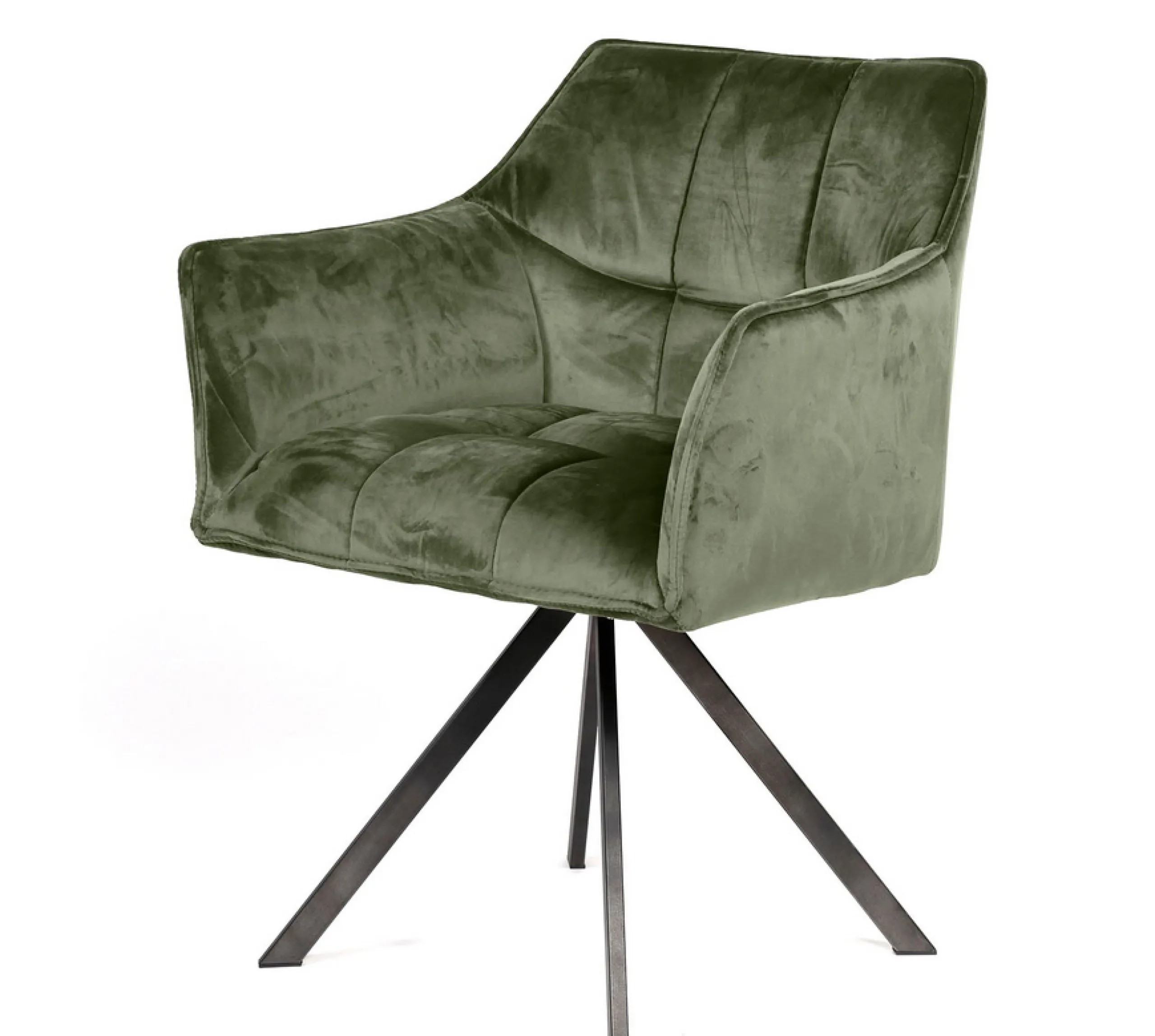 Herrlich elegant und eine Bereicherung für jeden Haushalt ist der Armlehnstuhl Raster aus der Vintagehaus Serie. Er begeistert durch den modernen Samt-Look in Verbindung mit den schwarzen ausgestellten Metallbeinen. Ob beim Candlelight Dinner oder beim entspannten Abend mit Freunden, auf dem Samtstuhl nehmen Sie bequem Platz und möchten diesen, Dank der weichen Polsterung, auch nicht mehr so schnell verlassen. Der Stuhl ist um 360 Grad drehbar. Das Design funktioniert aber auch als Schreibtischstuhl im Büro. Um den Look zu komplettieren, finden Sie die passende Esstischbank hier.