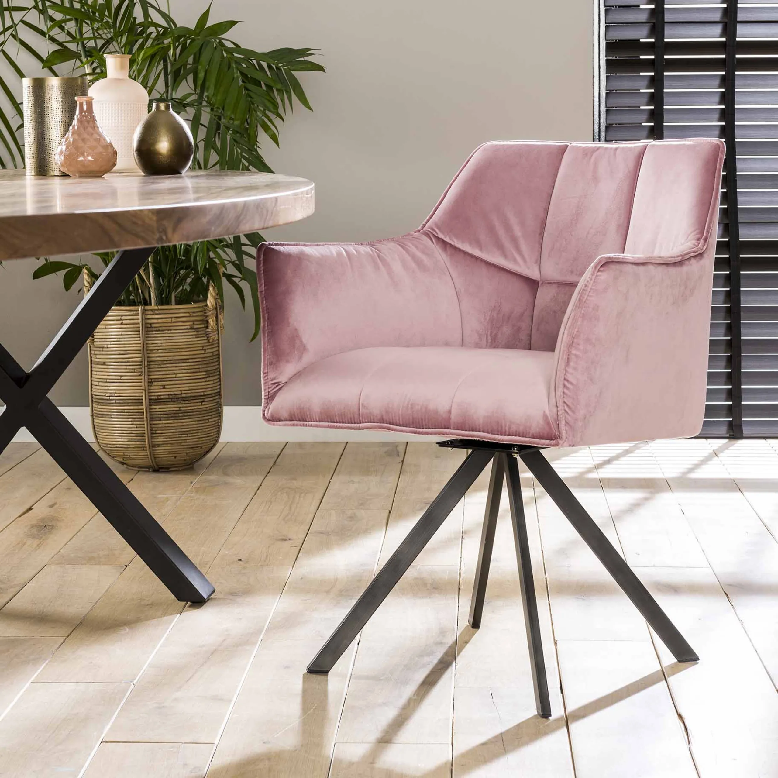 Herrlich elegant und eine Bereicherung für jeden Haushalt ist der Armlehnstuhl Raster aus der Vintagehaus Serie. Er begeistert durch den modernen Samt-Look in Verbindung mit den schwarzen ausgestellten Metallbeinen. Ob beim Candlelight Dinner oder beim entspannten Abend mit Freunden, auf dem Samtstuhl nehmen Sie bequem Platz und möchten diesen, Dank der weichen Polsterung, auch nicht mehr so schnell verlassen. Der Stuhl ist um 360 Grad drehbar. Das Design funktioniert aber auch als Schreibtischstuhl im Büro. Um den Look zu komplettieren, haben wir auch die passende Esstischbank zu den Drehstühlen.