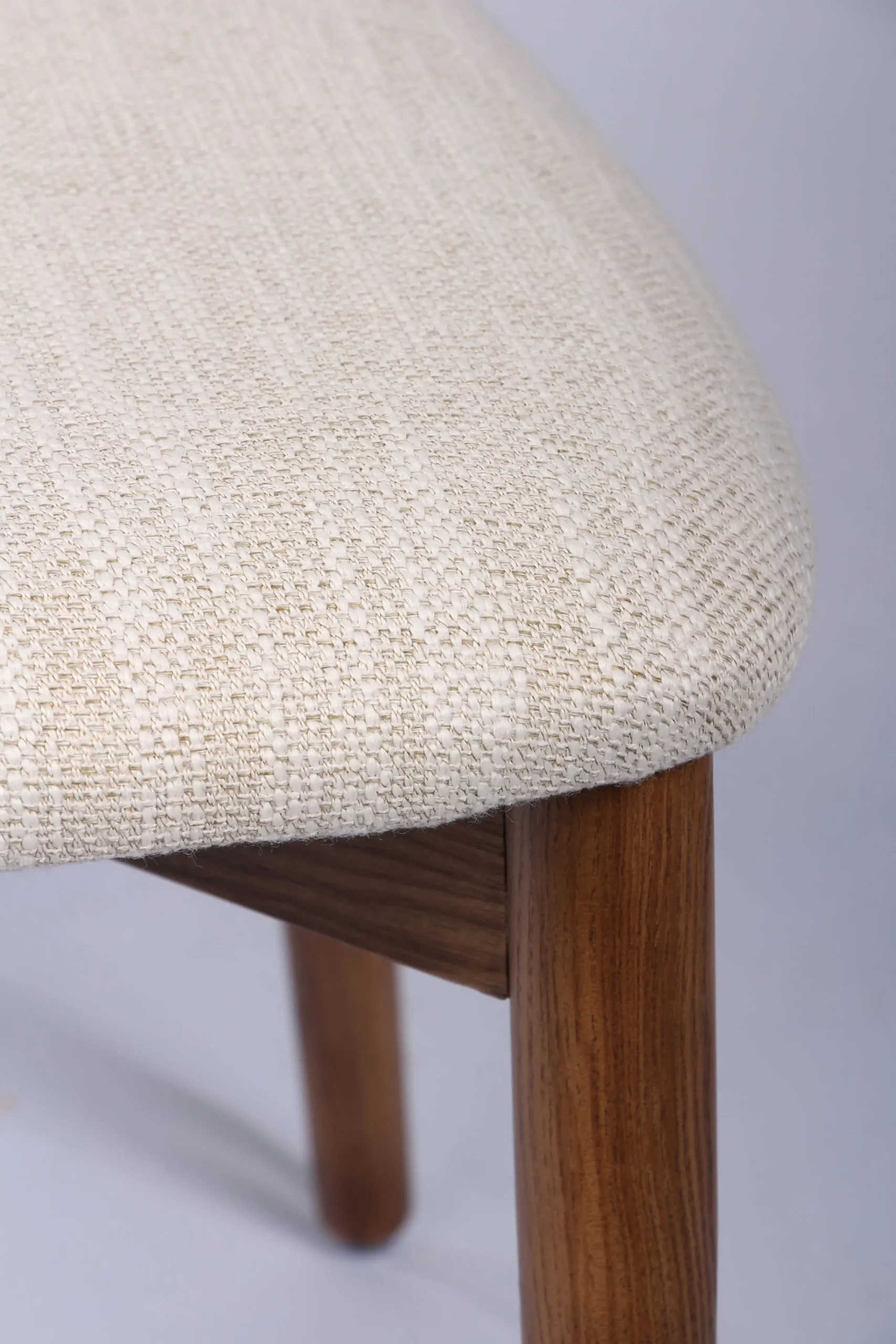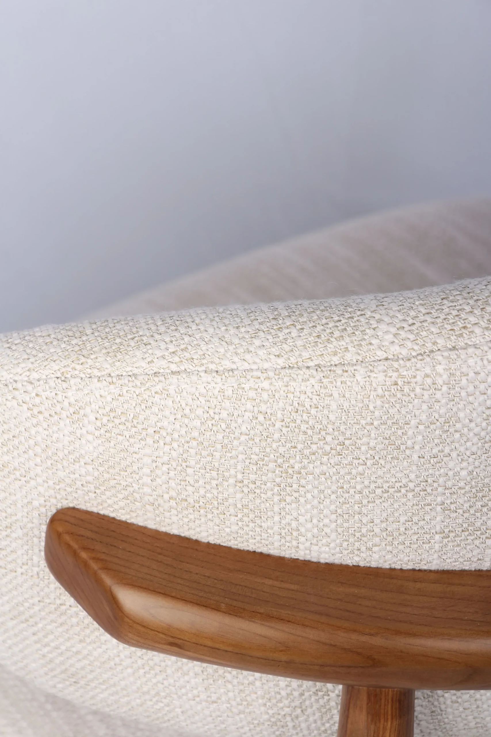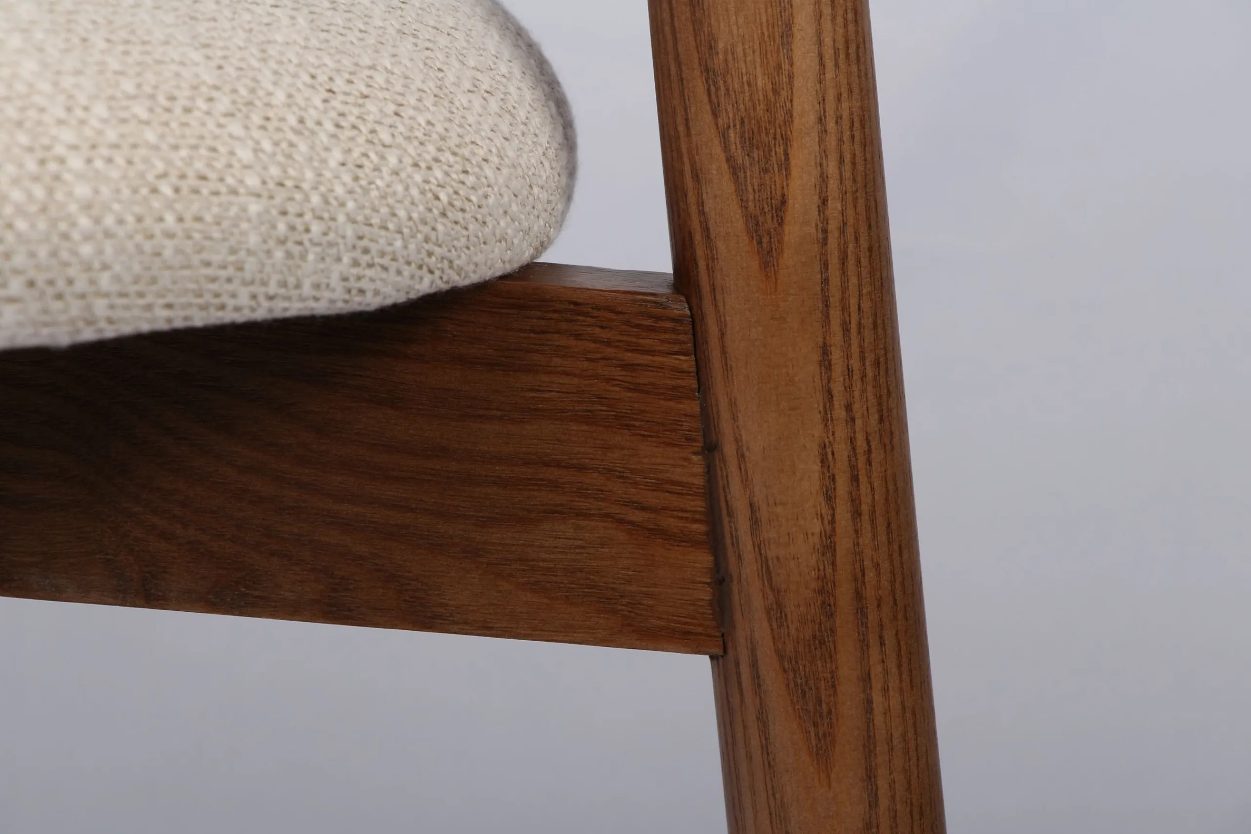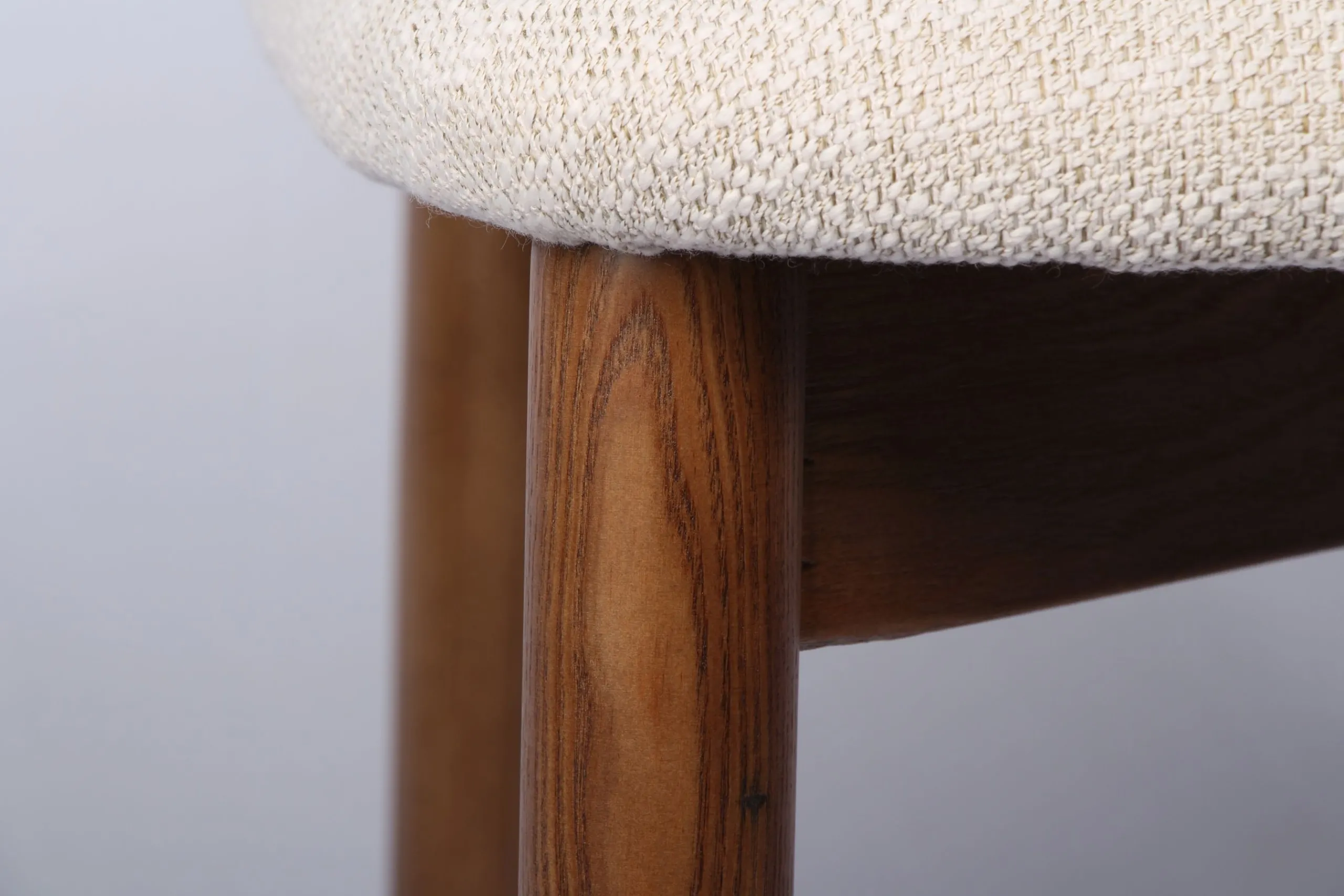 Das natürliche Holz erzählt von Beständigkeit und Wärme, während das edle Gewebe in hellem Naturton Leichtigkeit und Ruhe ausstrahlt. Zusammen entsteht eine harmonische Komposition, die jeden Raum mit Behaglichkeit erfüllt.