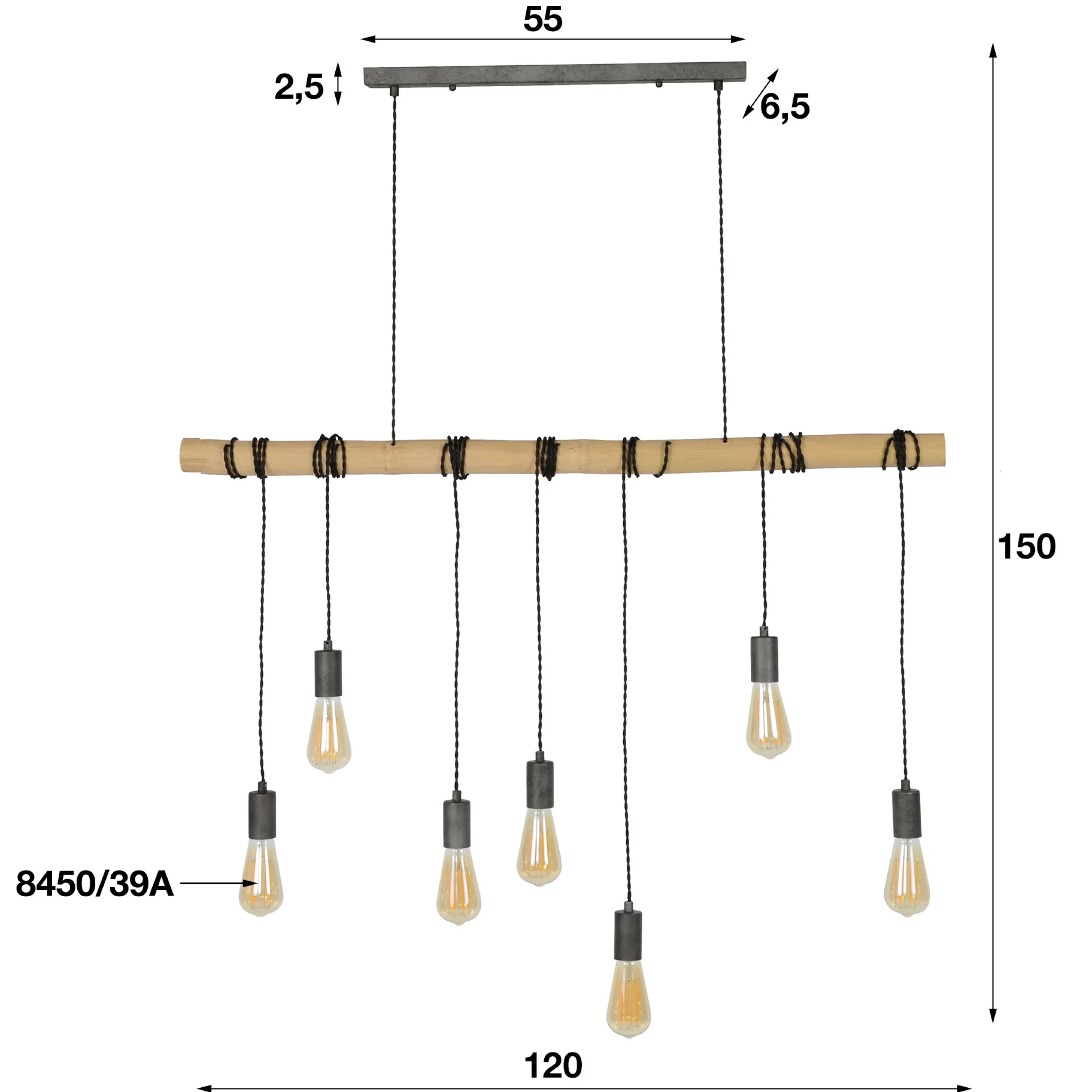 Diese Hängelampe ist ein ganz besonderer Blickfang: Sieben Leuchten, mit extravaganten Edisonglühbirnen bestückt, sind um einen Bambusstab gewickelt. Somit lassen sich die Leuchten flexibel von der Höhe gestalten und anpassen.