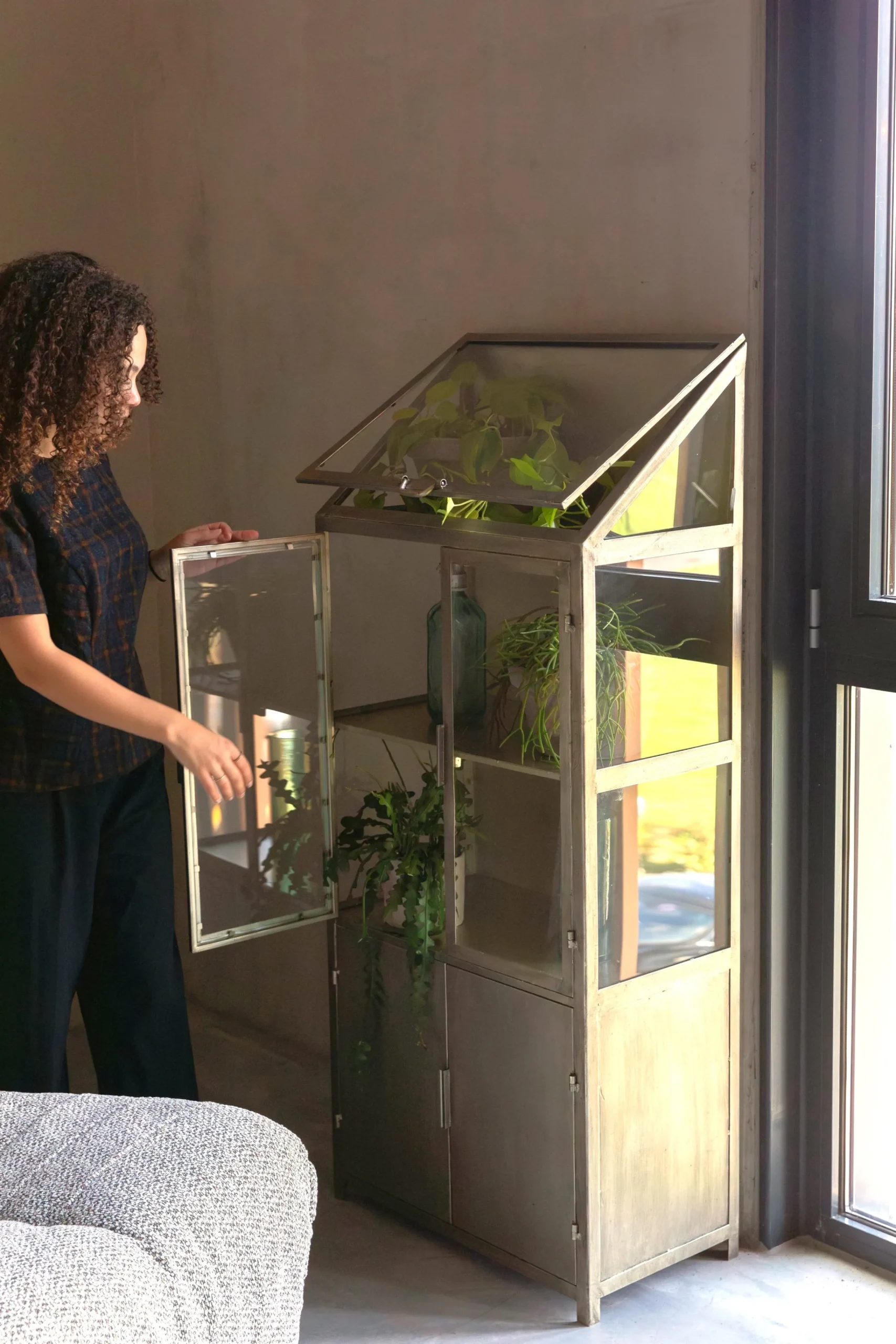 Industrial Vitrine Showcase Monviso Metall Glas Gold-DutchBone Sale