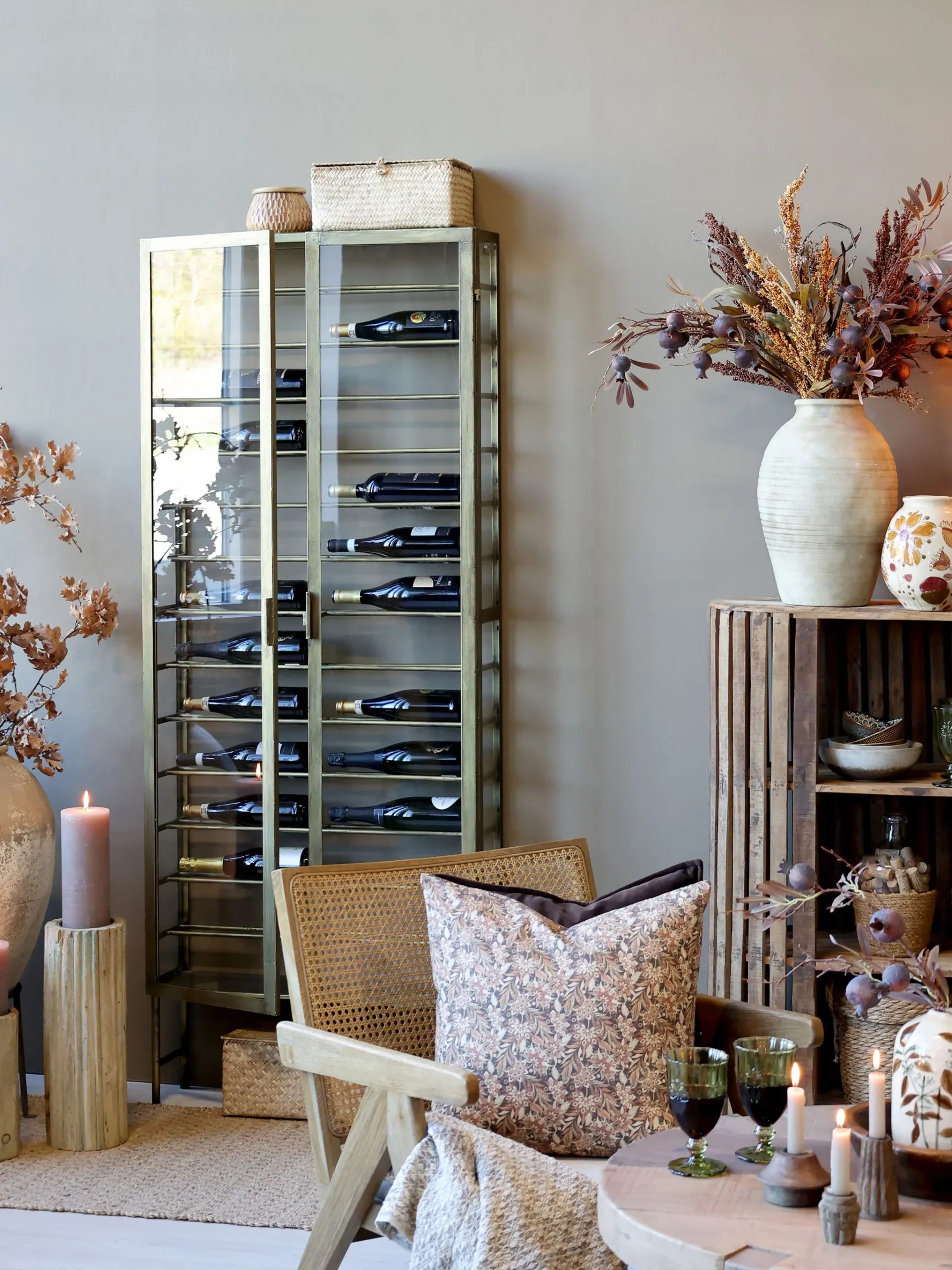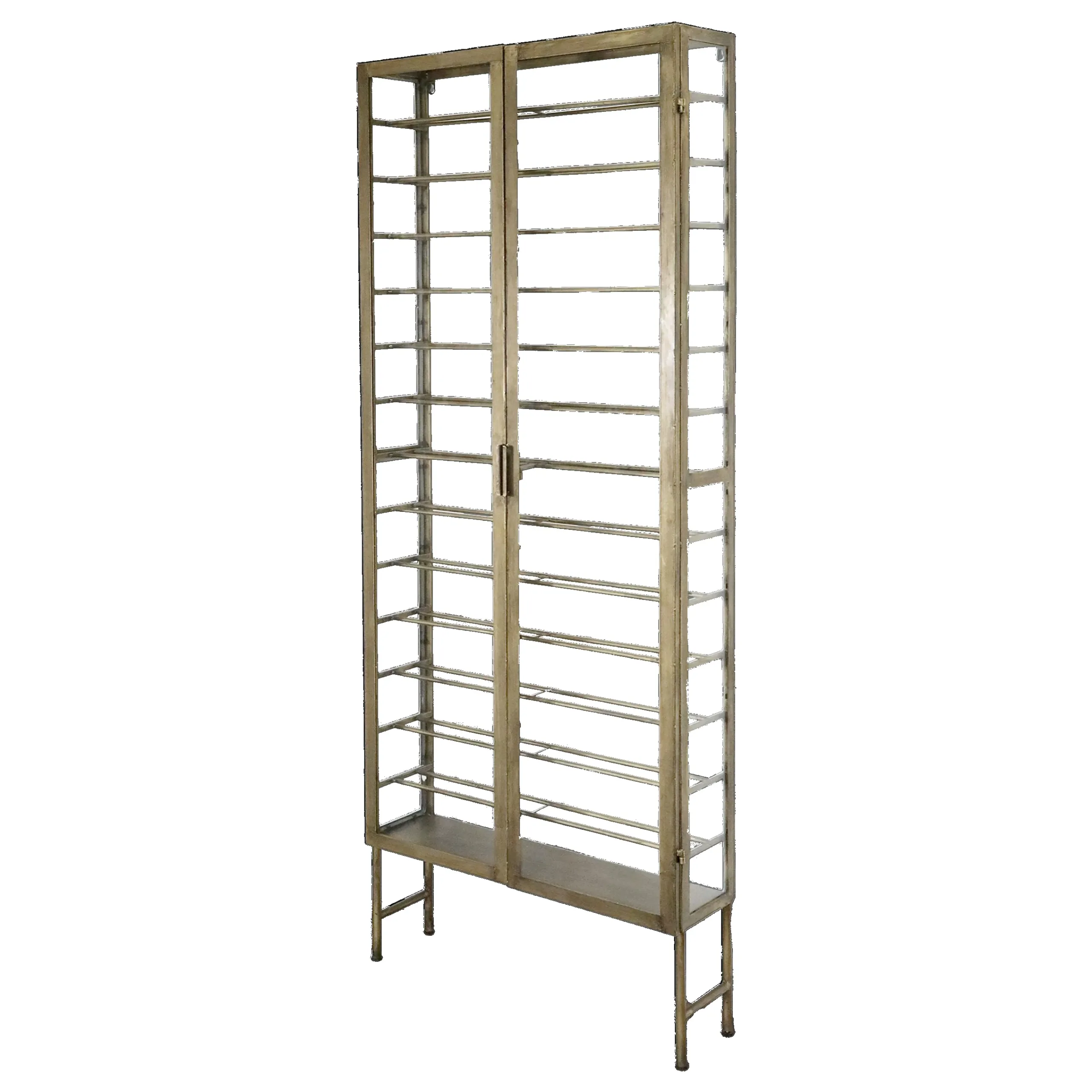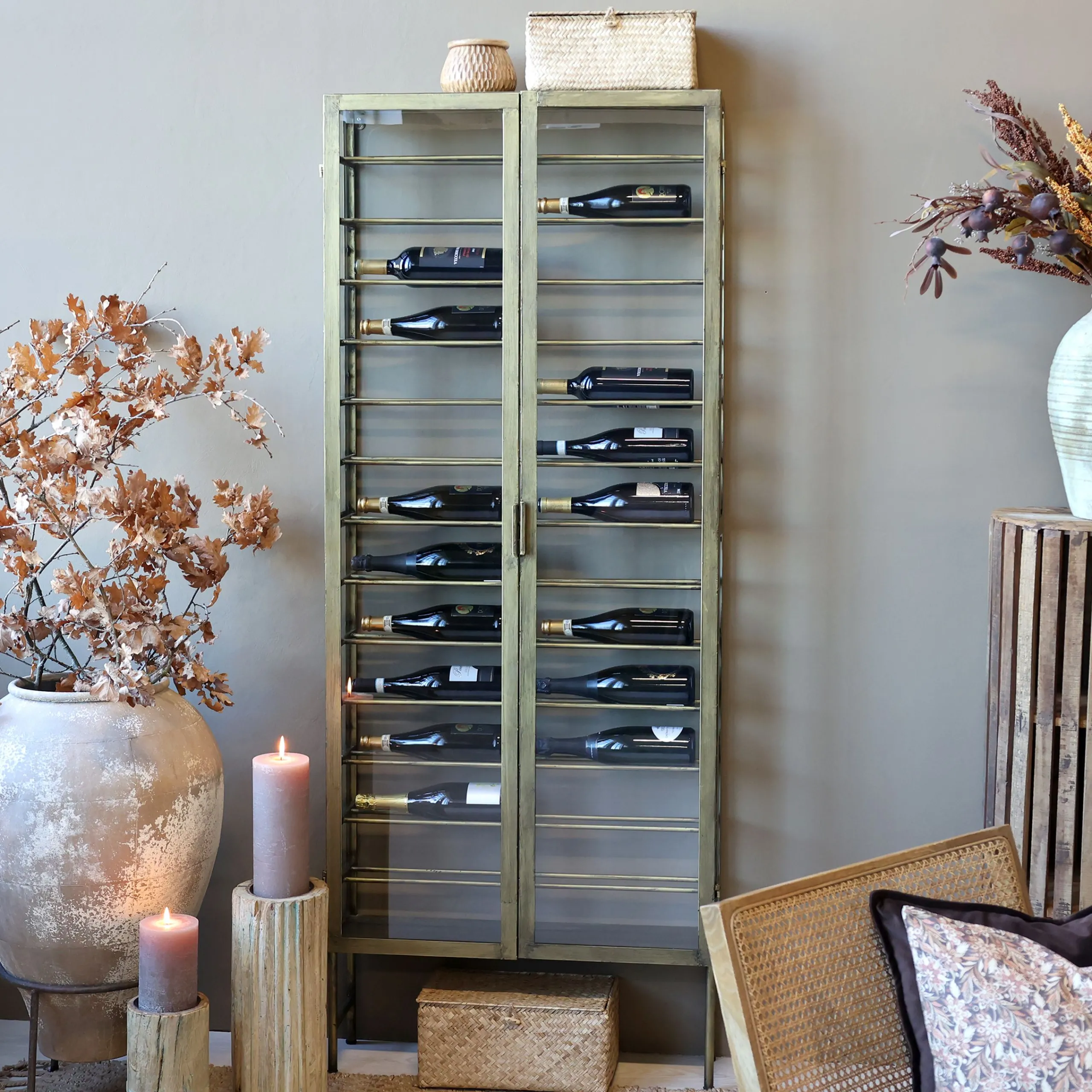 Industrial Weinregal Laurent Metallkorpus und Glas Antik-Gold für 26 Flaschen-Chic Antique Clearance