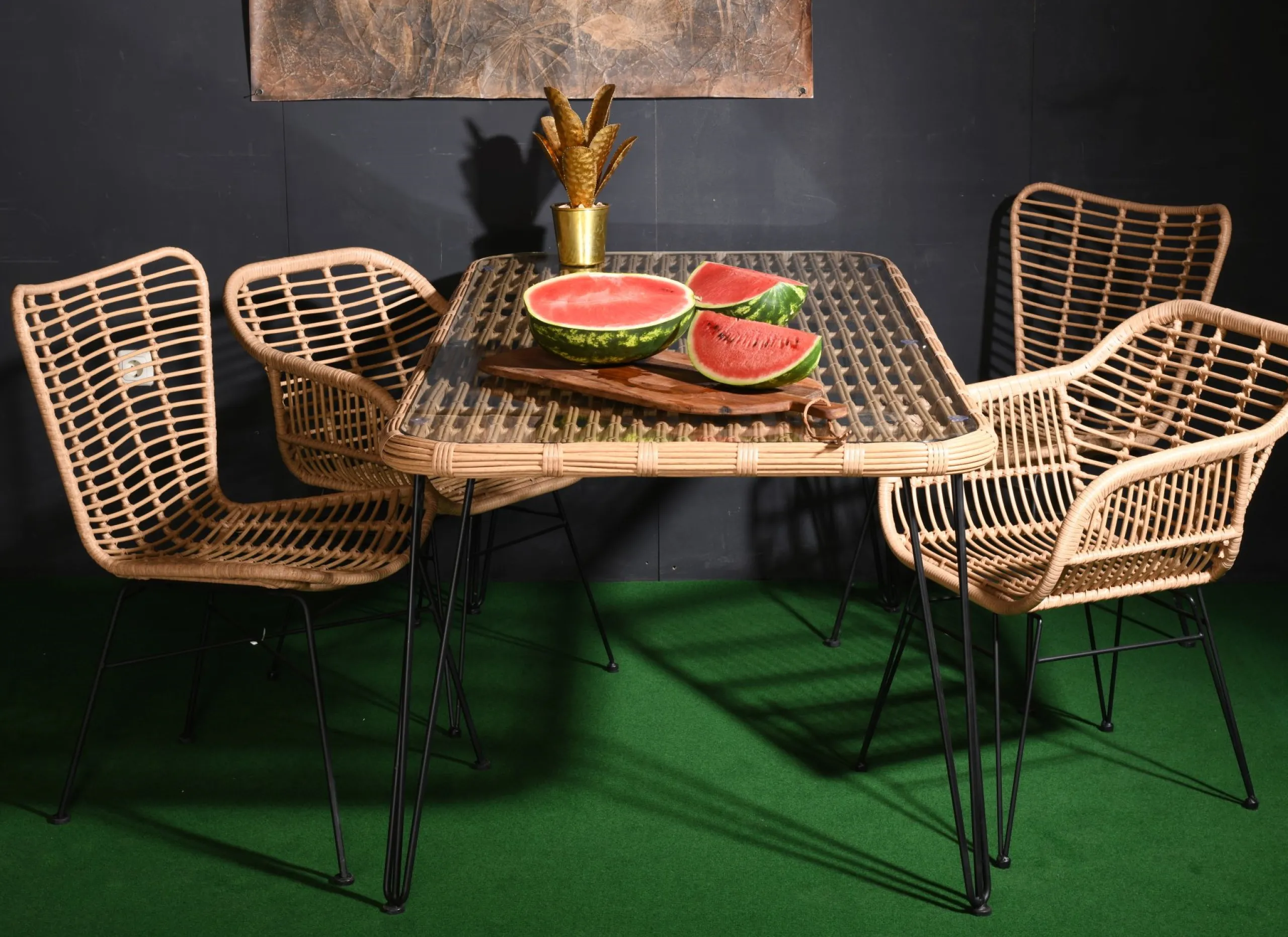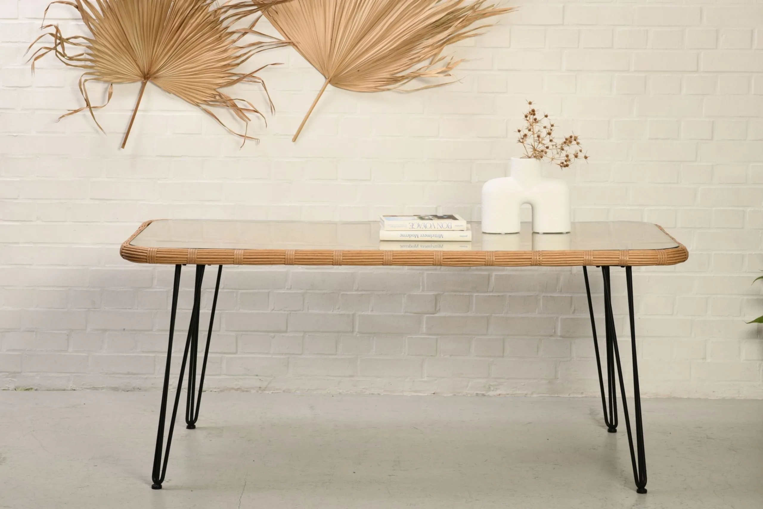 Rattan Esstisch 180/90 Hacienda Natur Bambusoptik In/Outdoor Glasplatte-Vintagehaus Discount