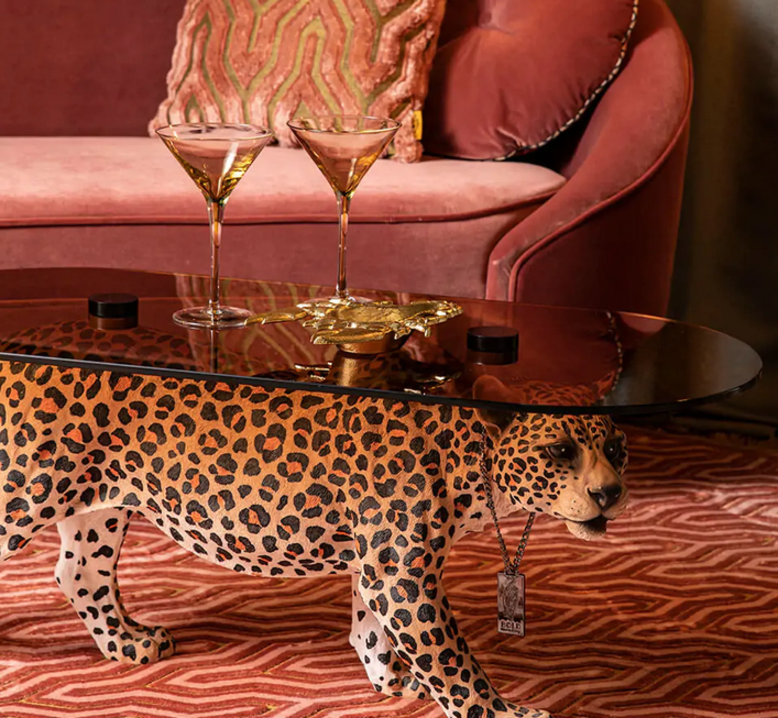 Retro Beistelltisch Couchtisch Dope As Hell Panther Rauchglasplatte-Bold Monkey Sale
