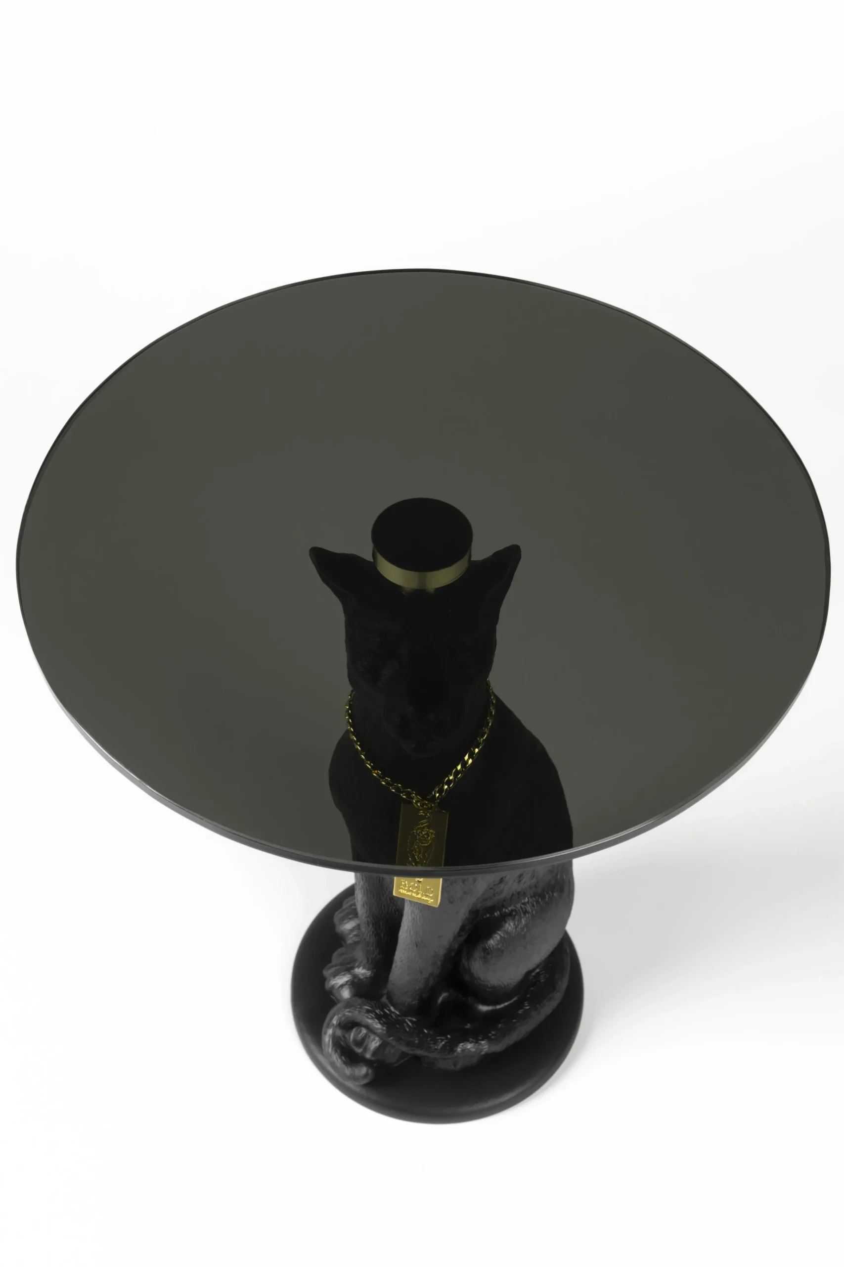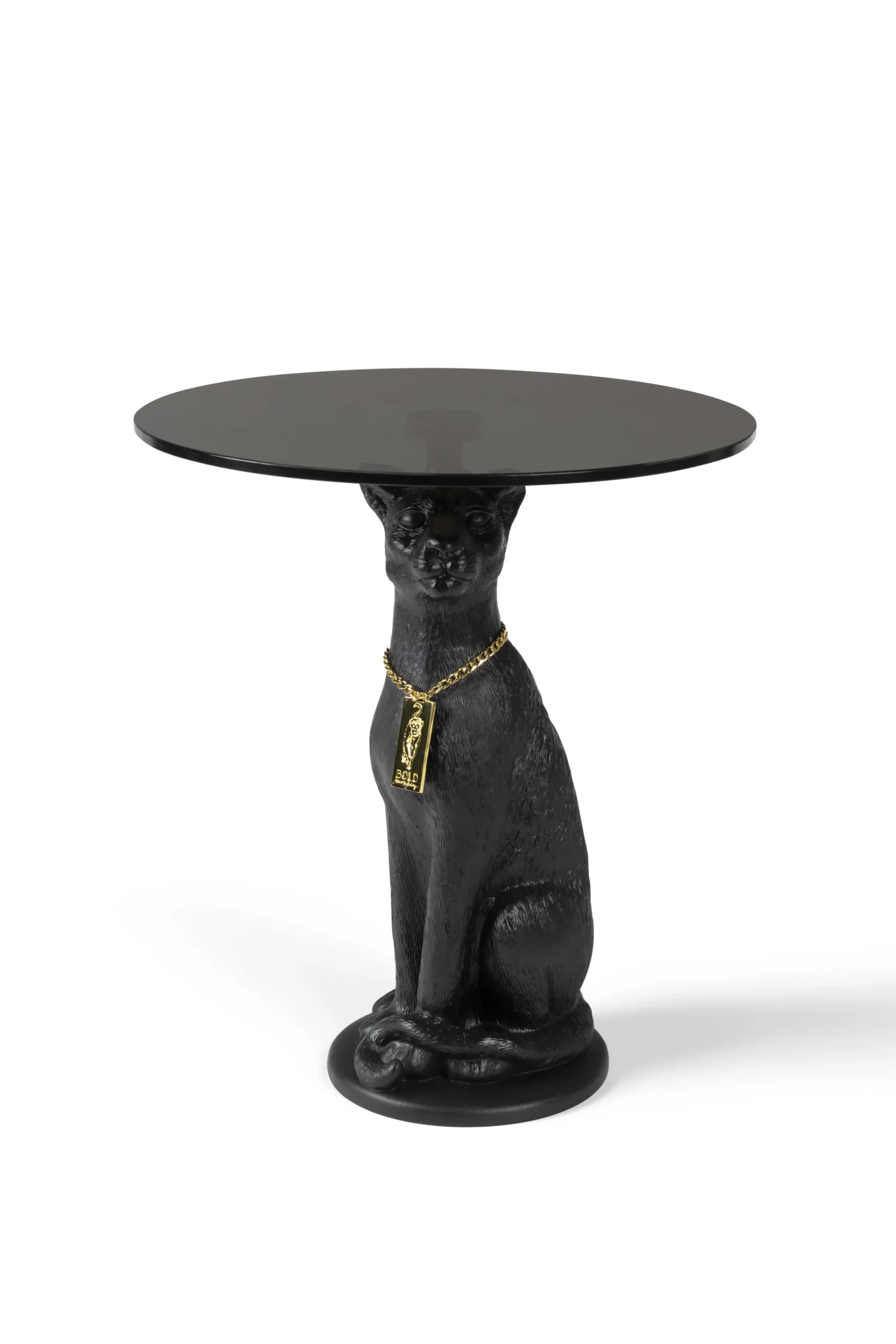 Die Panther sind auf dem Vormarsch, und dieses gewagte Stück bietet Ihnen eine weitere Möglichkeit, auf den Zug der Katzenfans aufzuspringen. Mit einer goldenen Kette versehen, vereinen sich schwarz lackiertes Harz und goldfarbene Galvanisierung in perfekter Harmonie – ganz gleich, welchen Stil Sie bevorzugen. Der Proudly Crowned Panther Beistelltisch verleiht einem bereits eklektisch eingerichteten Raum einen Hauch von Spaß oder wird zu einem einzigartigen Blickpunkt in einer ansonsten minimalistisch eingerichteten Wohnung. Dieser glamouröse Couchtisch ist ein kultiges Sammlerstück für jeden Designliebhaber und der Inbegriff des Bold Monkey Stils: extravagantes Design zu einem erschwinglichen Preis.
