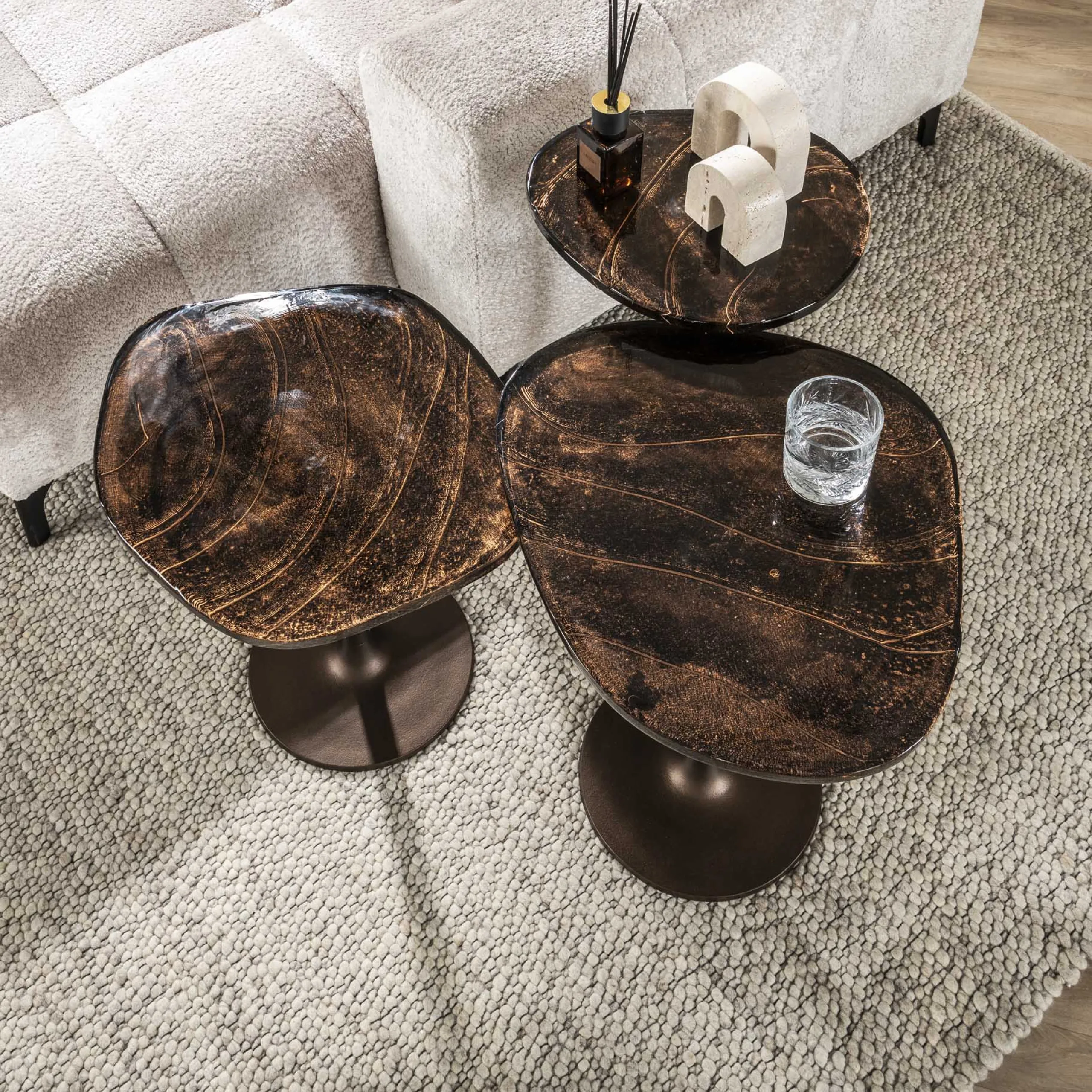 Retro Beistelltische Eclipse Glas Metall Antik-Kupfer L-Vintagehaus Hot